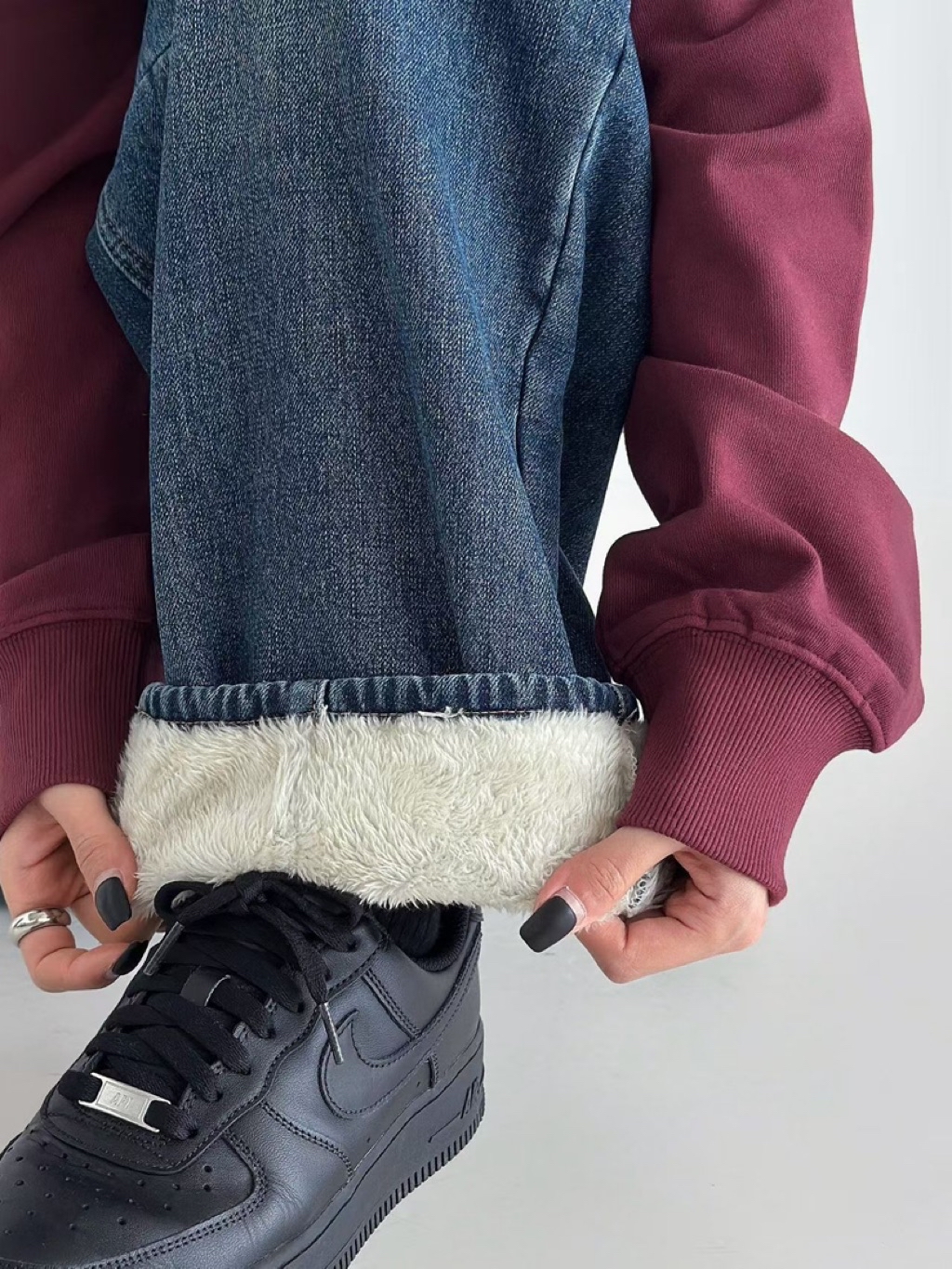 [ 7loong ] 正韓預購 東大門選品 25FW秋冬 超舒服!腰後鬆緊內長刷毛保暖微彎刀牛仔褲(共2色/SML)
