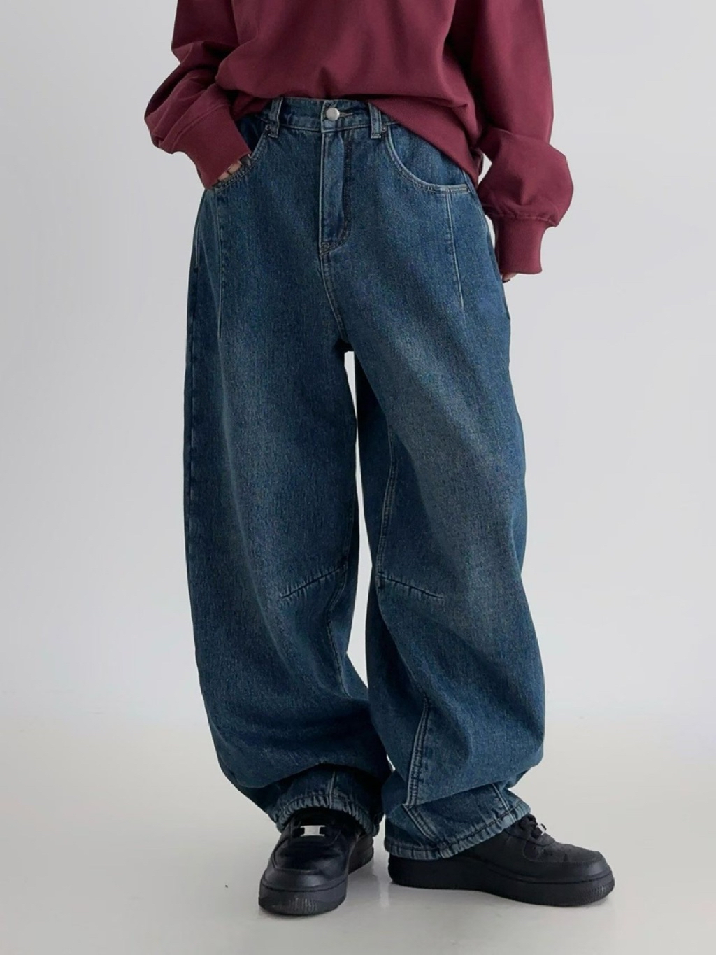 [ 7loong ] 正韓預購 東大門選品 25FW秋冬 超舒服!腰後鬆緊內長刷毛保暖微彎刀牛仔褲(共2色/SML) 總分: 0 - 0 評價