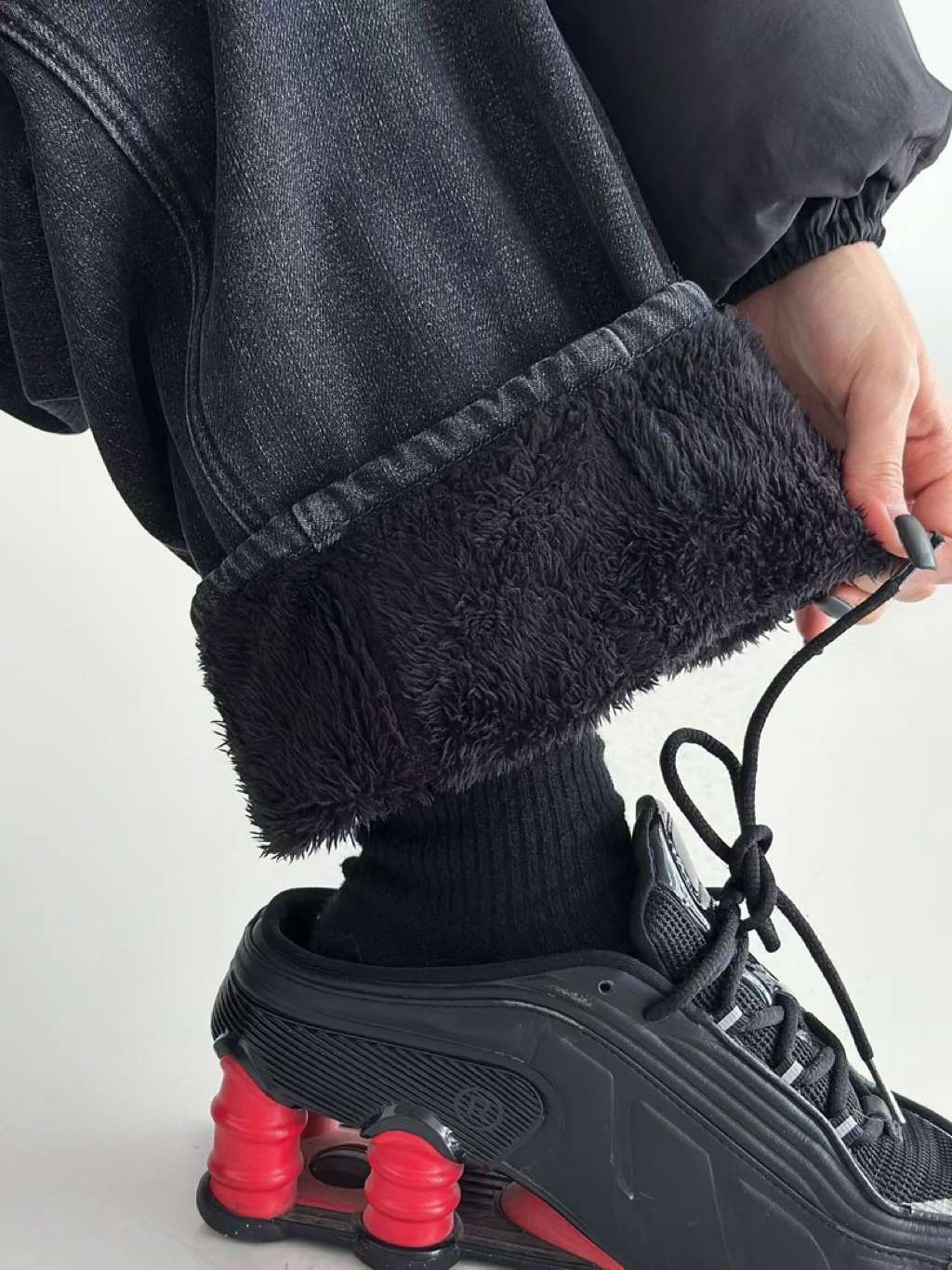 7loong 腰後有鬆緊帶,內裏長絨毛超舒服,版型微彎刀褲,修飾得剛剛好!保暖又有型😎