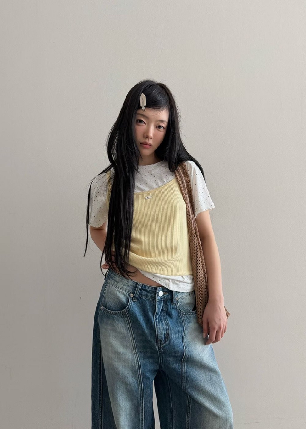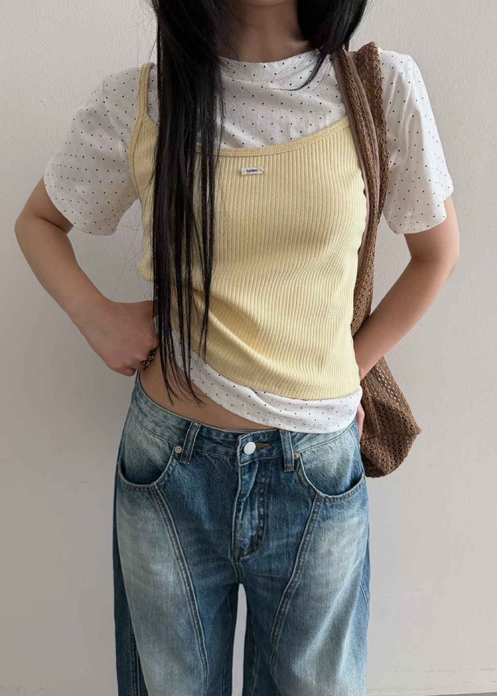 [ 7loong ] 正韓預購 Yunbal 26SS春夏 兩件式點點上衣+細肩羅紋背心(共3色)