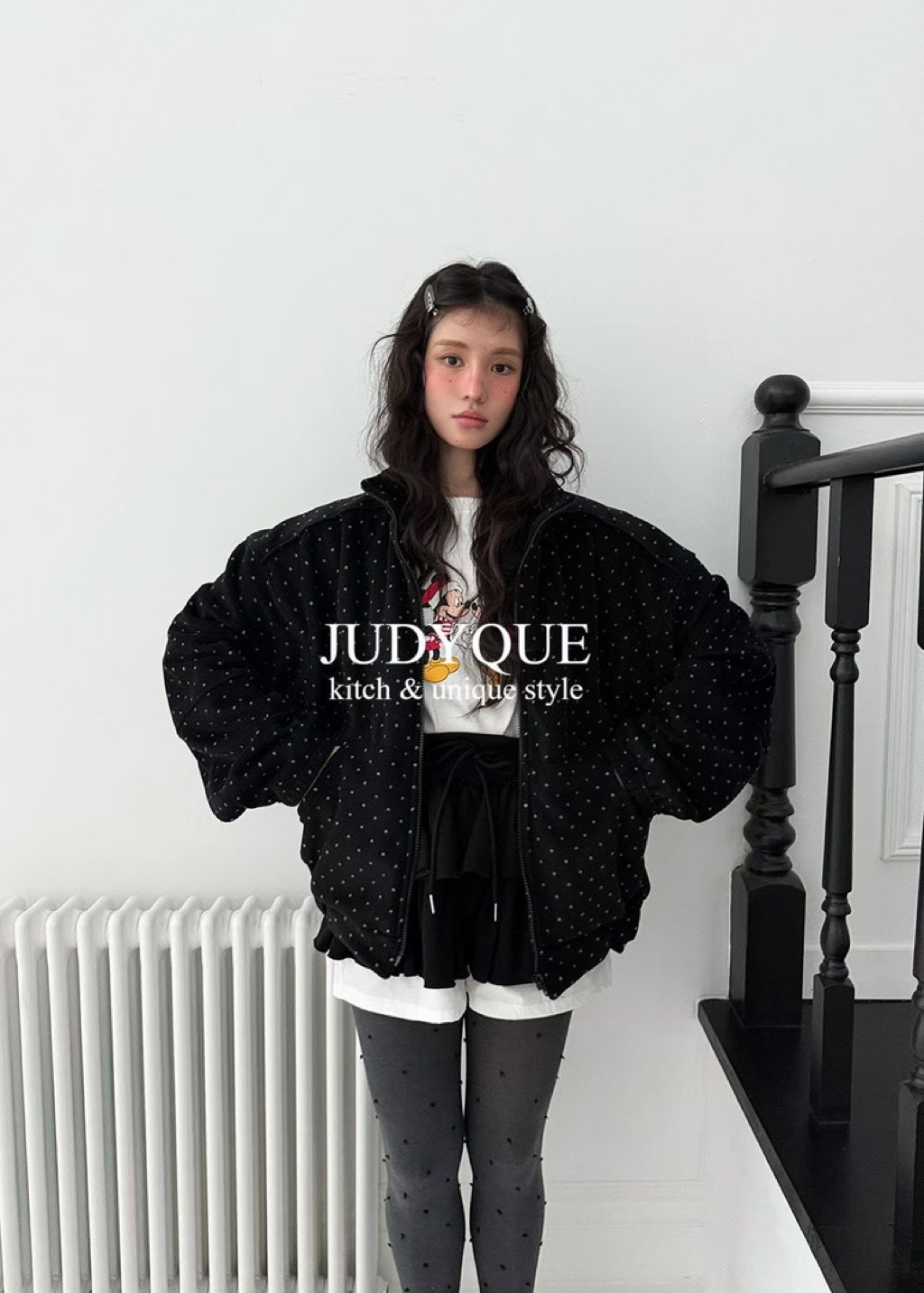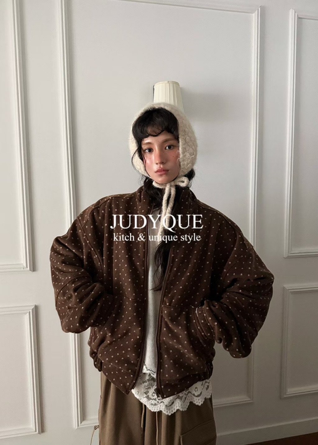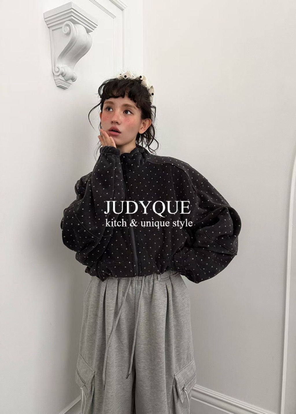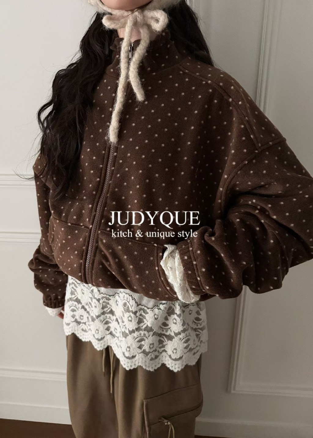 [ 7loong ] 正韓預購 Judyque 25FW秋冬 圓點點刷毛立領拉鍊外套(共3色)