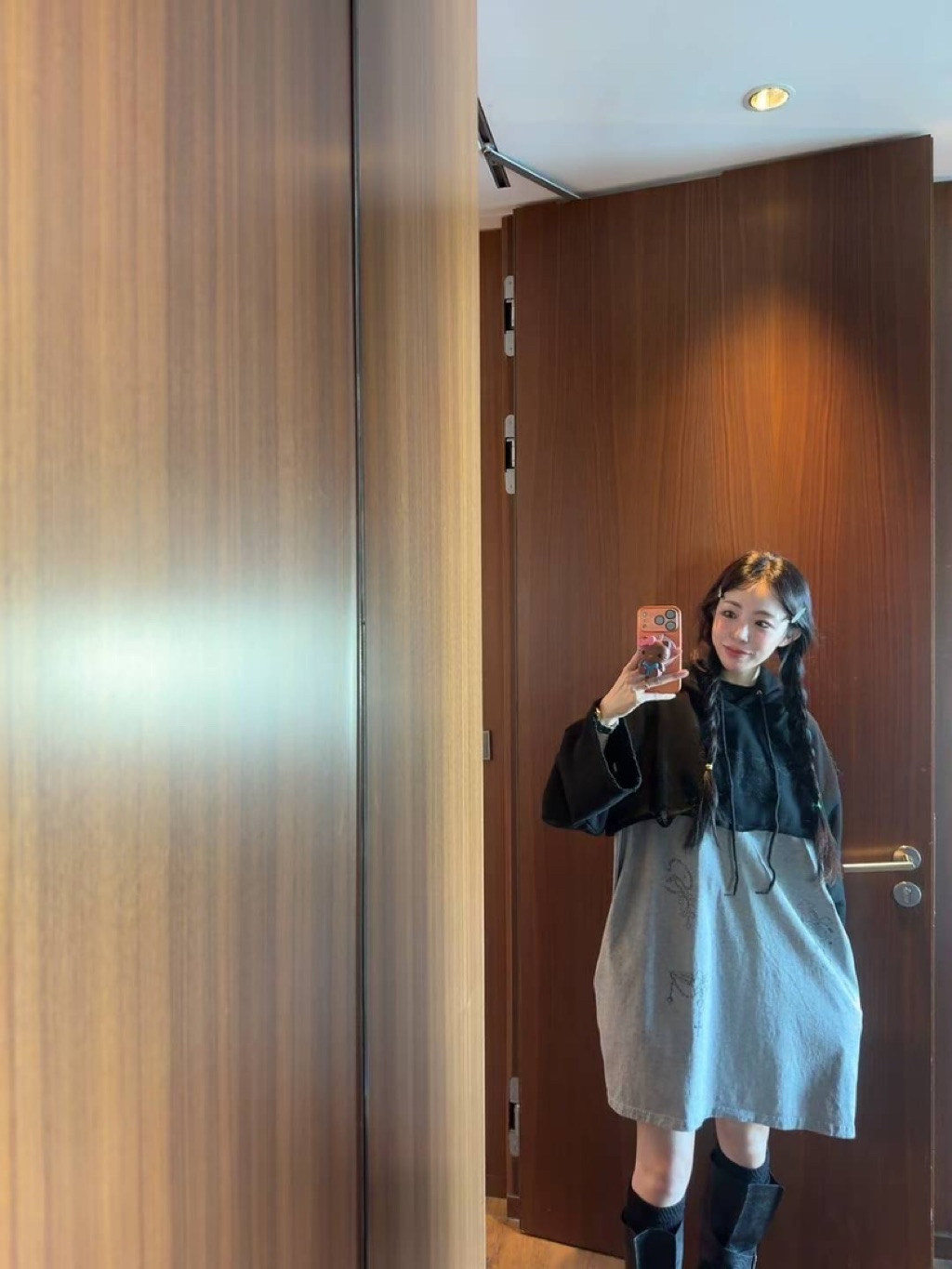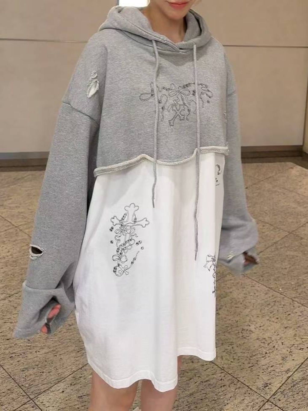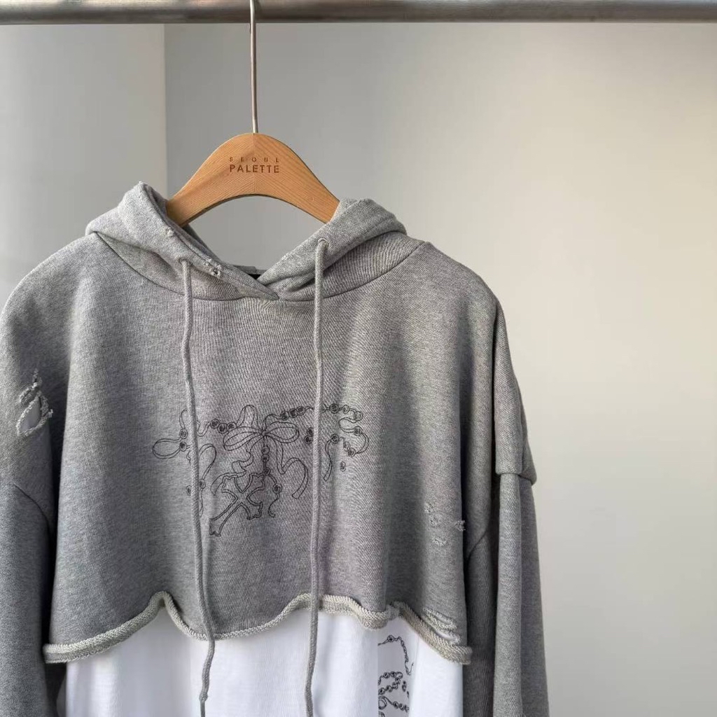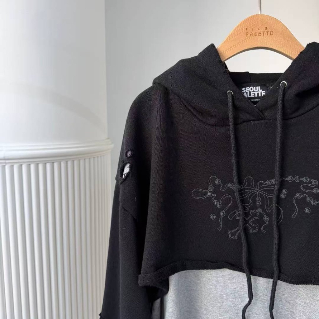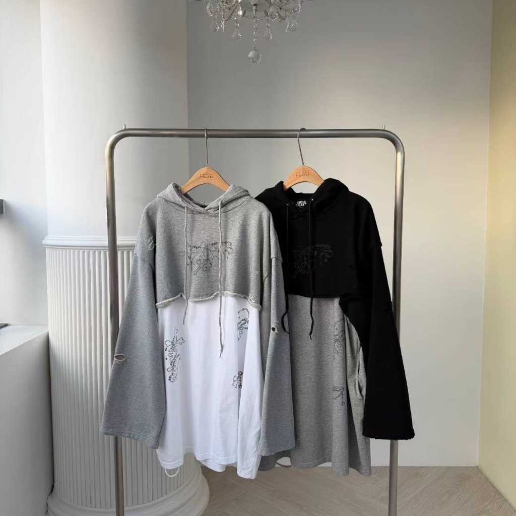 [ 7loong ] 正韓預購 太妍家 25FW秋冬 假兩件式破洞塗鴉連帽連身洋裝(共2色)
