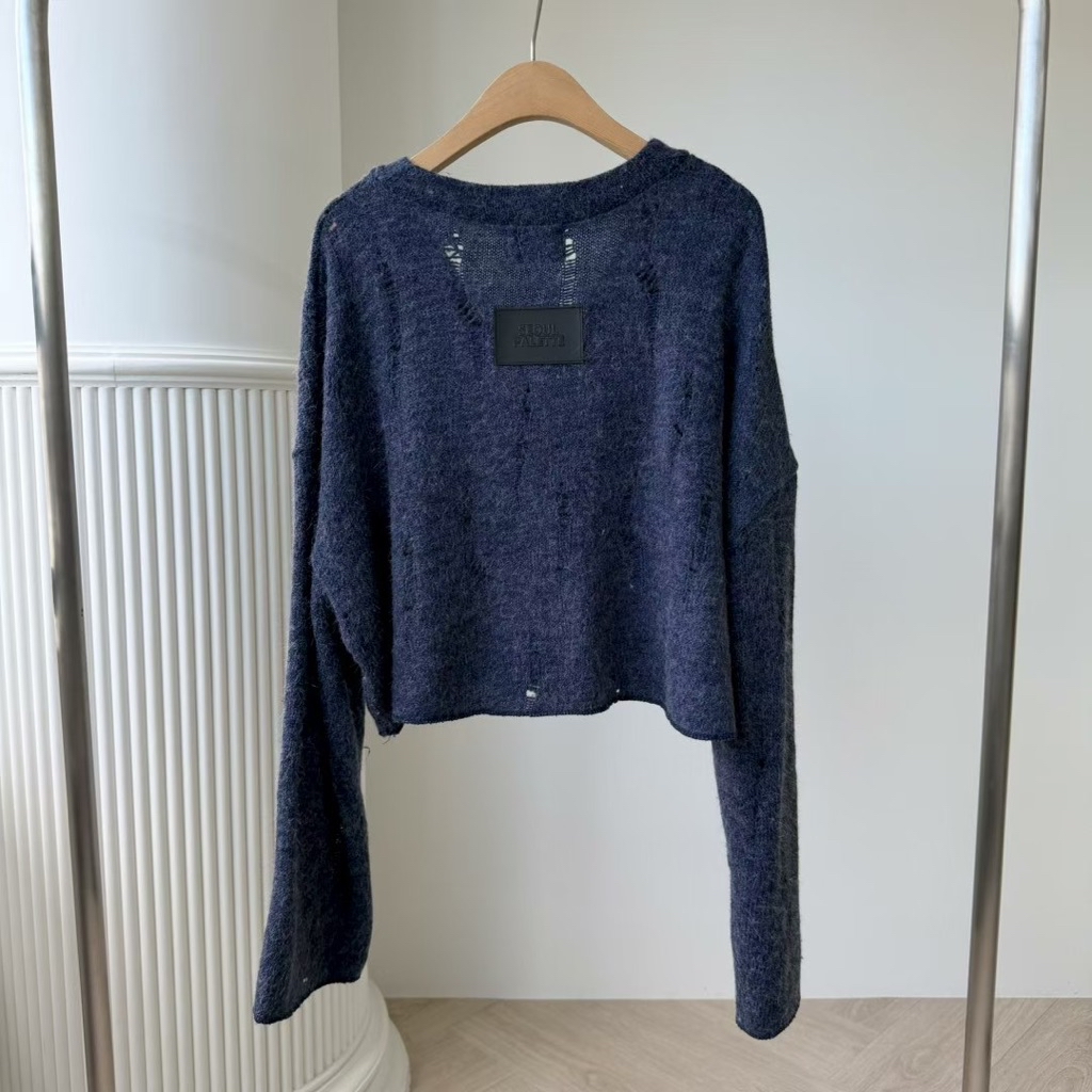 [ 7loong ] 正韓預購 太妍家 25FW秋冬 破壞洞洞短版v領薄針織衫(共2色)