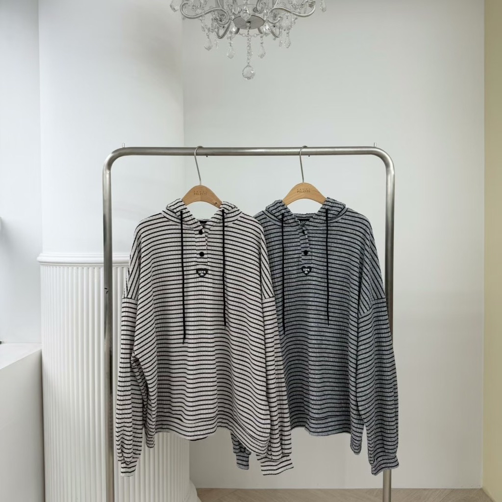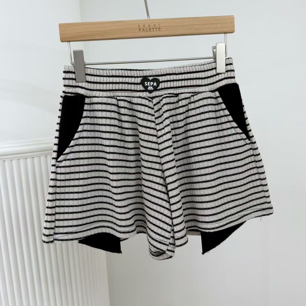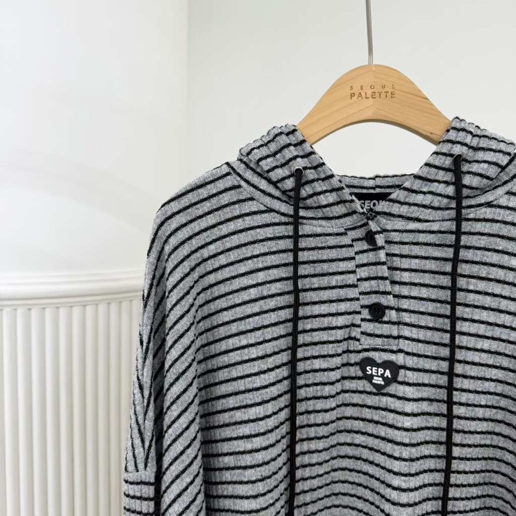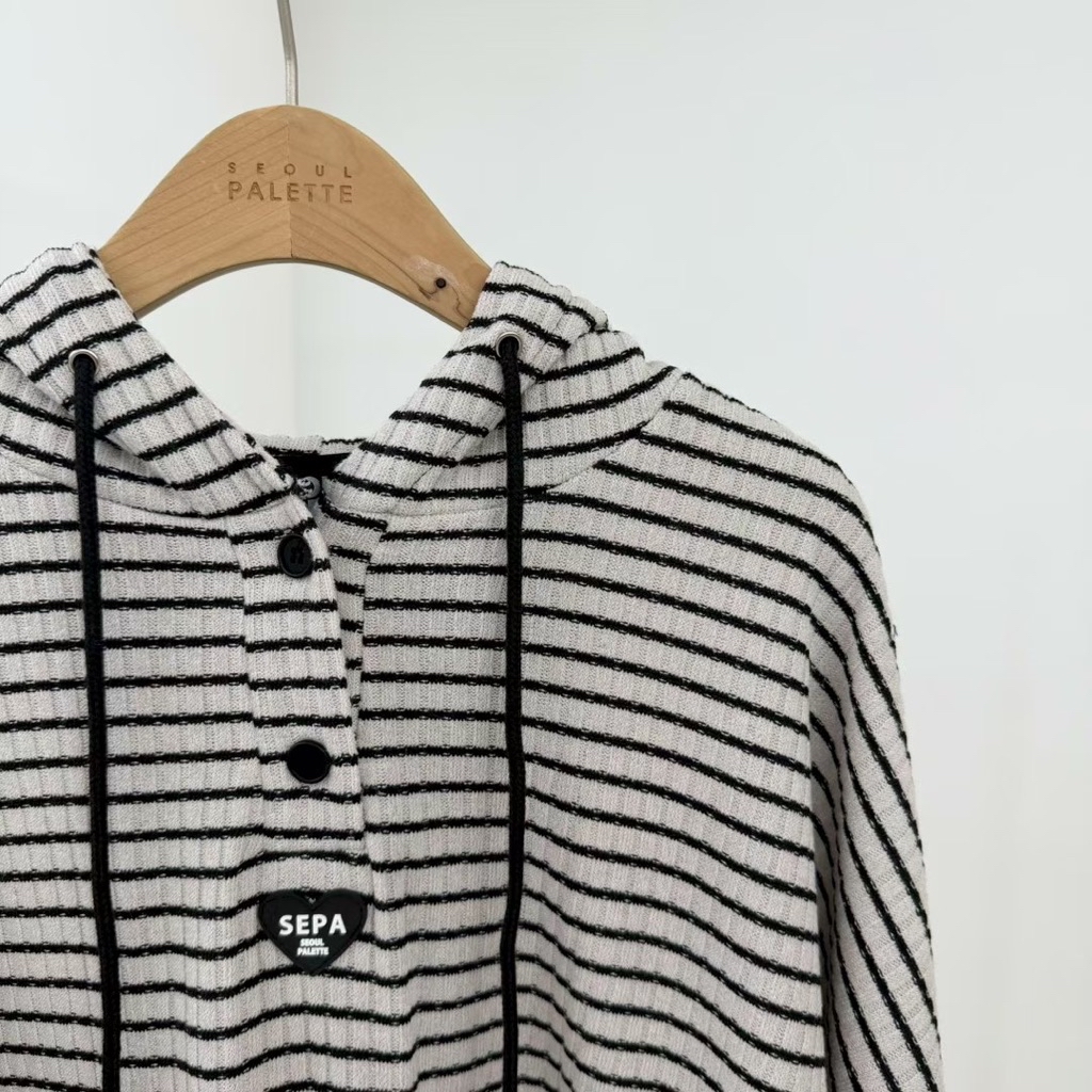 [ 7loong ] 正韓預購 太妍家 26SS早春 手肘愛心條紋開釦連帽帽T+條紋愛心後口袋短褲(共2色)