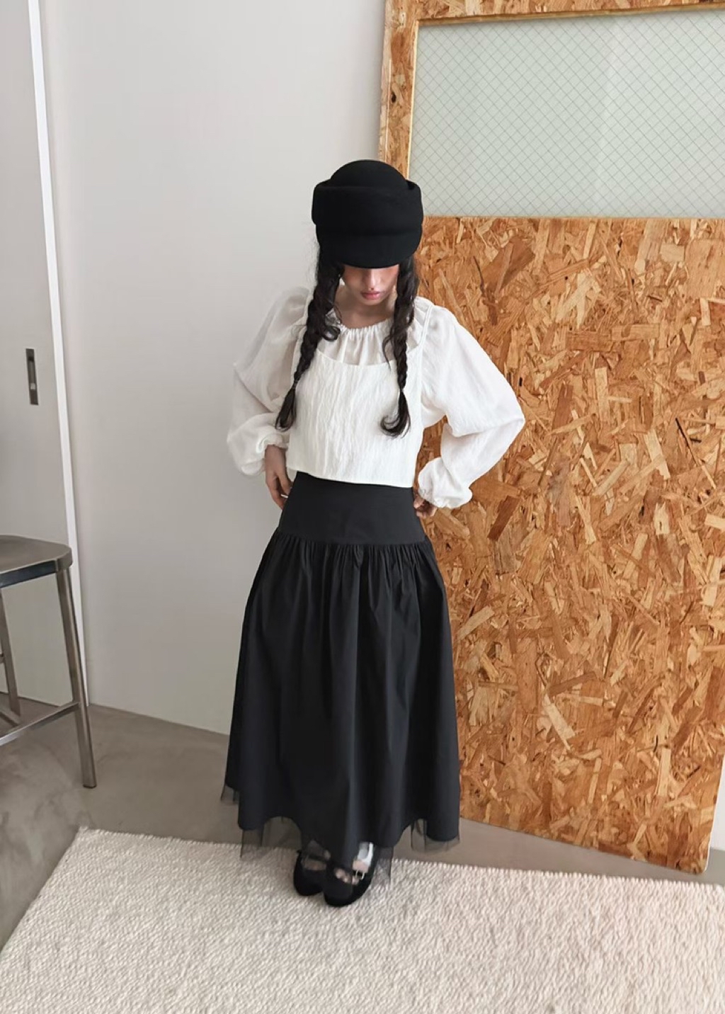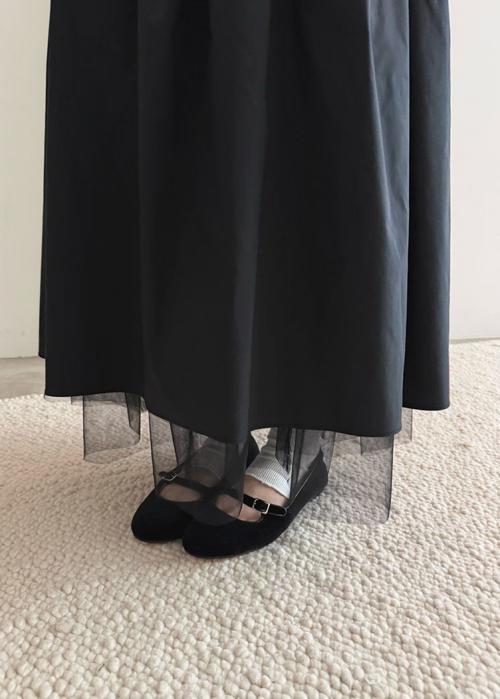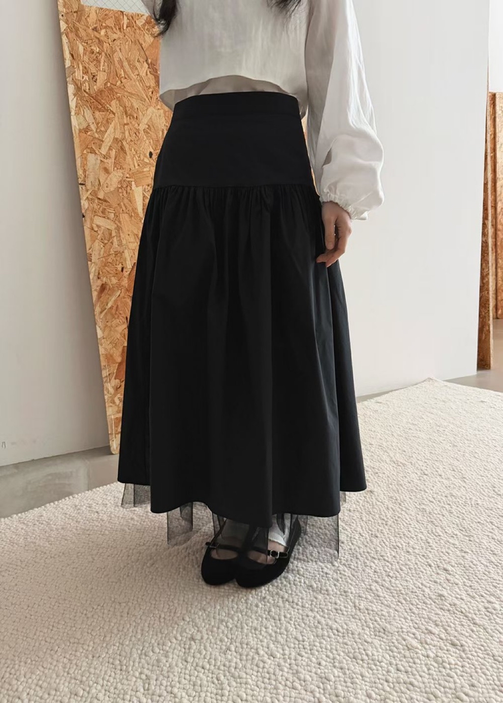 [ 7loong ] 正韓預購 Yunbal 26SS早春 下擺透紗拼接長裙(共2色)