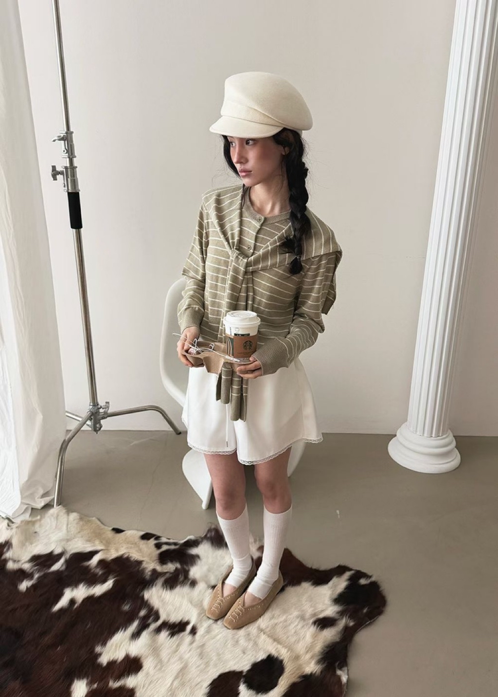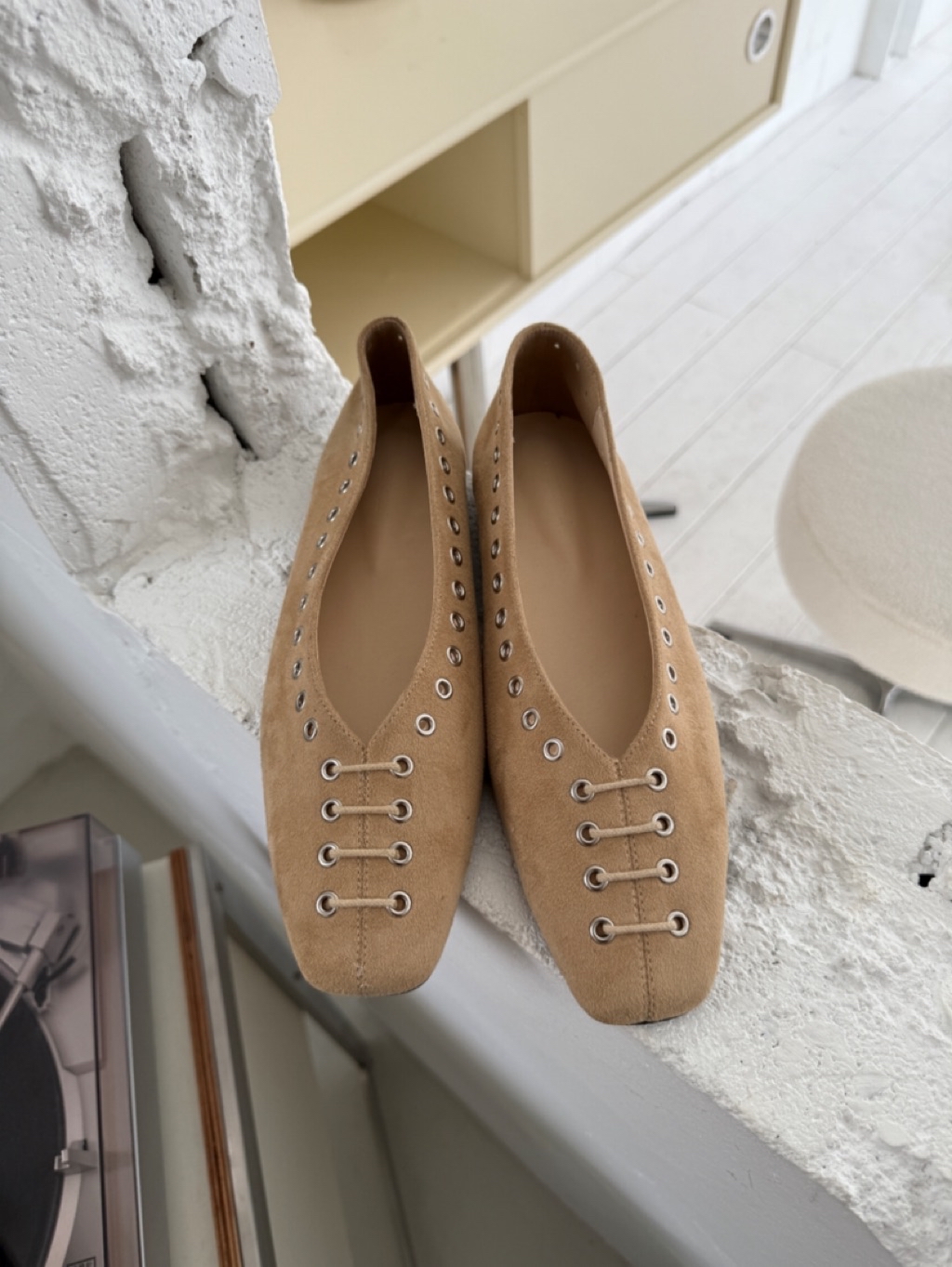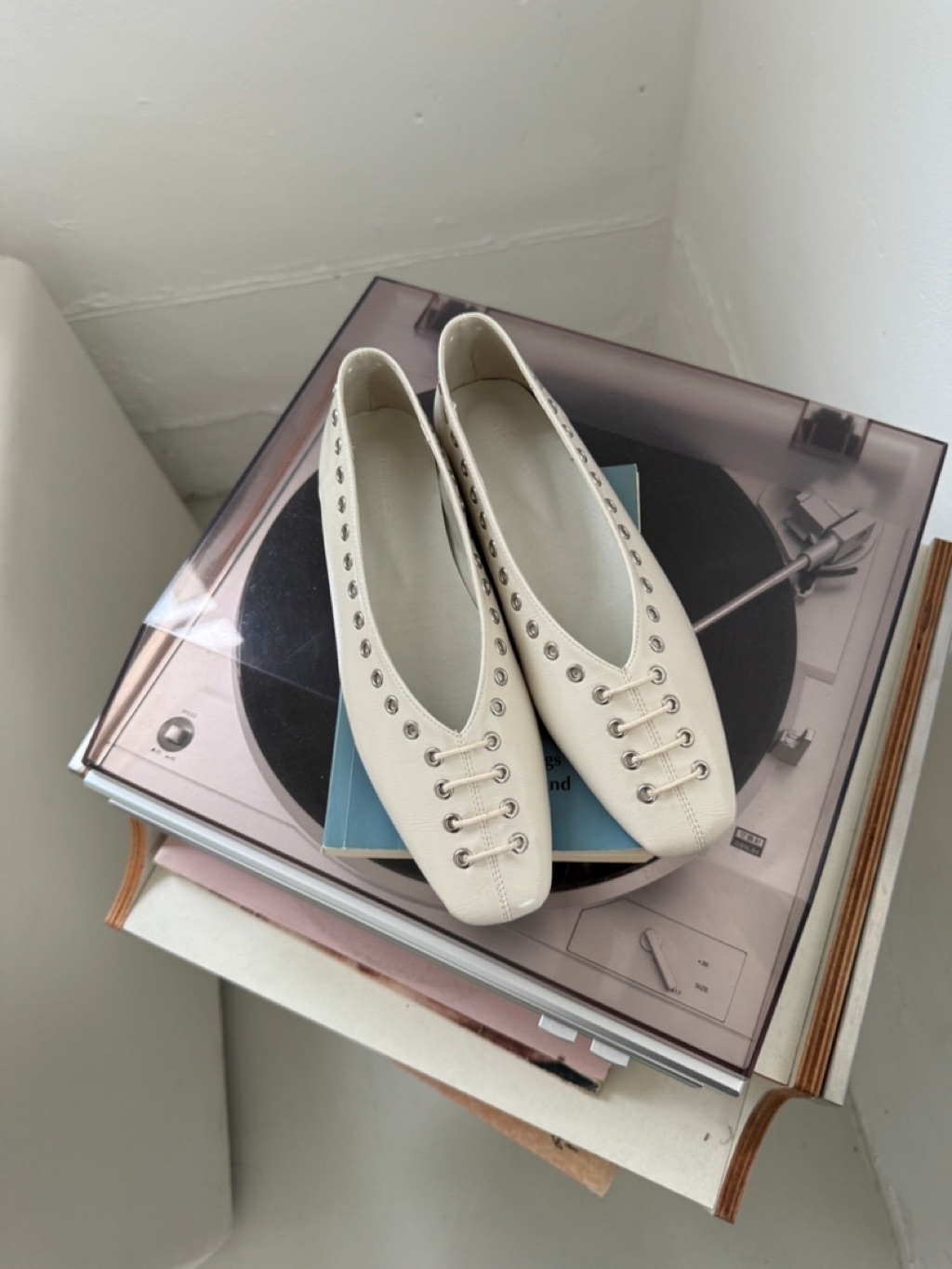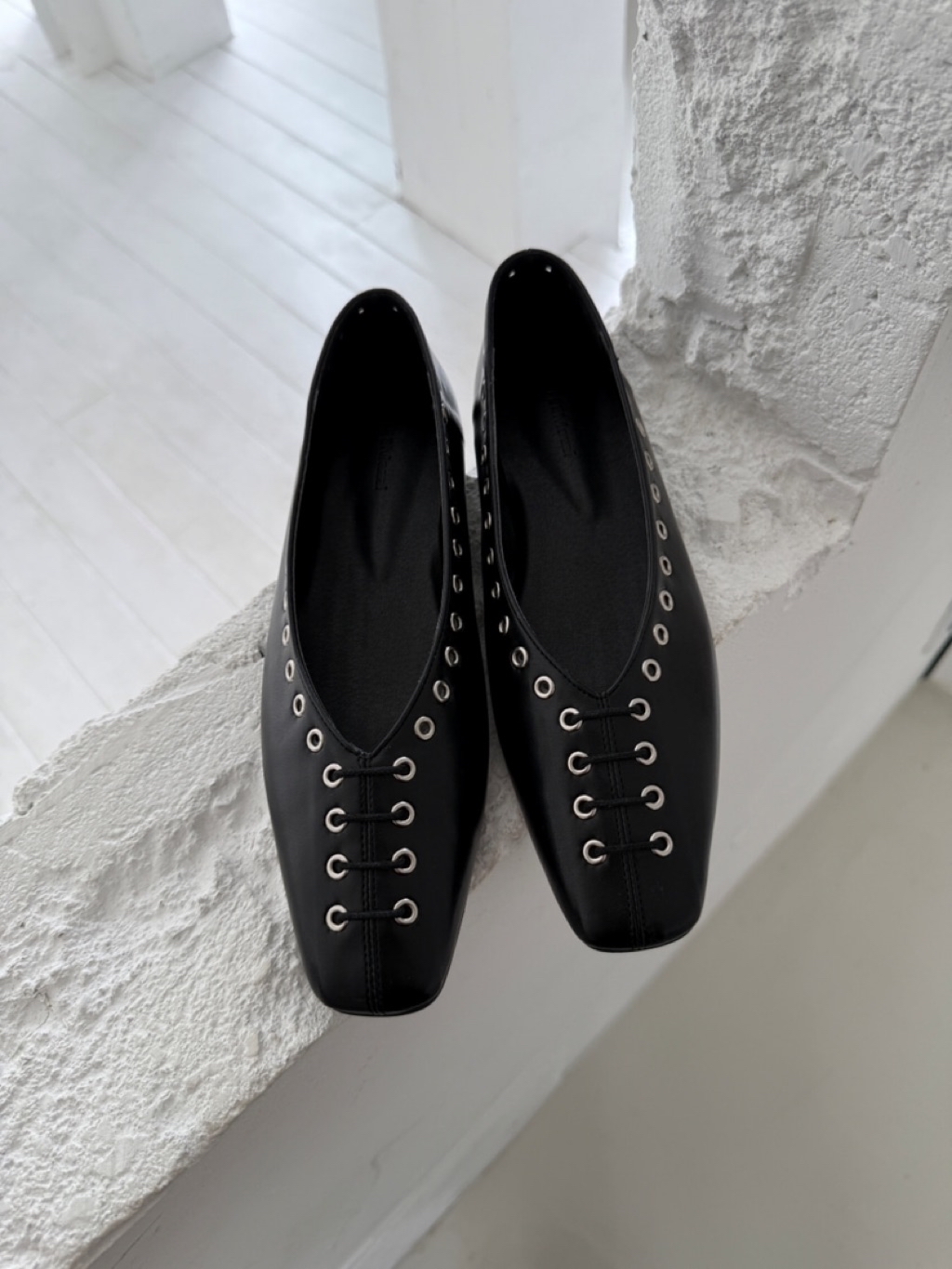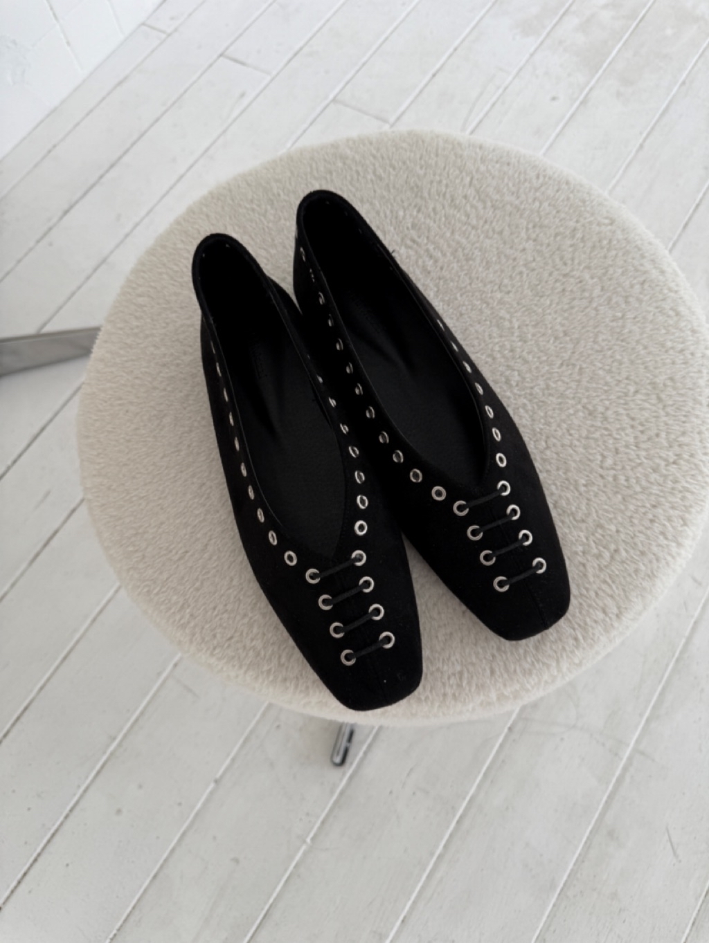 [ 7loong ] 現貨+預購 正韓 東大門選品 26SS早春 仿皮革圓孔釘釦穿繩小方頭平底鞋(共4色) 總分: 0 - 0 評價