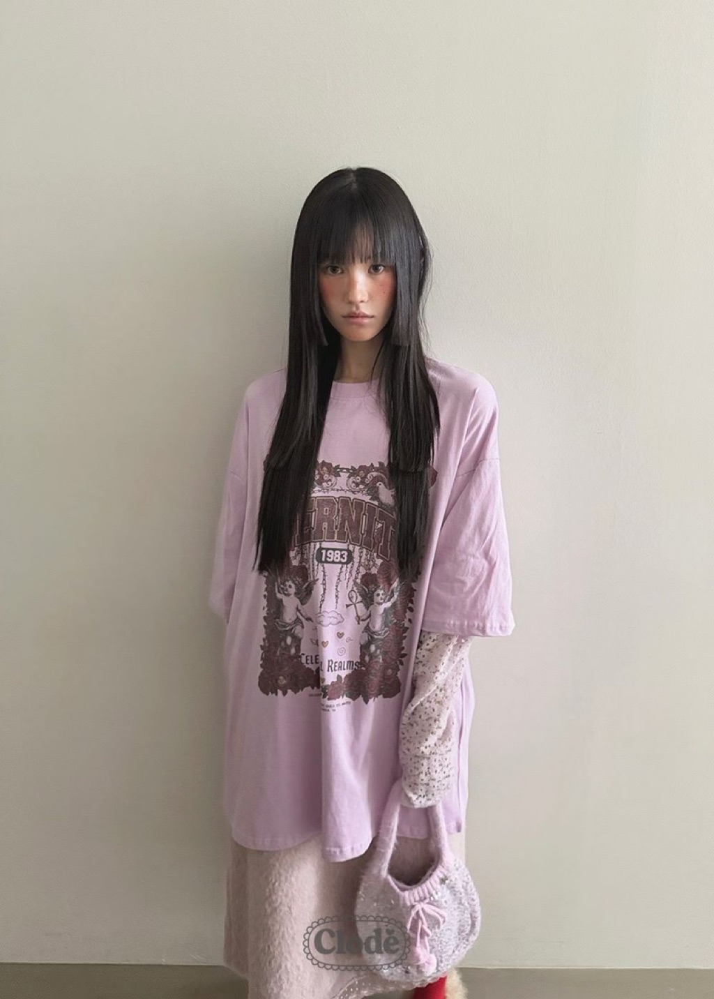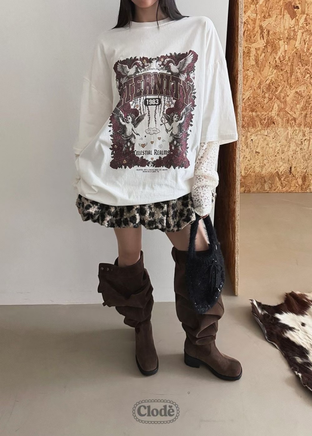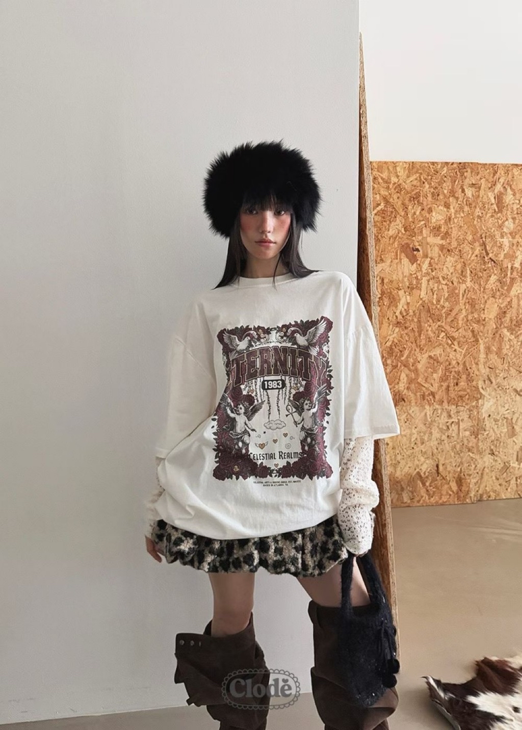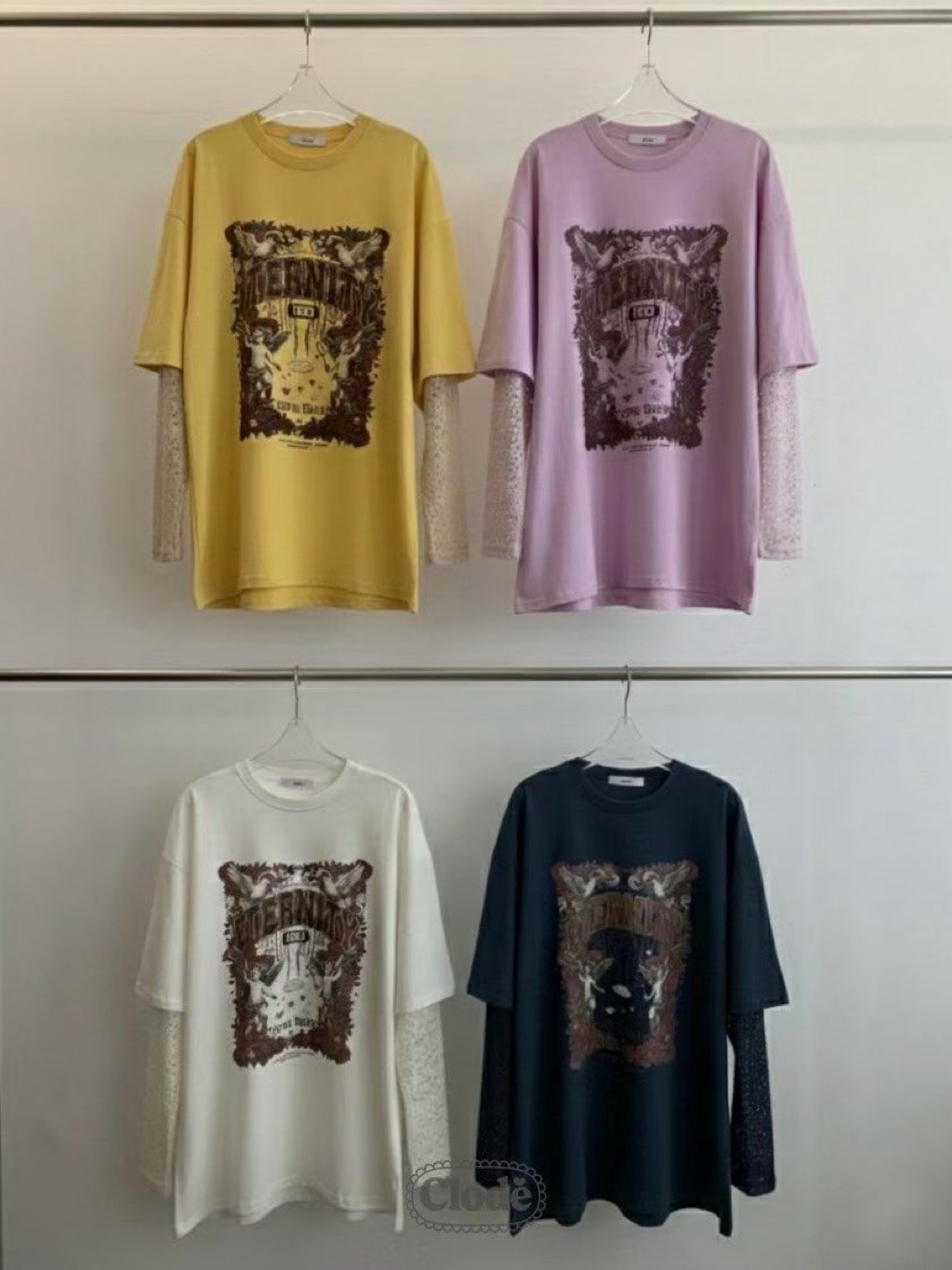 [ 7loong ] 正韓預購 Clode 25FW秋冬 玫瑰天使號角圖案假兩件上衣T恤(共4色)