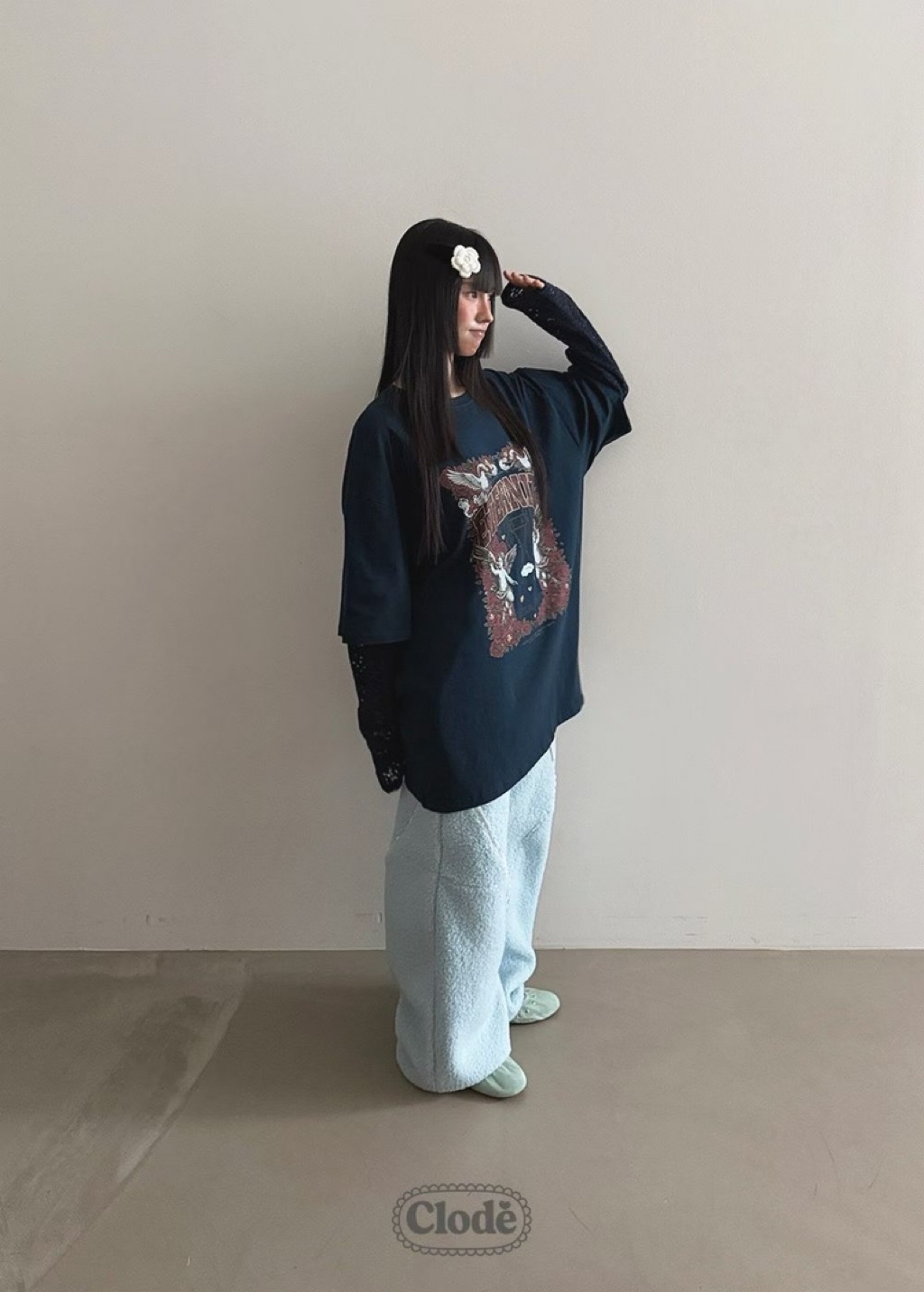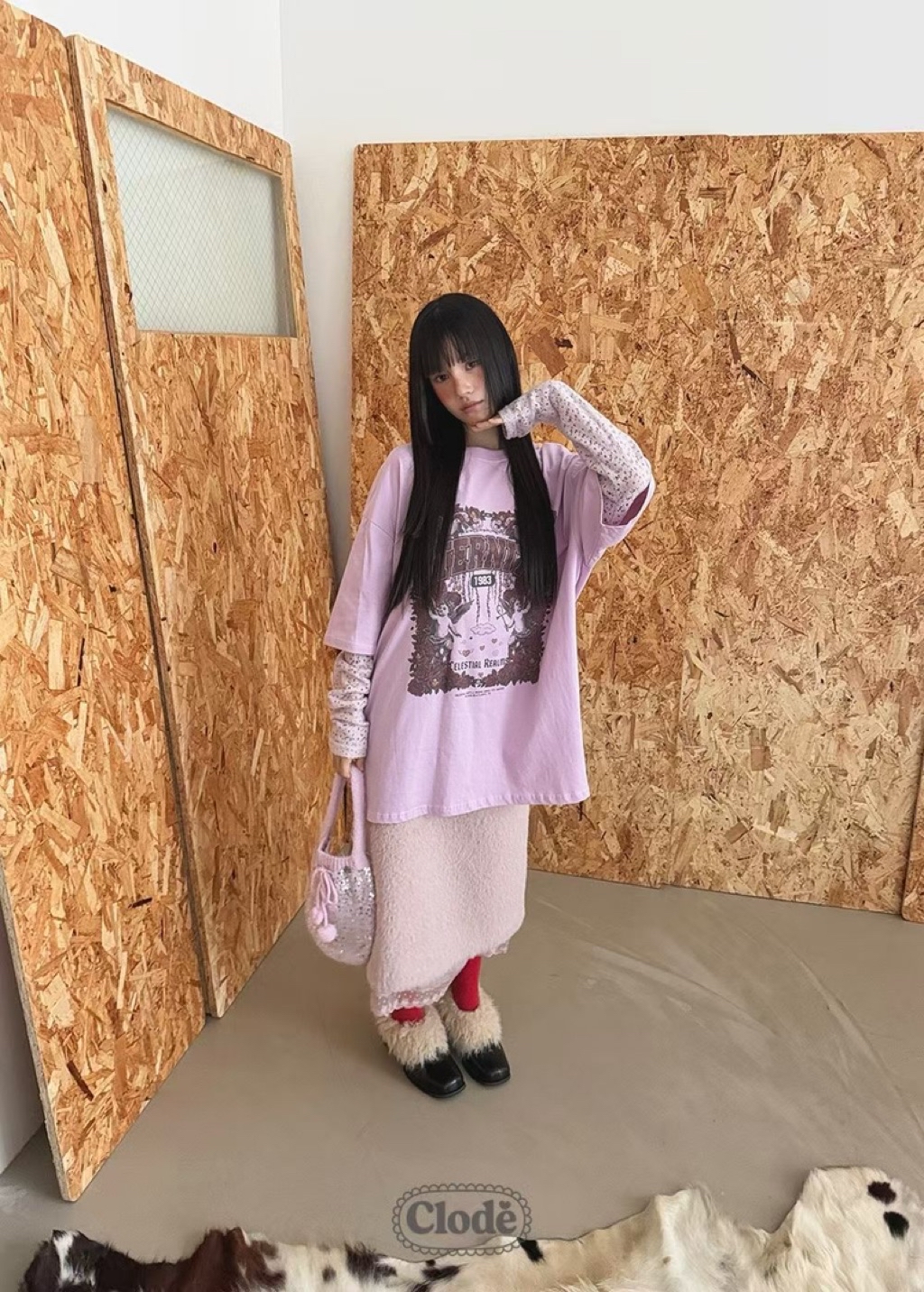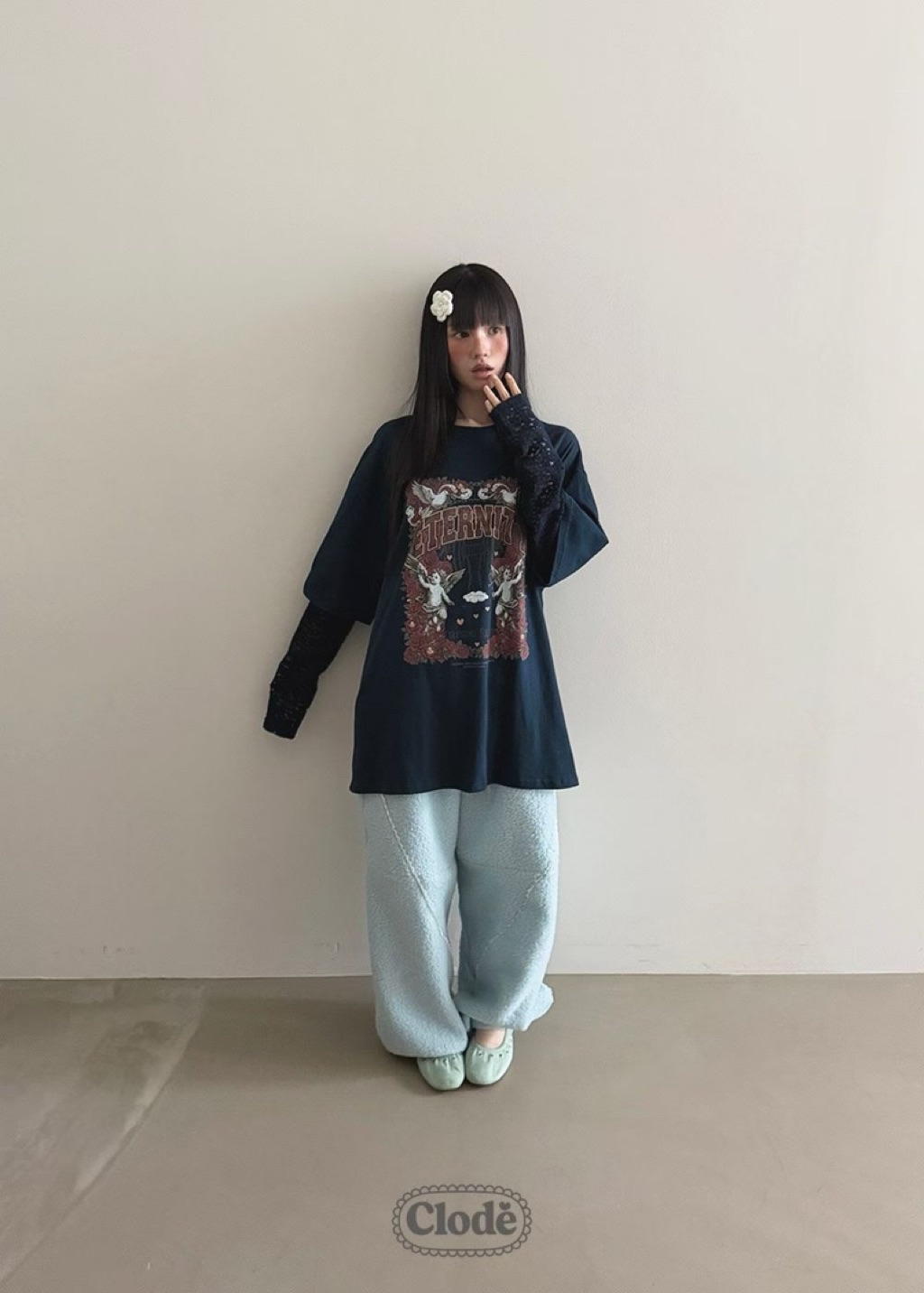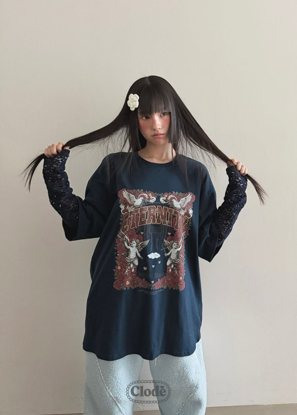 [ 7loong ] 正韓預購 Clode 25FW秋冬 玫瑰天使號角圖案假兩件上衣T恤(共4色)