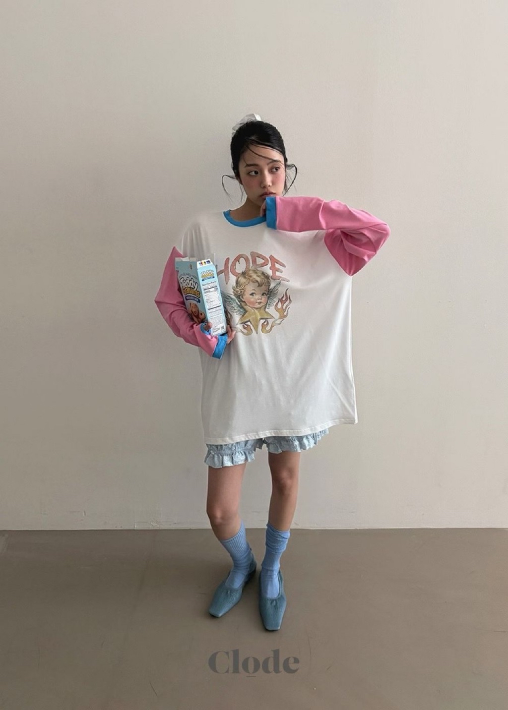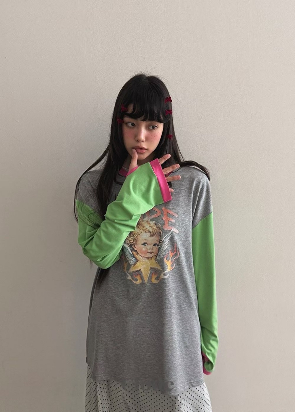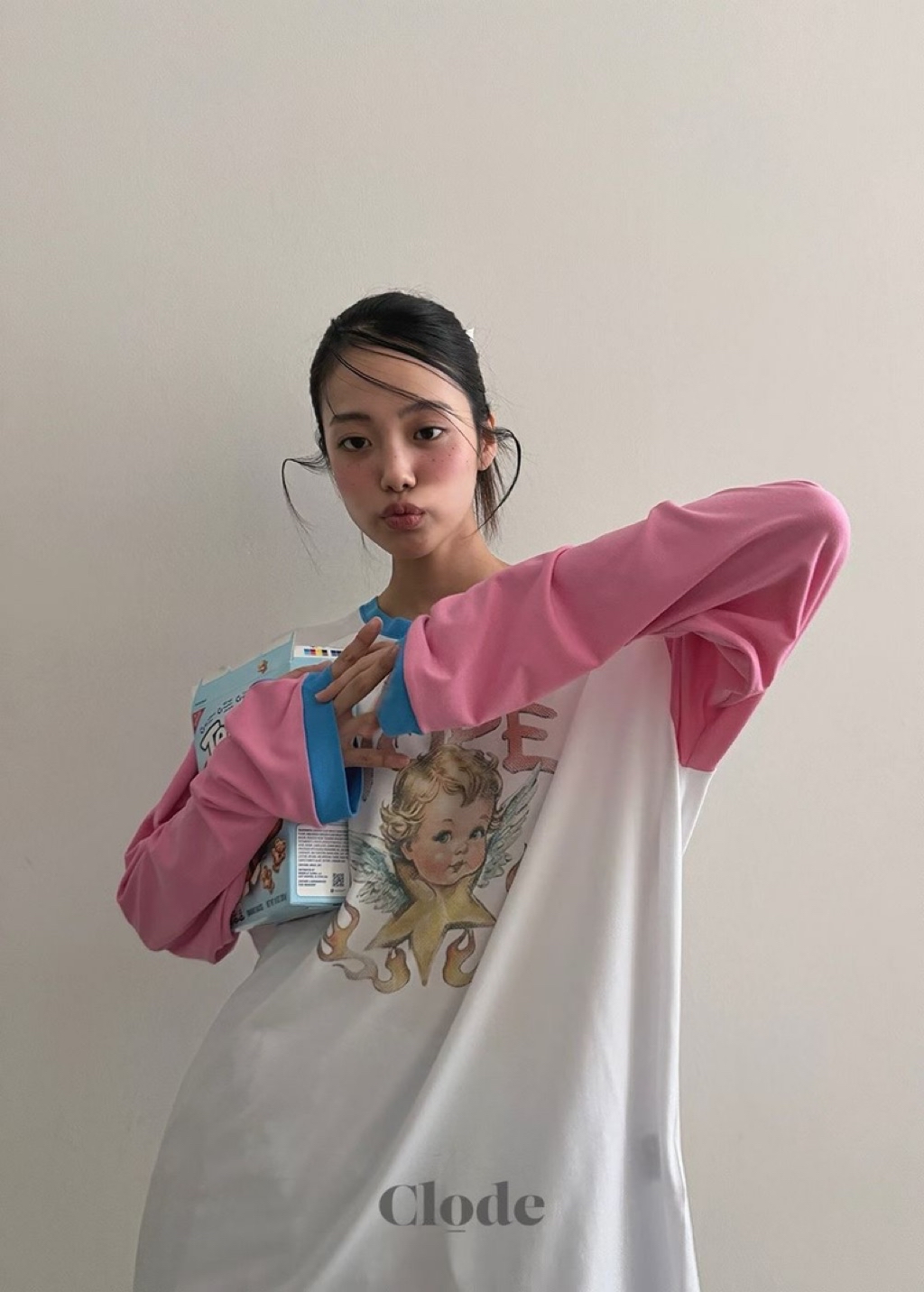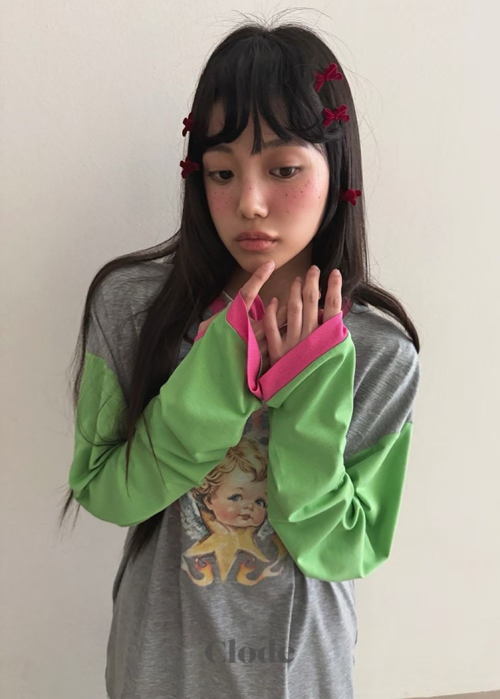 [ 7loong ] 現貨+預購 正韓 Clode 26SS早春 多巴胺天使hope撞色袖口穿指上衣(共3色)