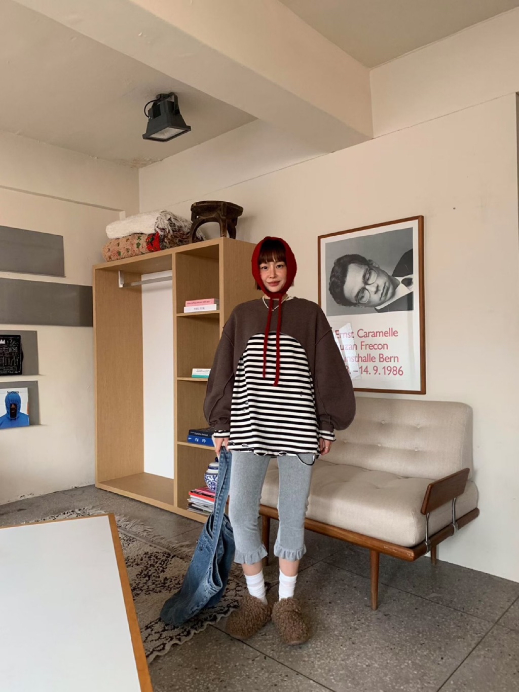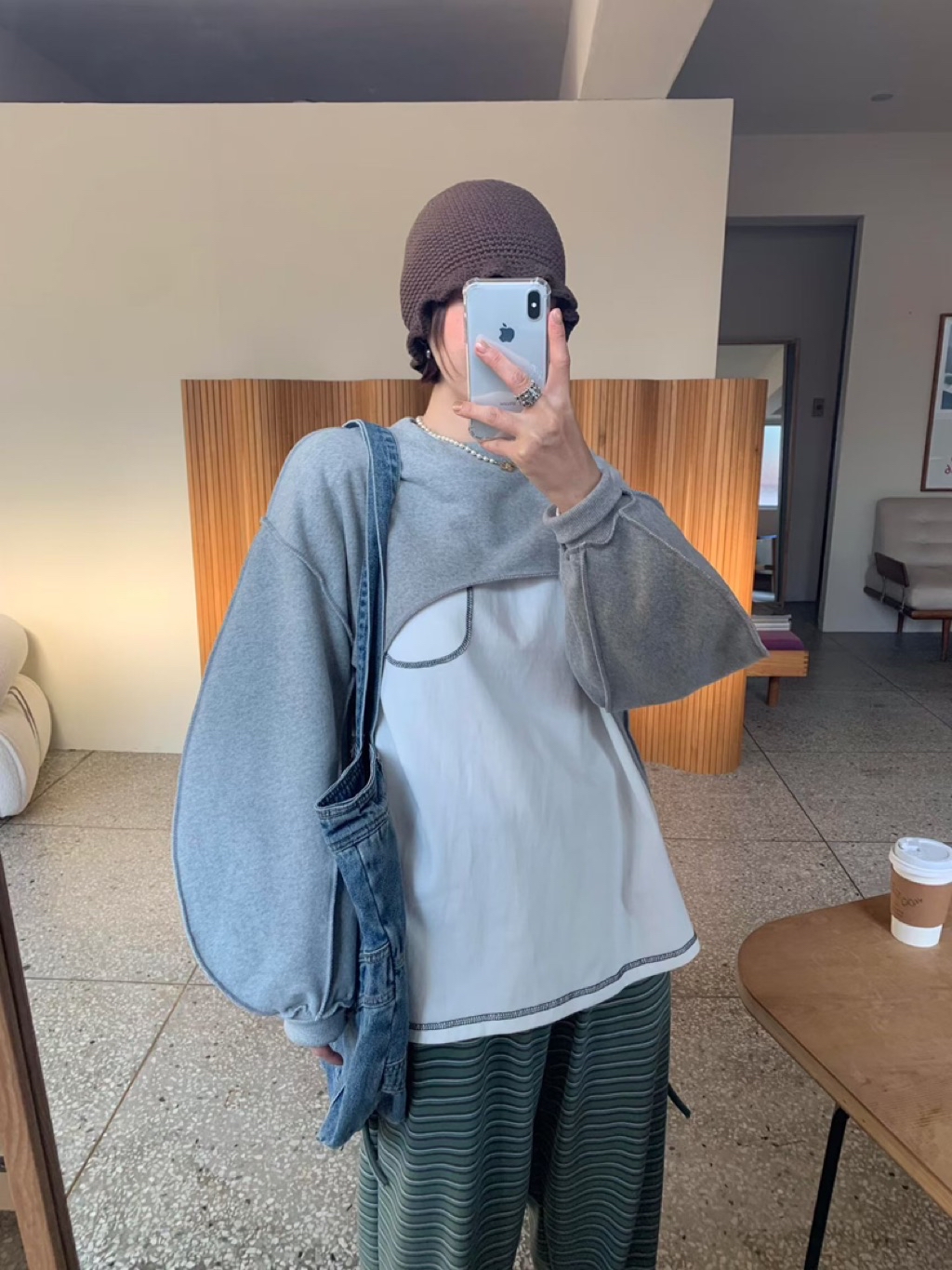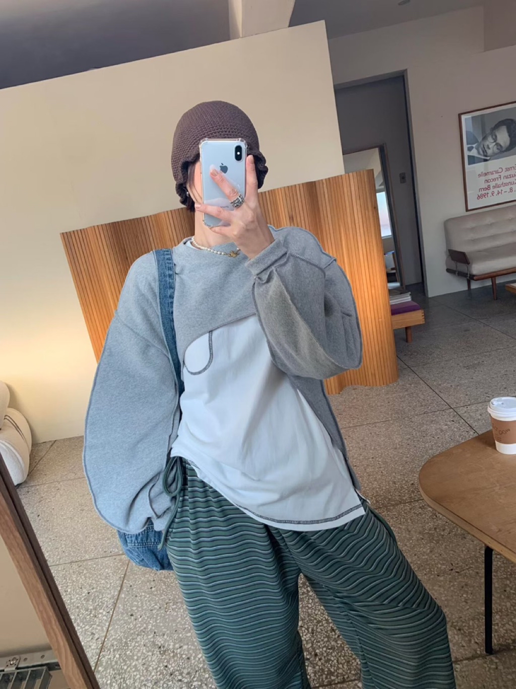 [ 7loong ] 正韓預購 5K雪熙 25FW秋冬 前短後長刷毛罩衫式大學T(共2色)