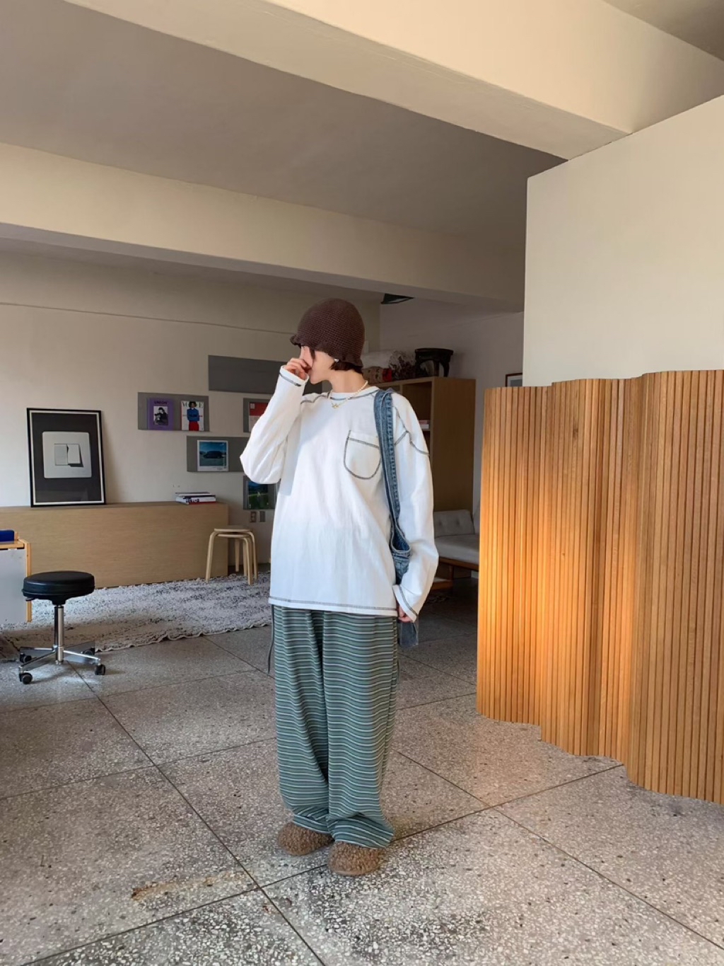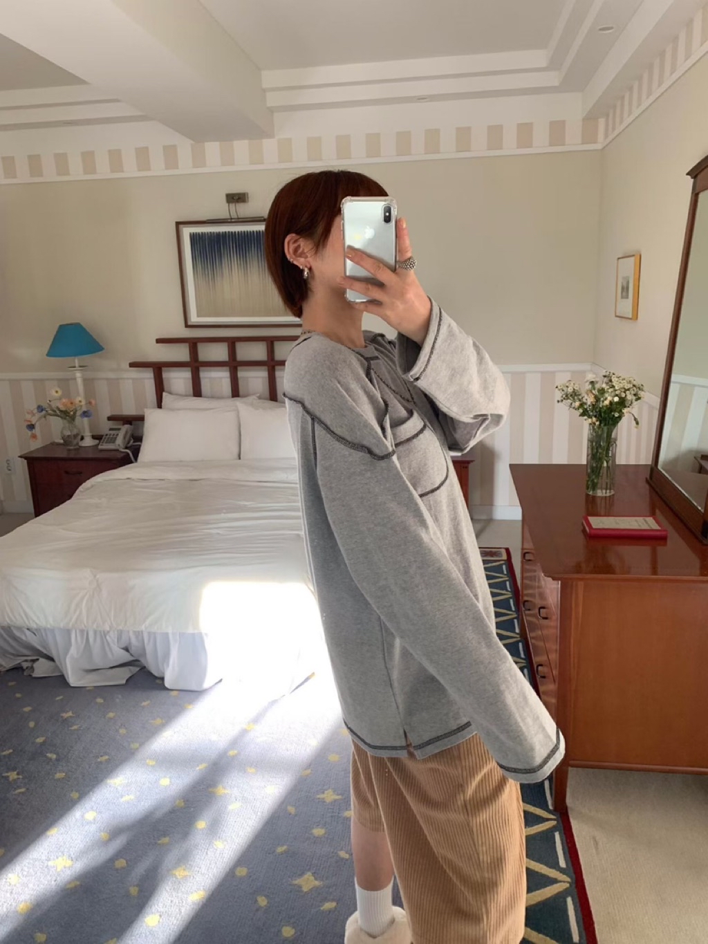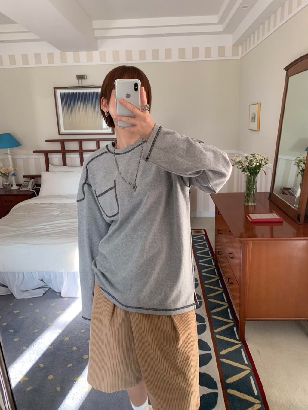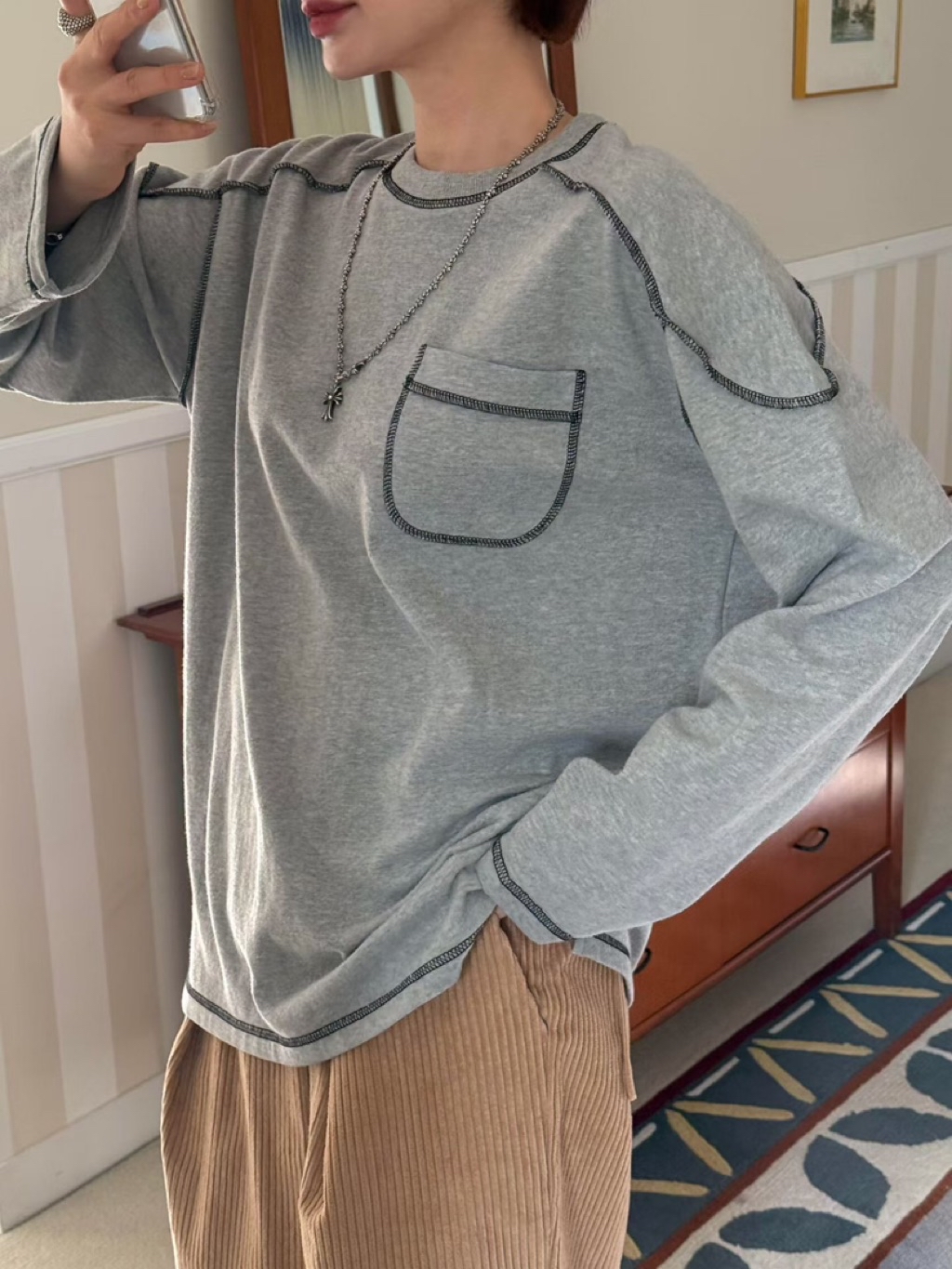 [ 7loong ] 正韓預購 5K雪熙 25FW秋冬 拷克車縫造型胸口袋薄長袖T恤(共2色)