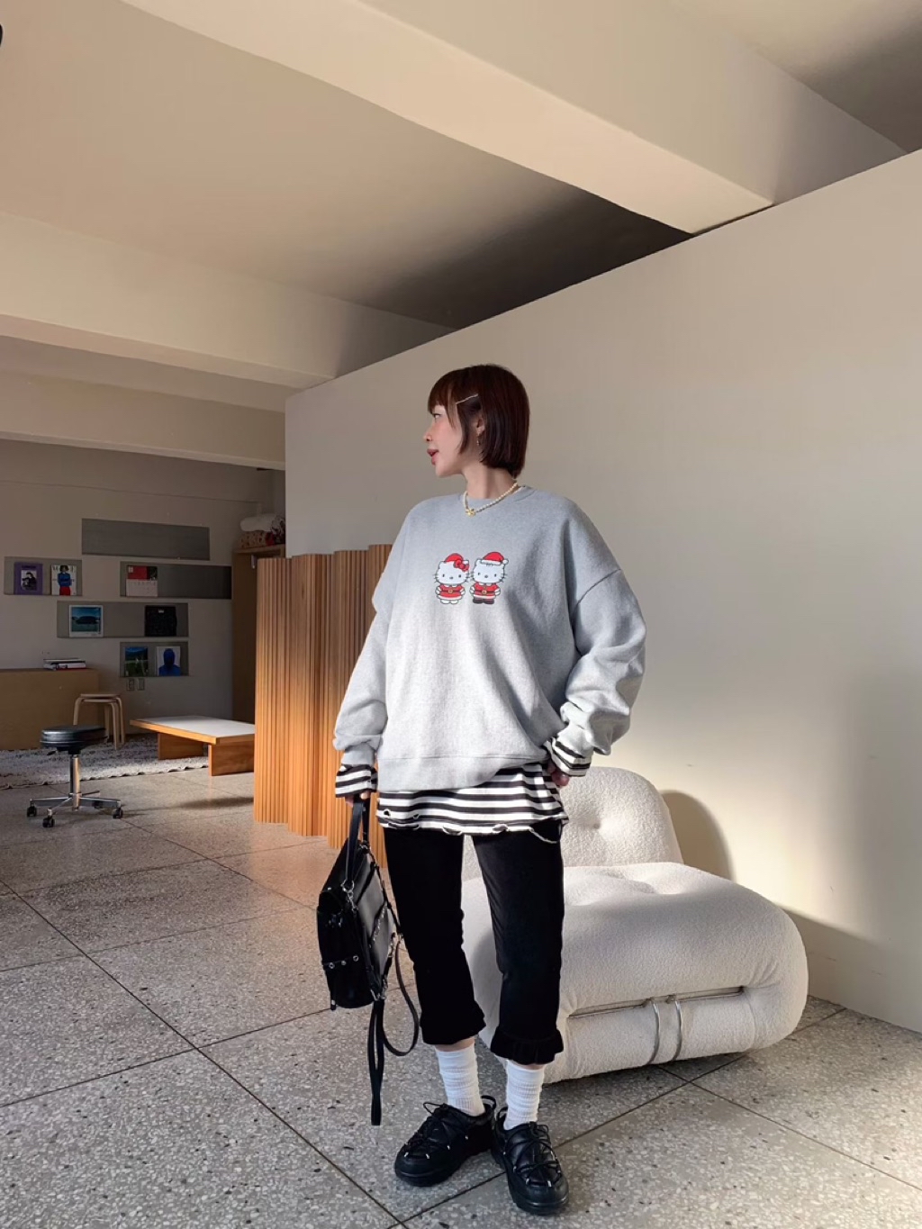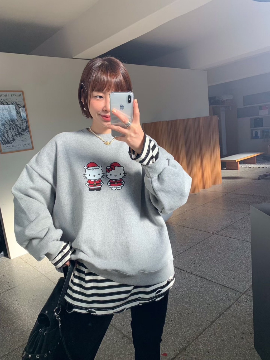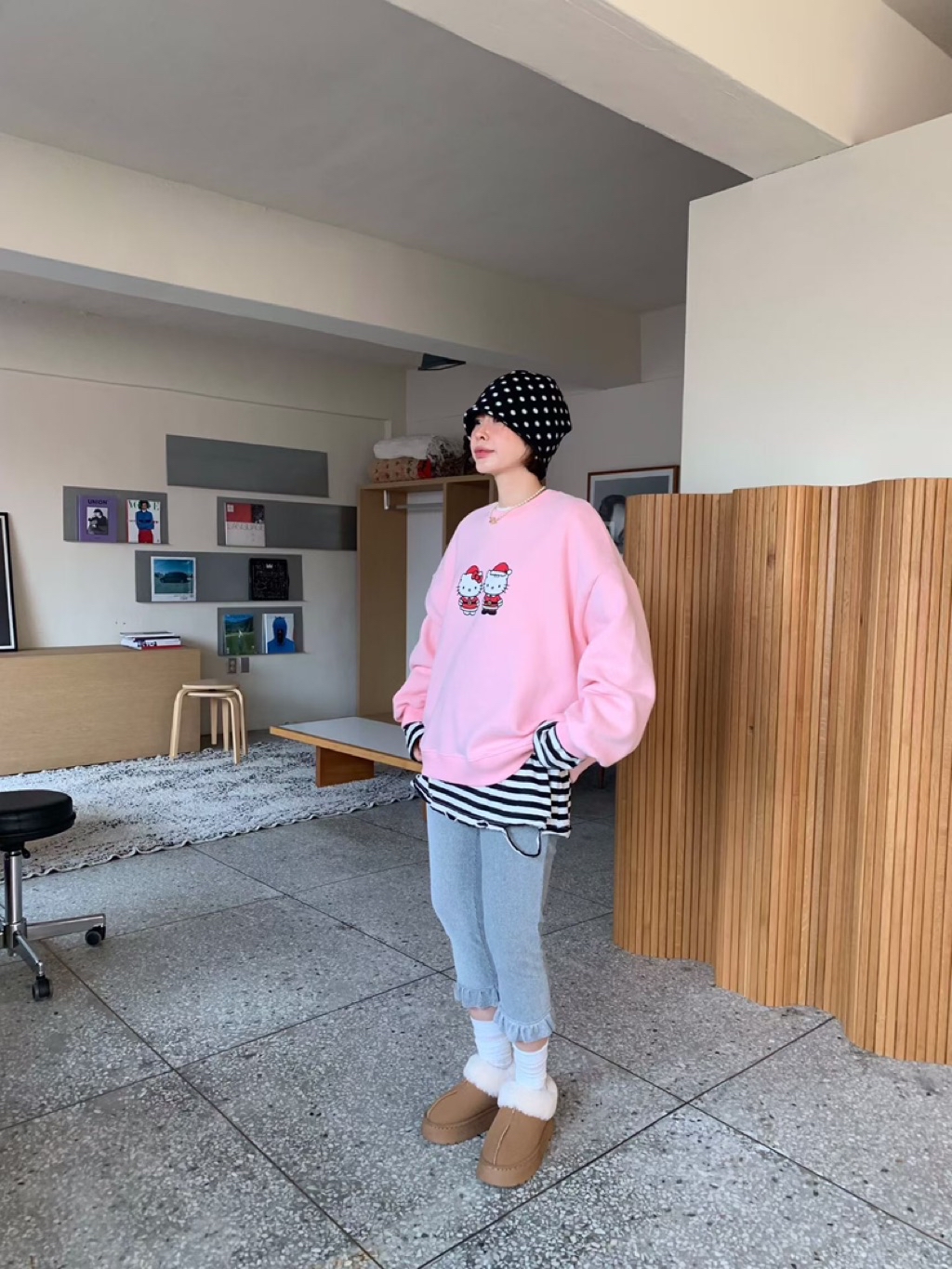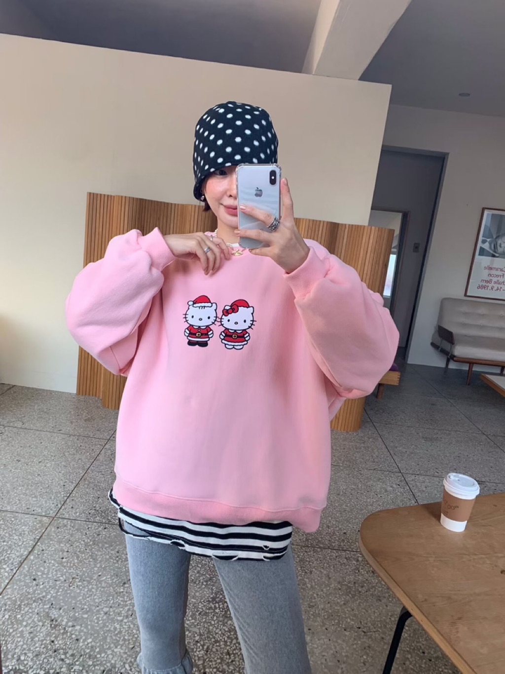 [ 7loong ] 正韓預購 5K雪熙 25FW秋冬 聖誕kitty夫婦圖案內刷毛大學T(共3色)