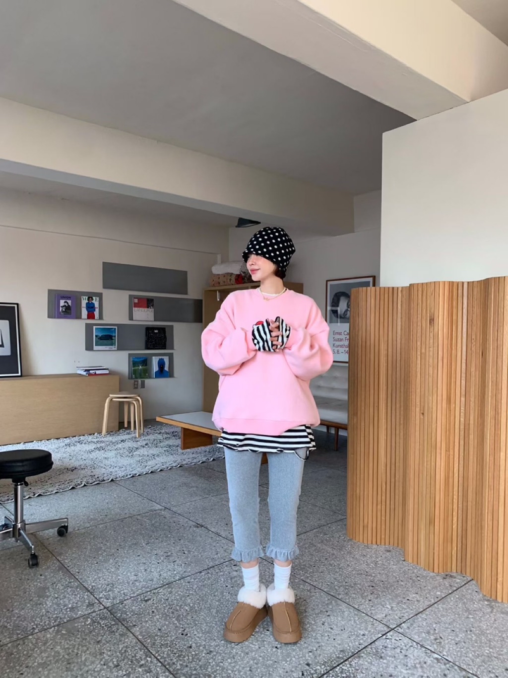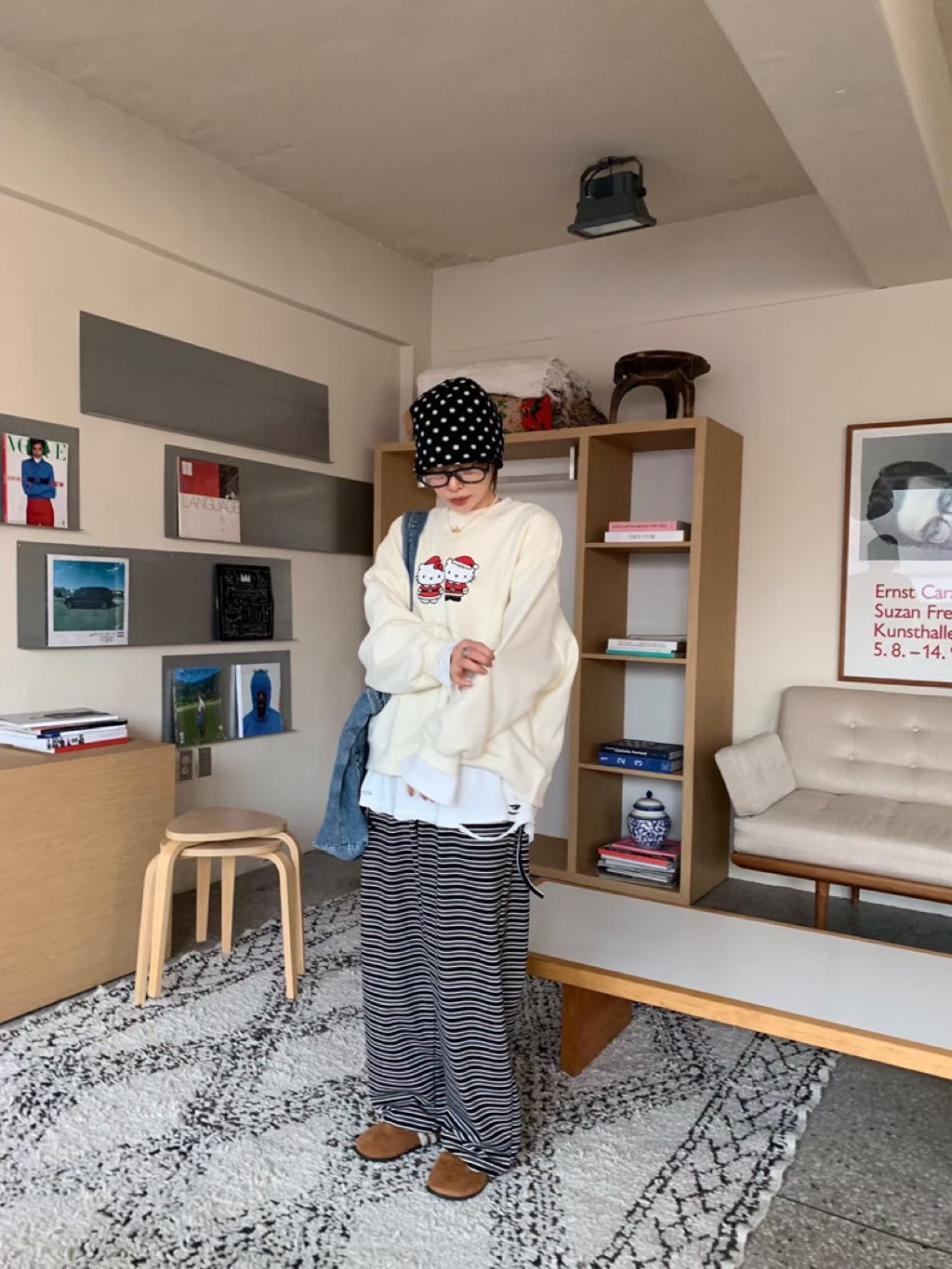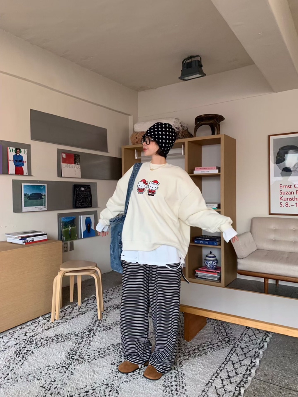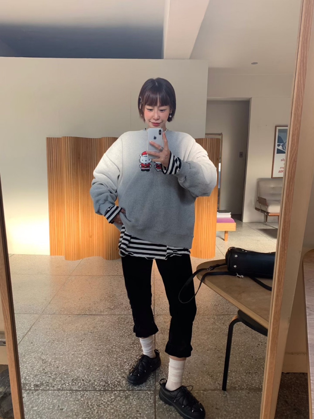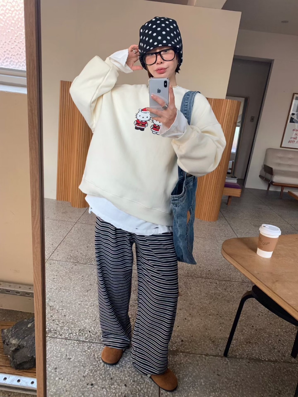 [ 7loong ] 正韓預購 5K雪熙 25FW秋冬 聖誕kitty夫婦圖案內刷毛大學T(共3色)