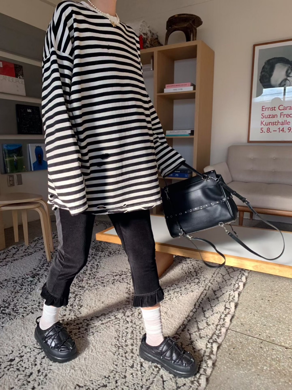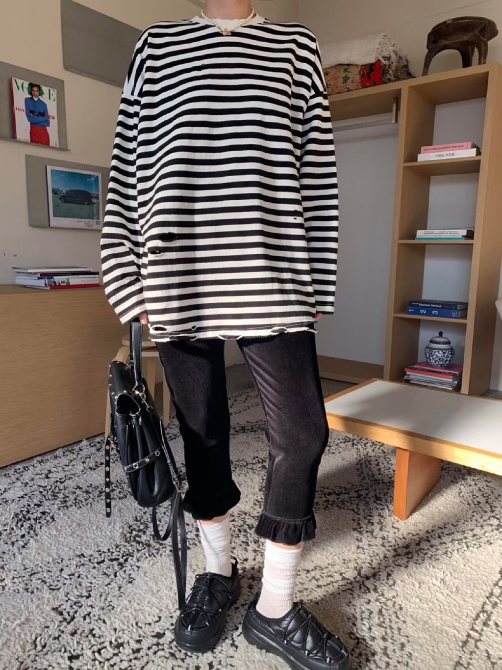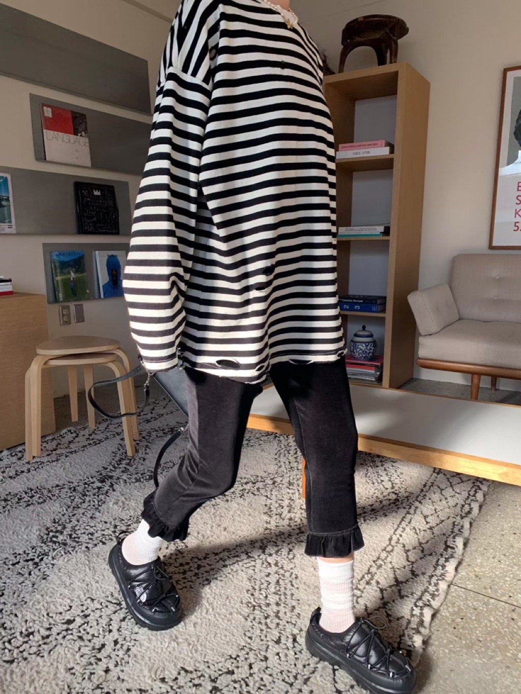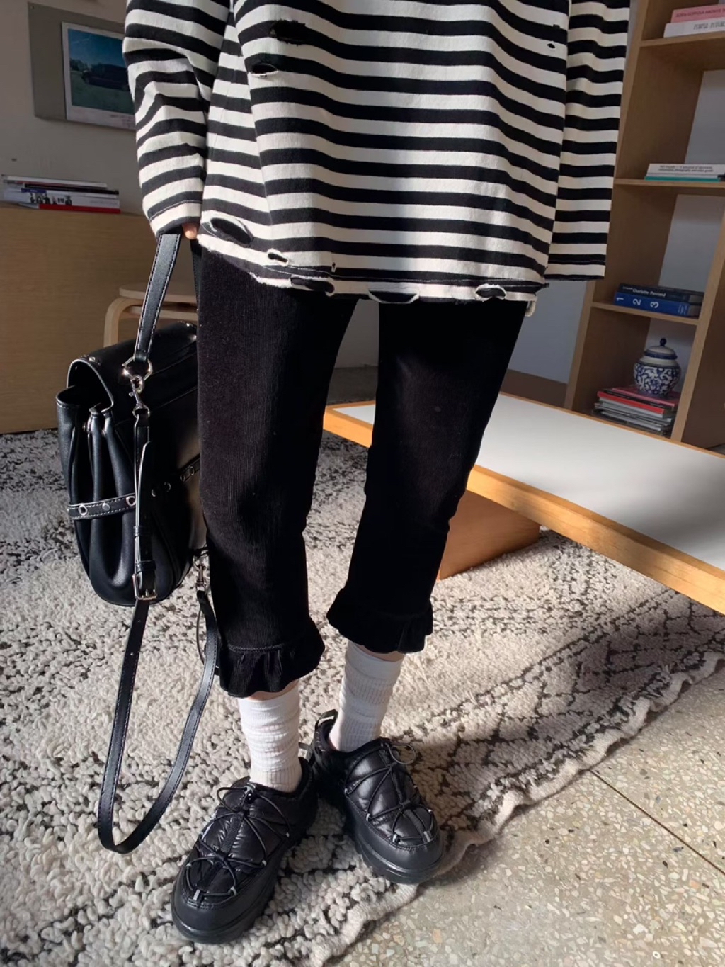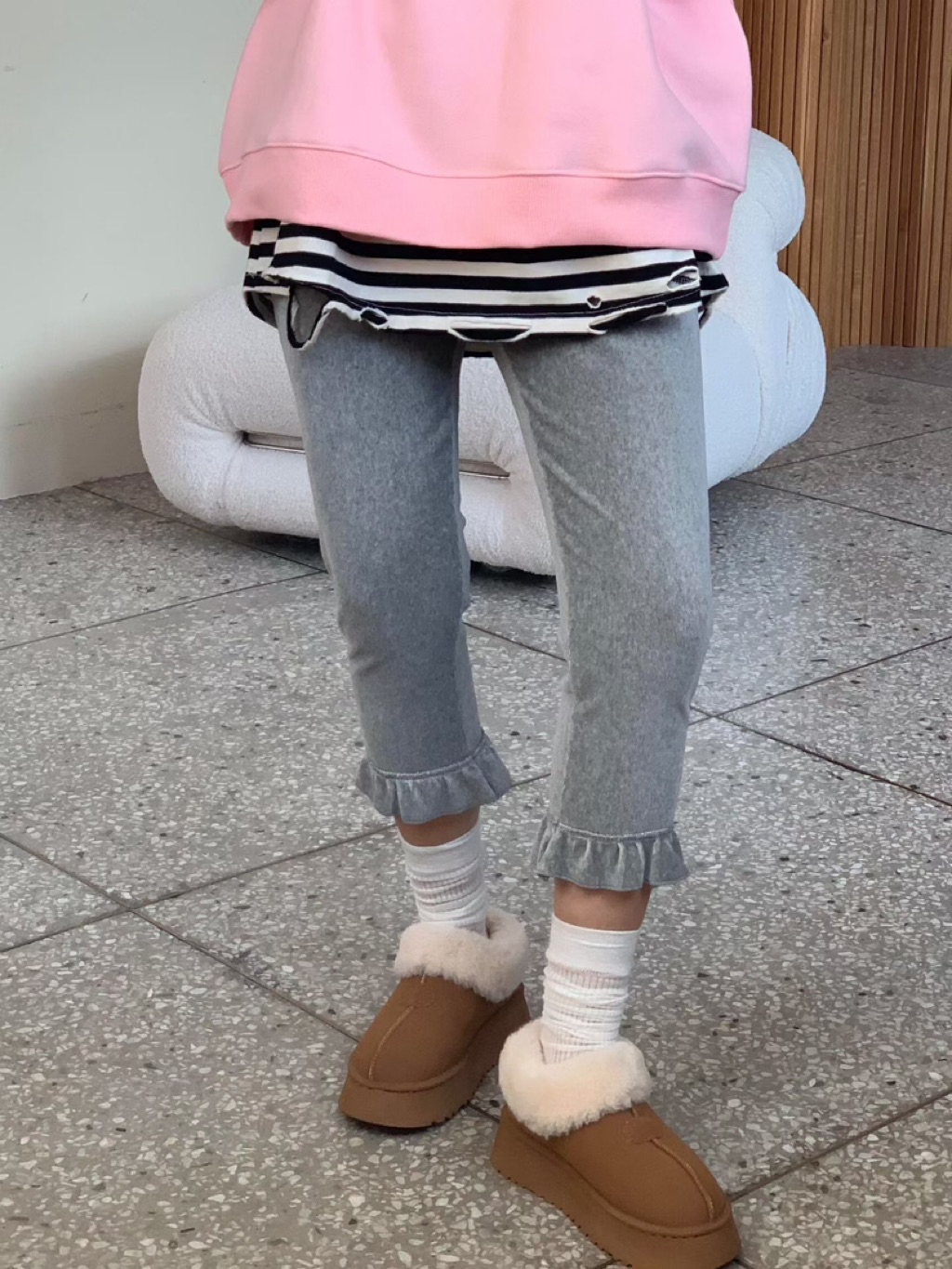 [ 7loong ] 正韓預購 5K雪熙 25FW秋冬 褲腳荷葉邊彈性七分褲(共2色)