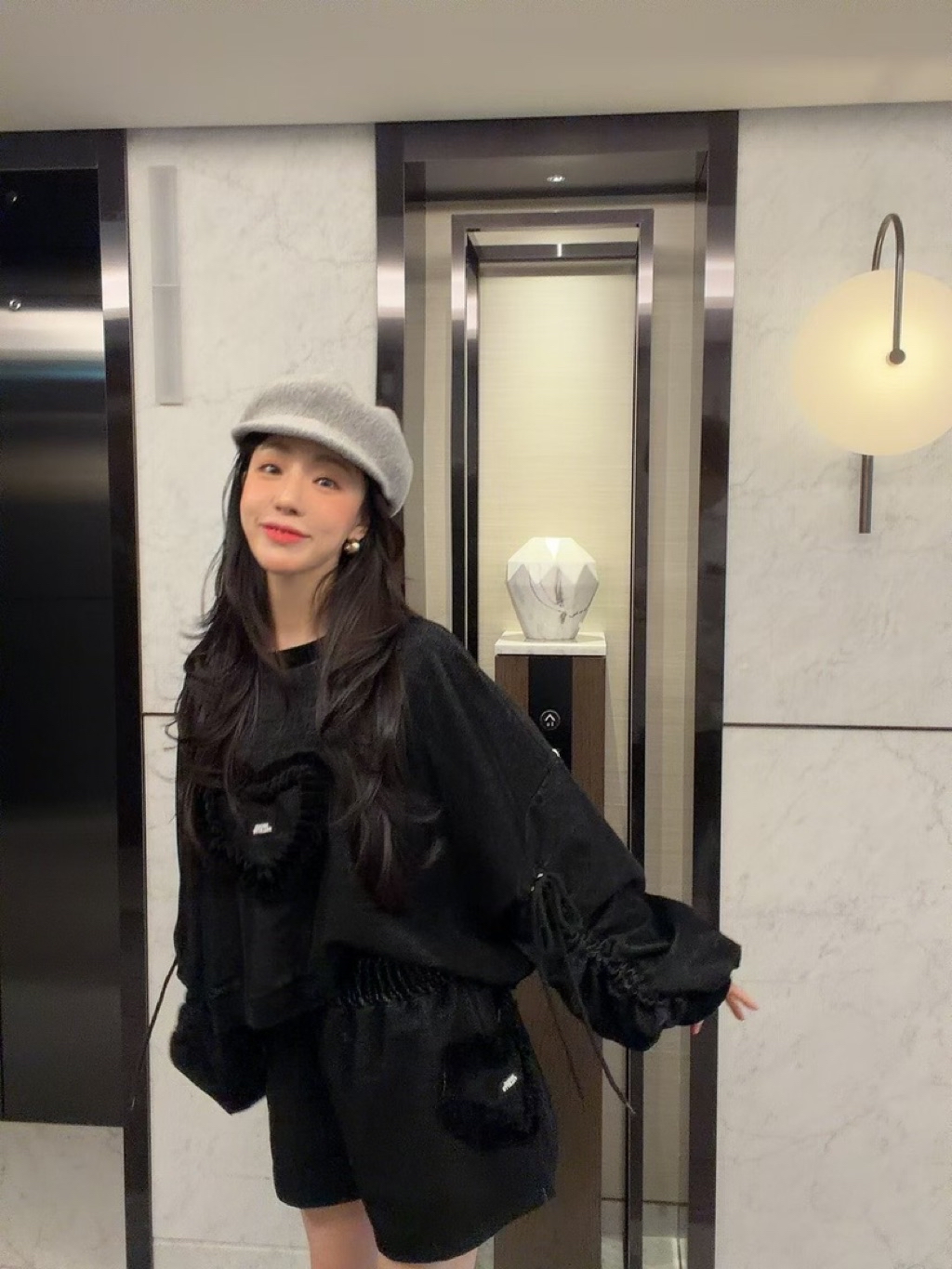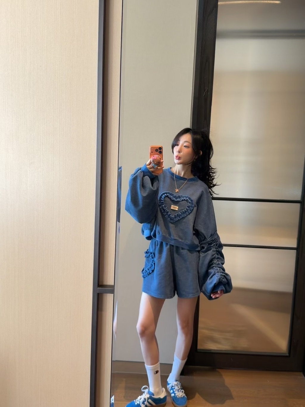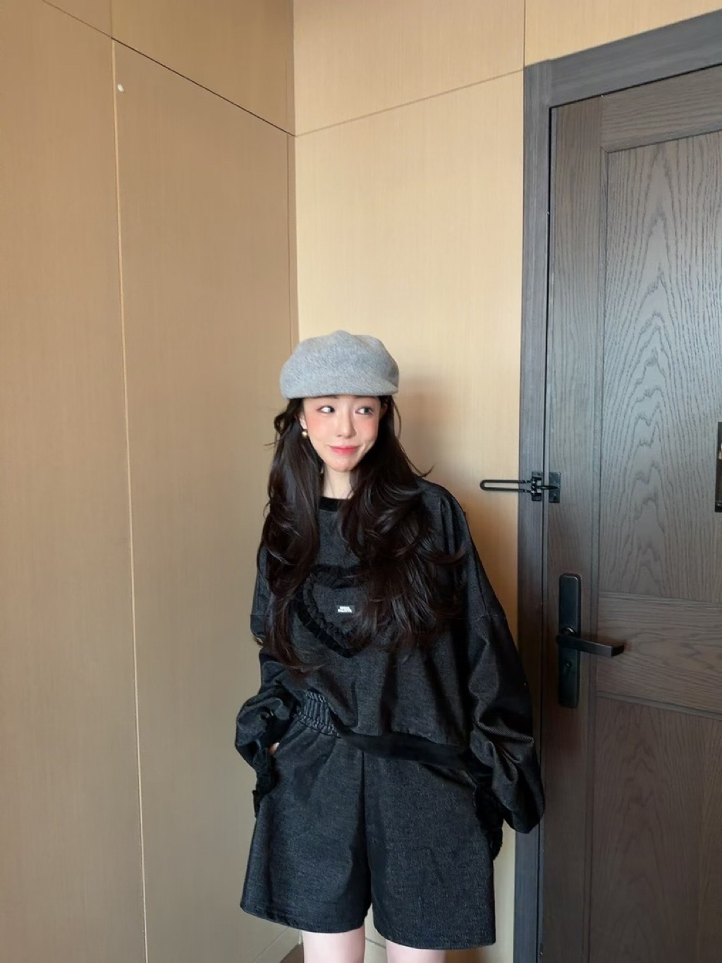 [ 7loong ] 正韓預購 太妍家 25FW秋冬 愛心燈芯絨手袖抽繩大學T+愛心燈芯絨側口袋短褲(共2色)