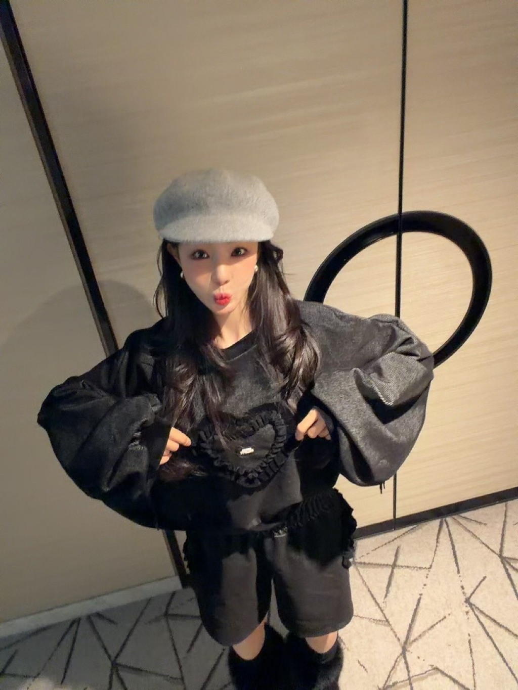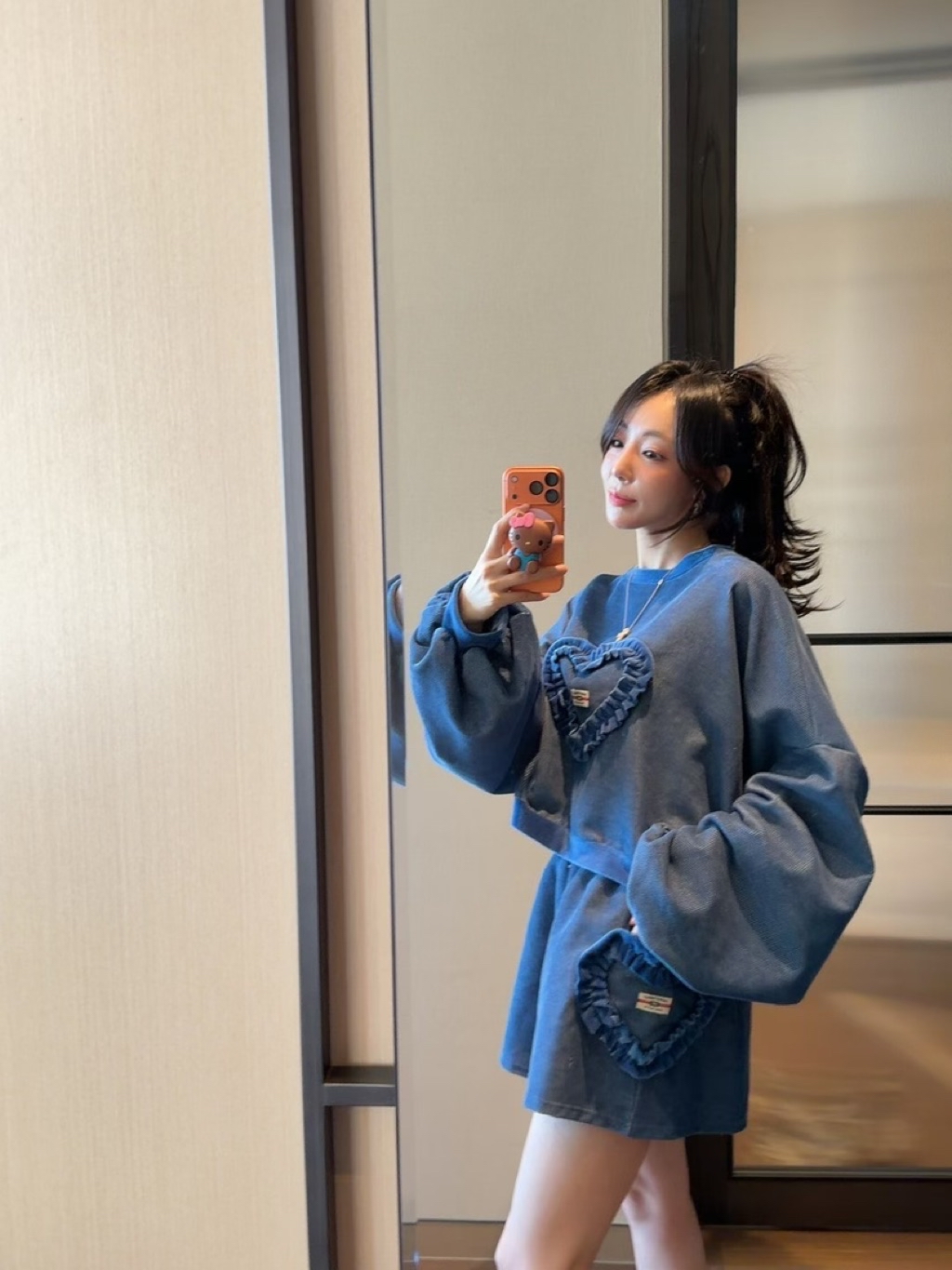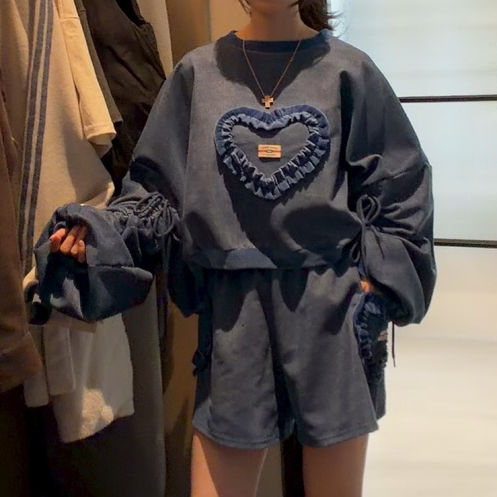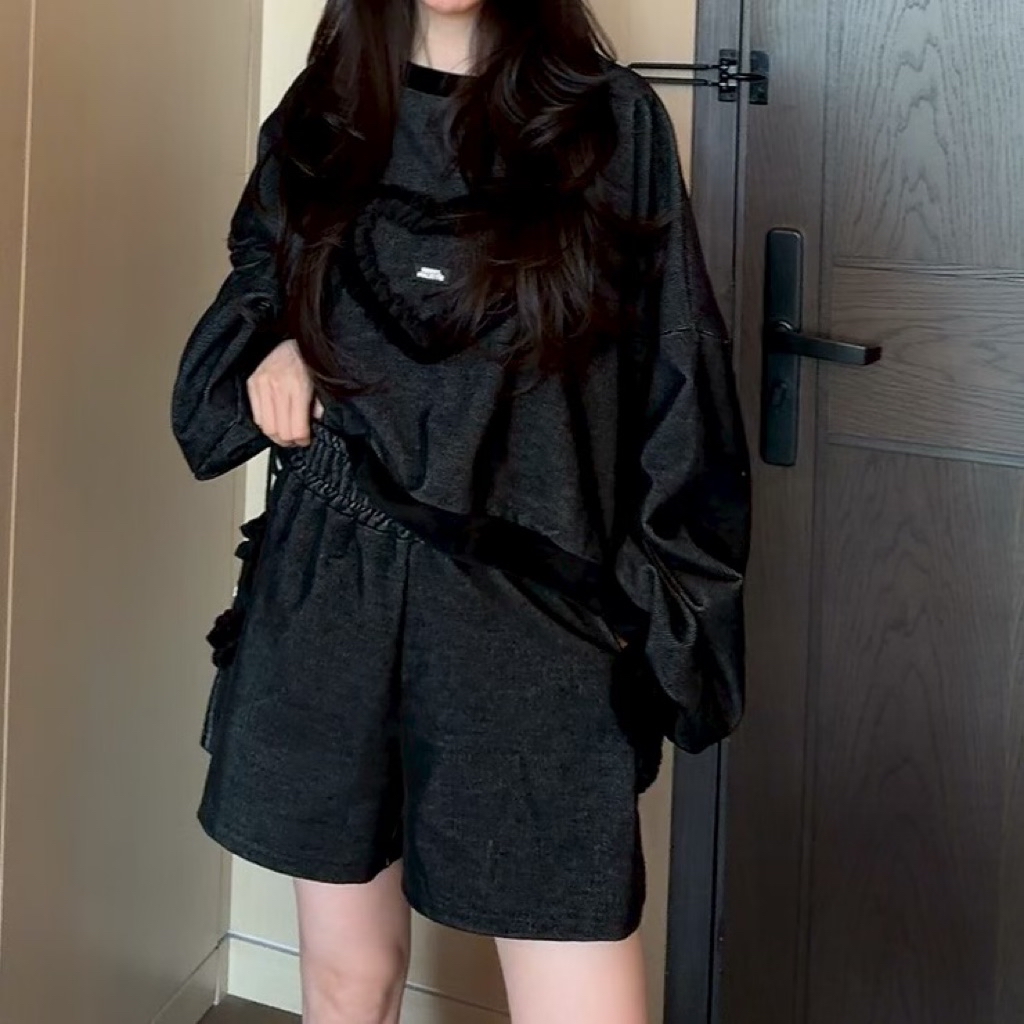 [ 7loong ] 正韓預購 太妍家 25FW秋冬 愛心燈芯絨手袖抽繩大學T+愛心燈芯絨側口袋短褲(共2色)