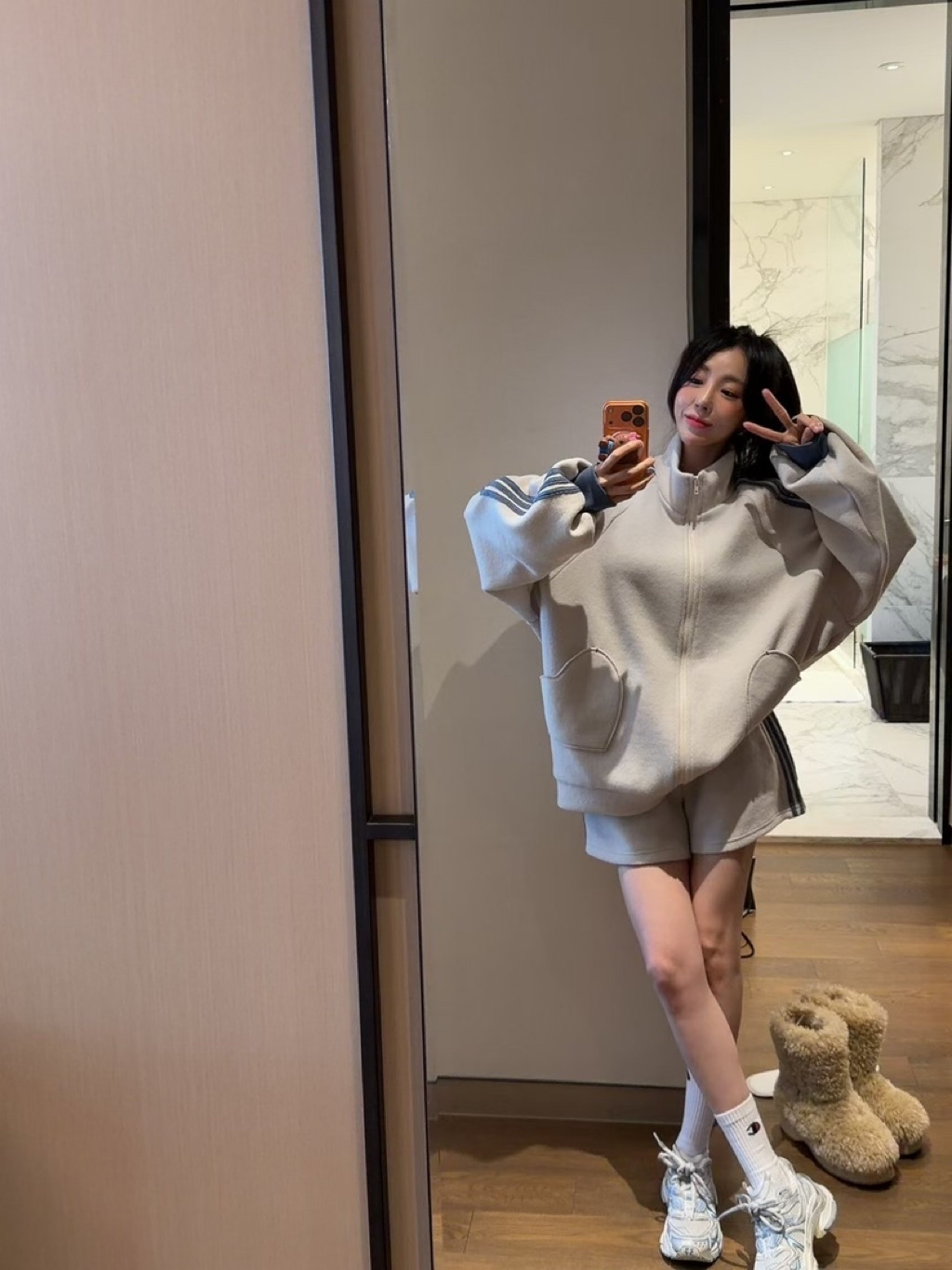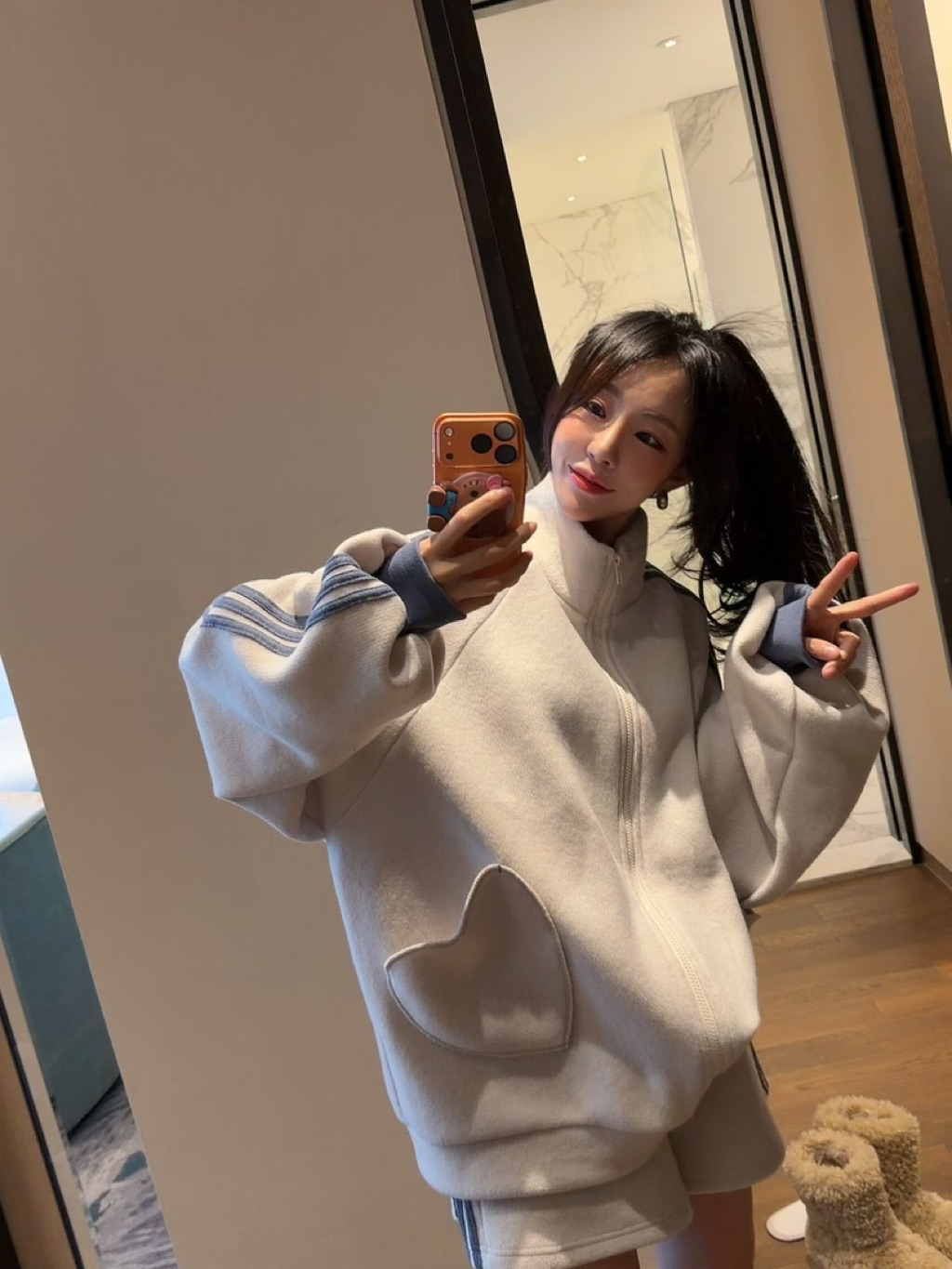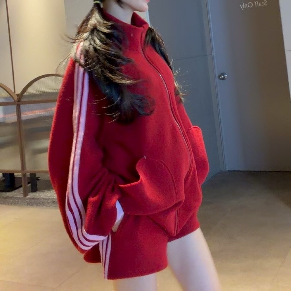 [ 7loong ] 正韓預購 太妍家 25FW秋冬 立領側邊條愛心口袋外套+側邊條短褲(共2色)