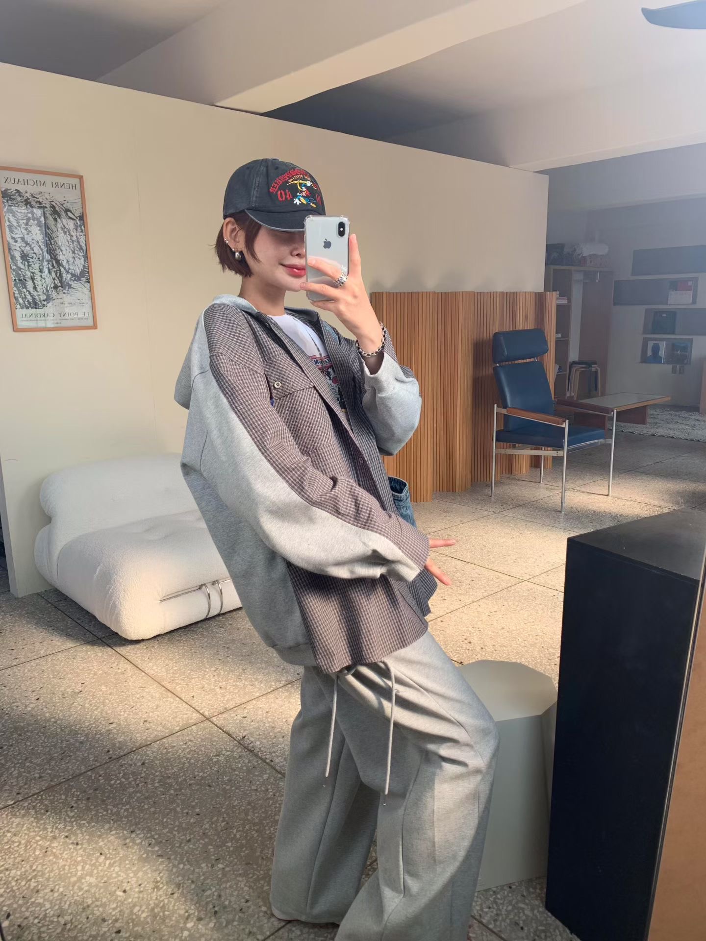 [ 7loong ] 現貨 正韓 5K雪熙 25FW秋冬 前挖空雙束繩抓皺造型連帽帽T(灰色)