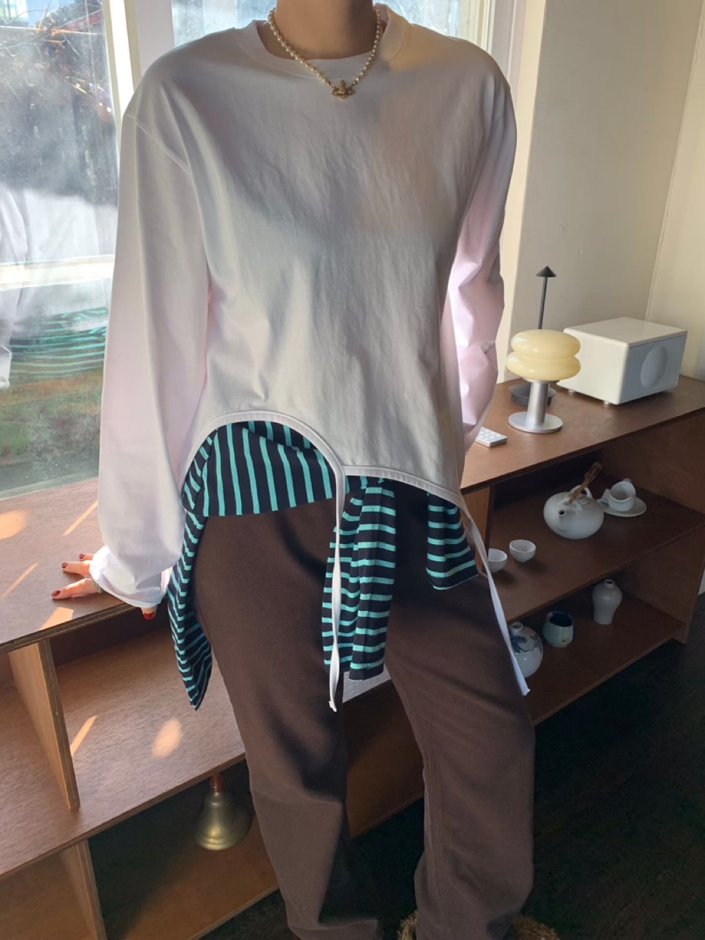 [ 7loong ] 正韓預購 5K雪熙 25FW秋冬 兩條垂墜斜下擺素色上衣(共3色)