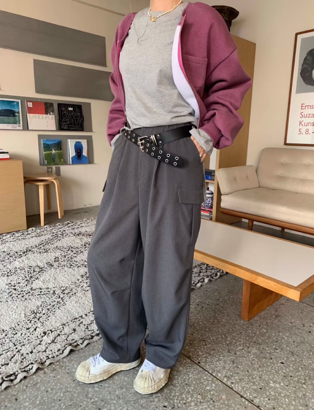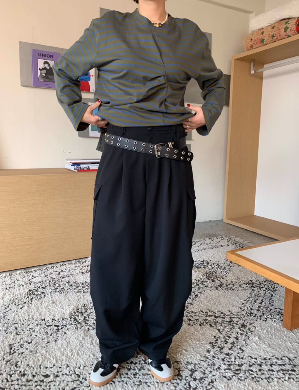 [ 7loong ] 正韓預購 5K雪熙 25FW秋冬 微彈性側翻蓋大口袋打褶西裝褲(共2色) 總分: 0 - 0 評價