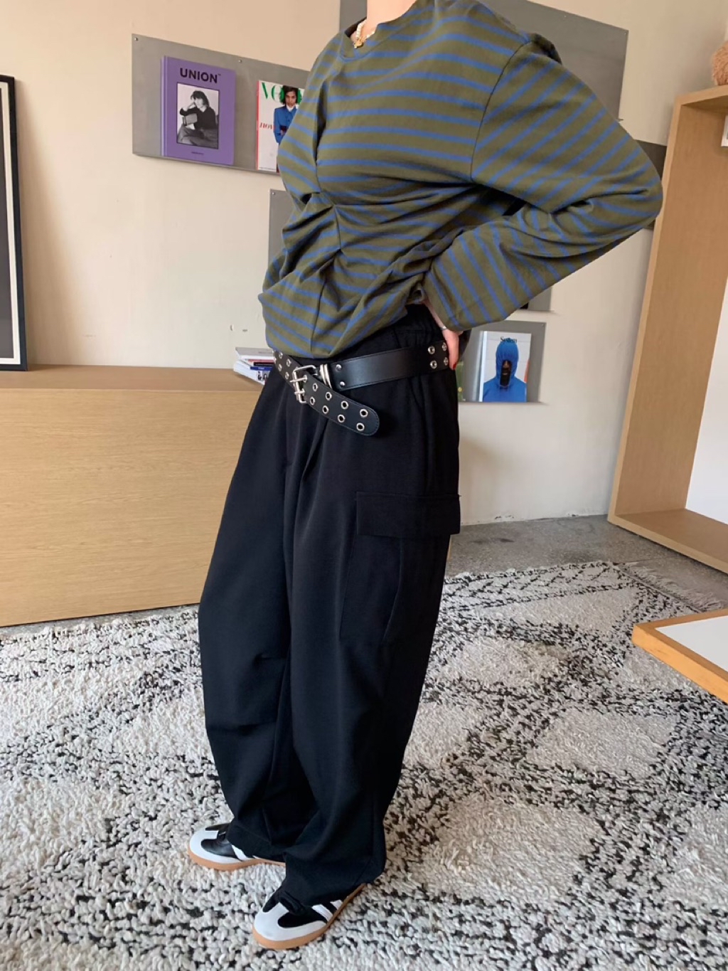 [ 7loong ] 正韓預購 5K雪熙 25FW秋冬 微彈性側翻蓋大口袋打褶西裝褲(共2色)