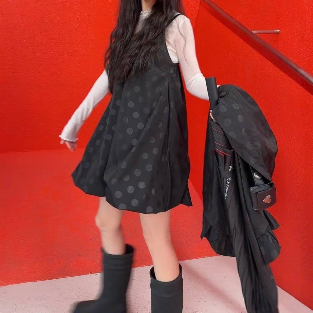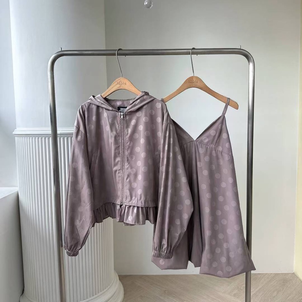 [ 7loong ] 正韓預購 太妍家 25FW秋冬 圓點小荷葉邊下擺短風衣外套+細肩帶v領雲朵澎澎下擺洋裝(共2色)