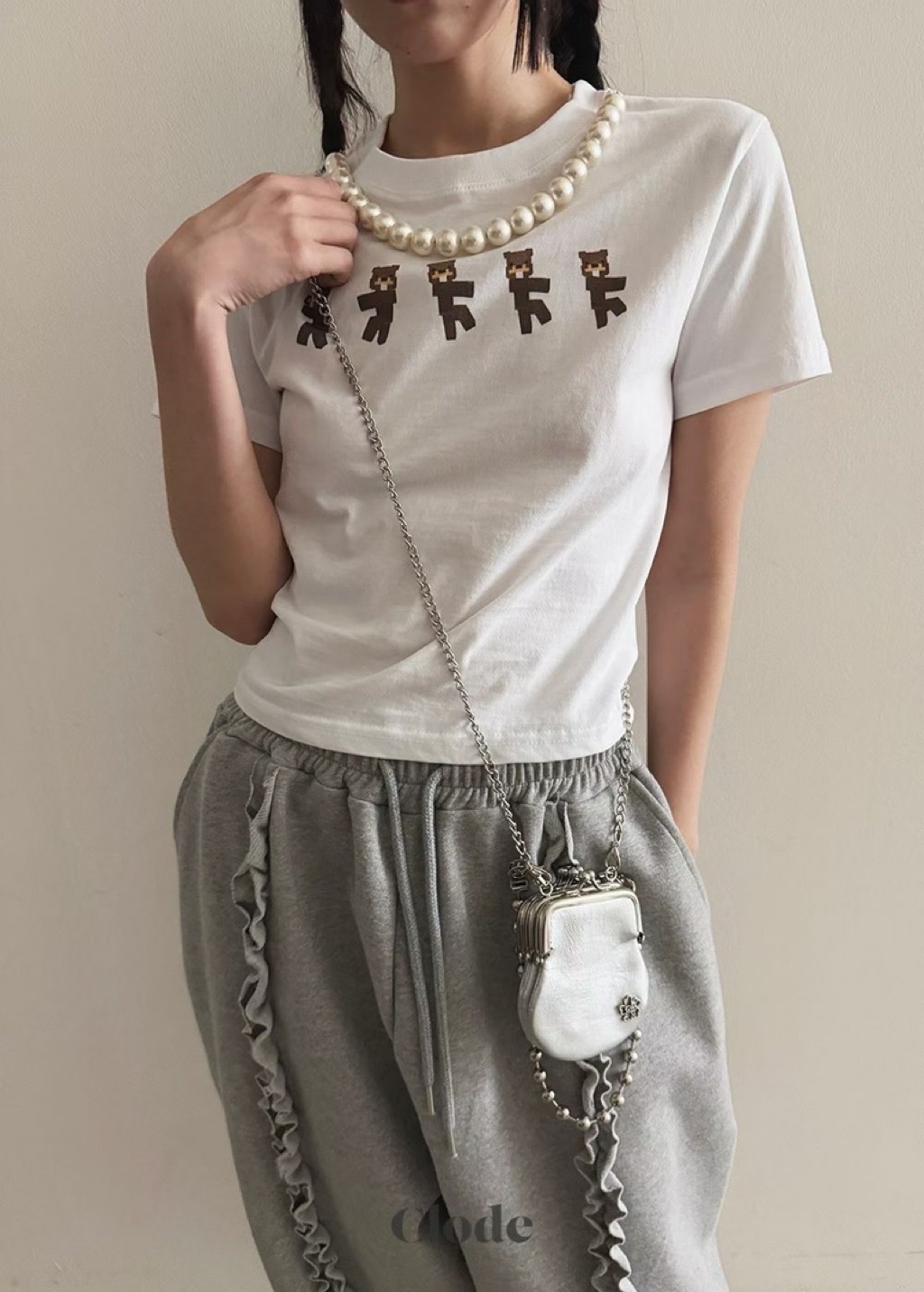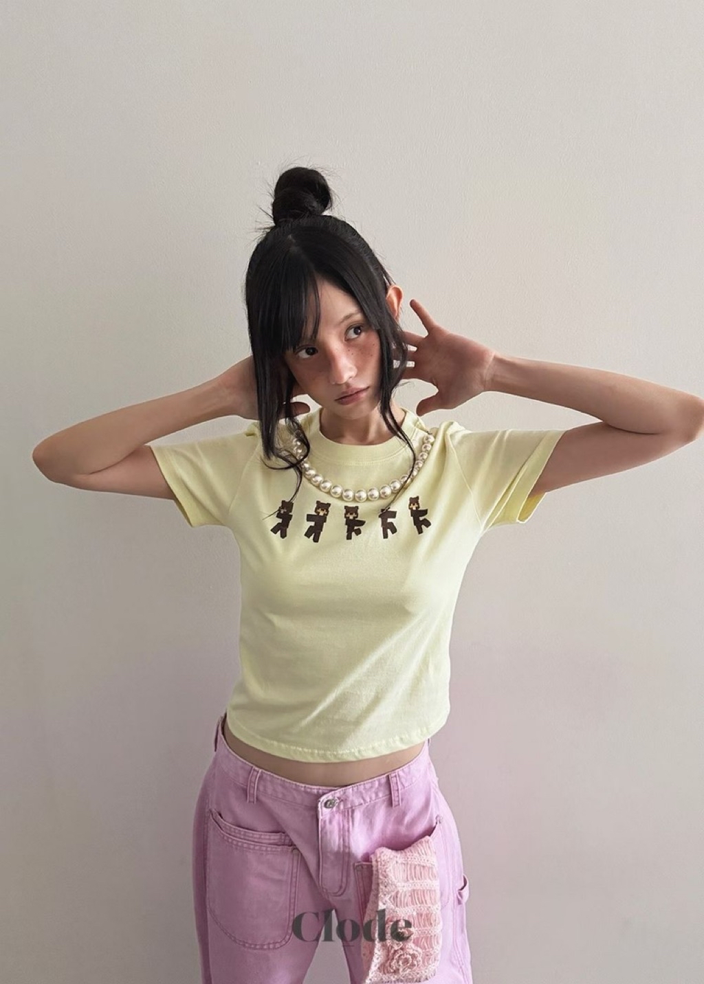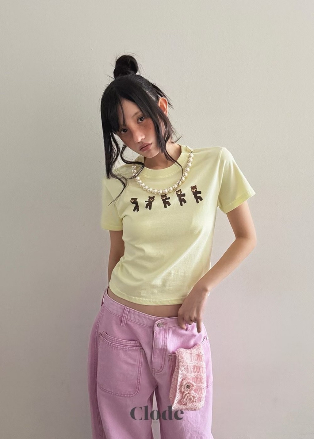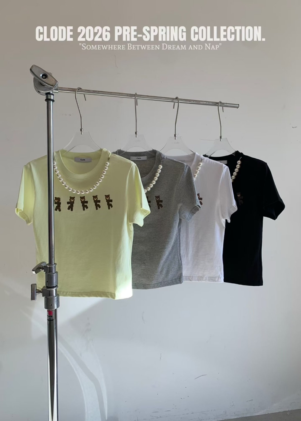 [ 7loong ] 正韓預購 Clode 26SS早春 珍珠串鏈造型熊熊圖案T恤(共4色)