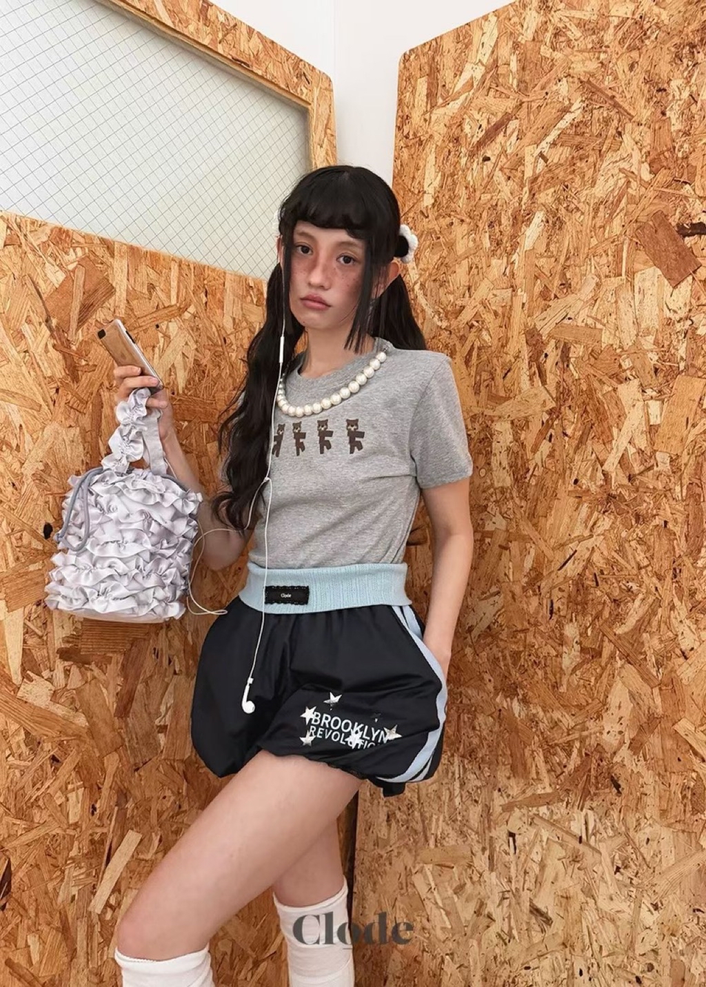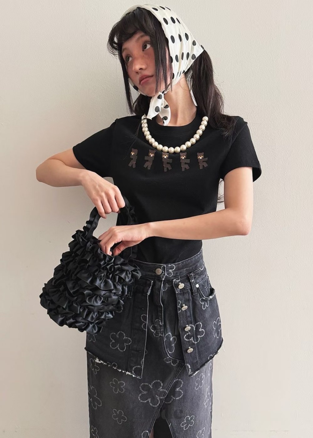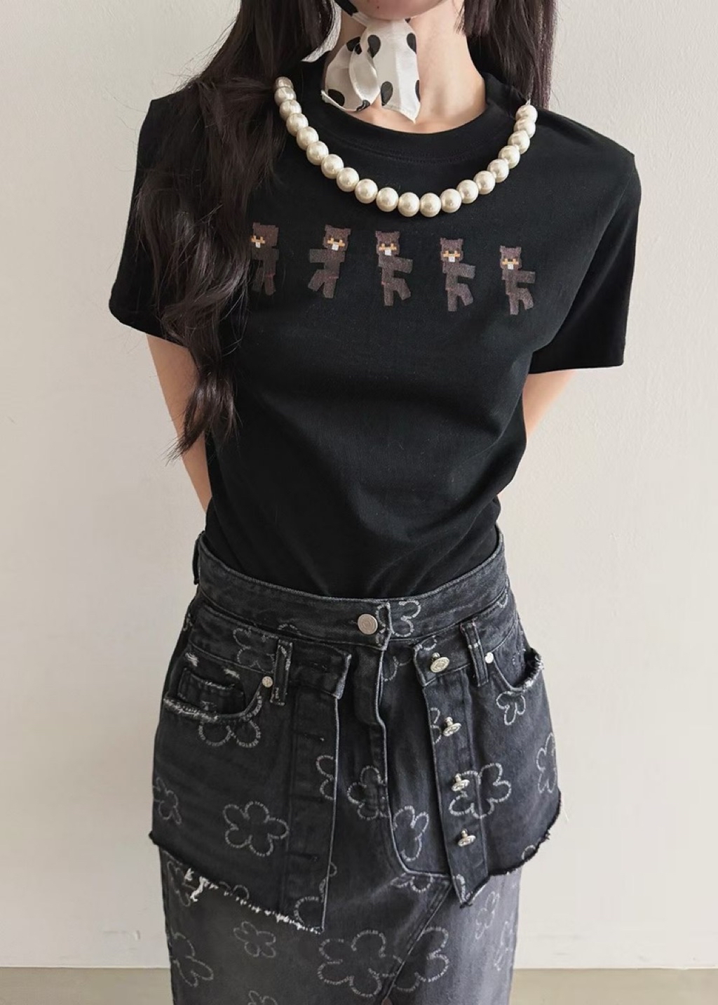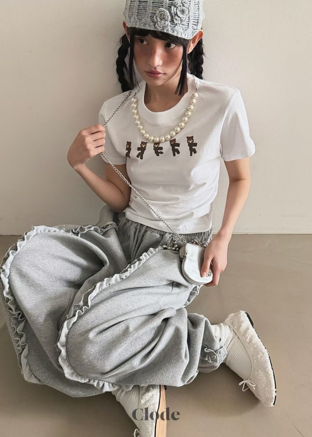 [ 7loong ] 正韓預購 Clode 26SS早春 珍珠串鏈造型熊熊圖案T恤(共4色)