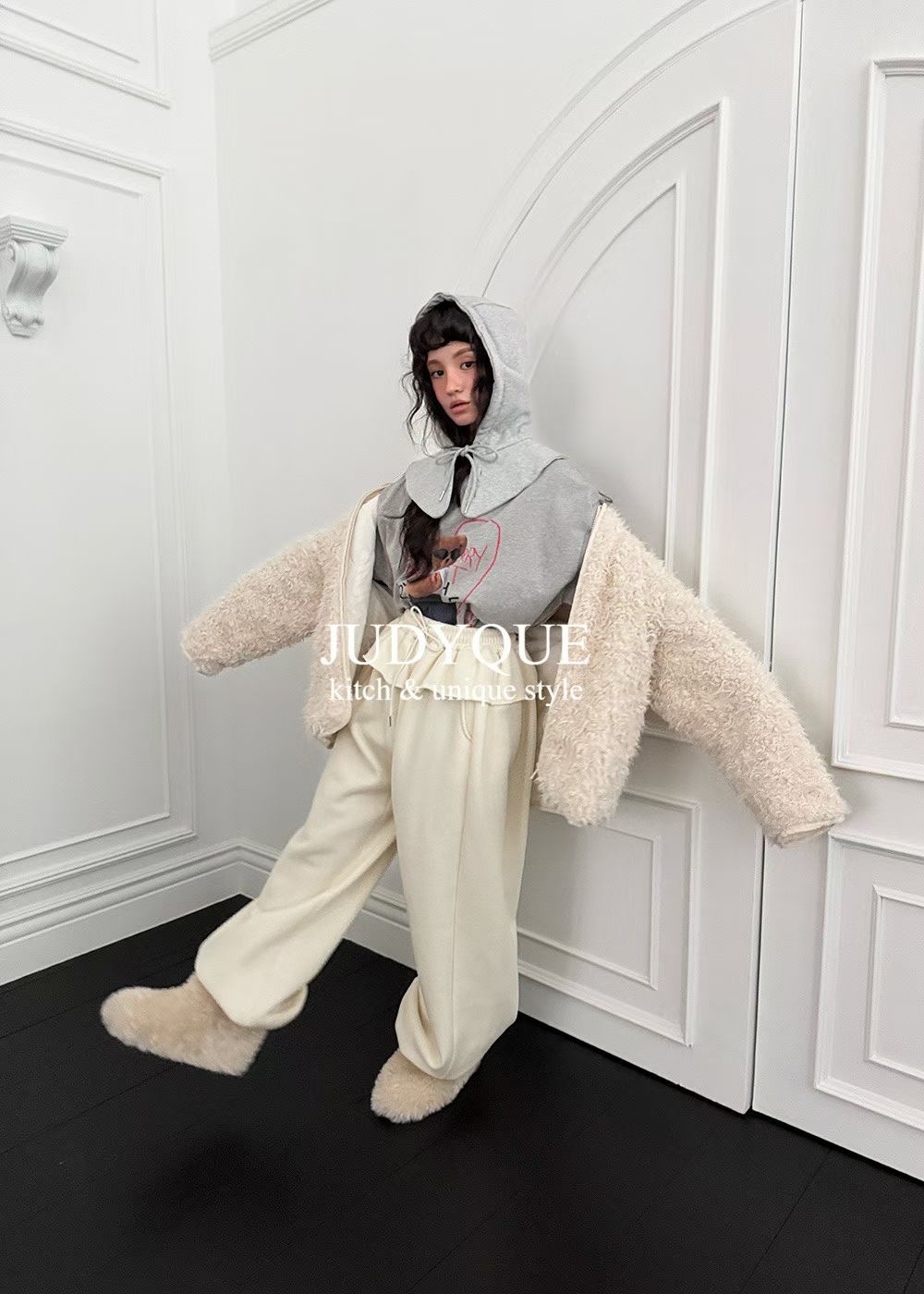 [ 7loong ] 正韓預購 Judyque 25FW秋冬 白色蝴蝶結內刷毛連帽外套(共3色)