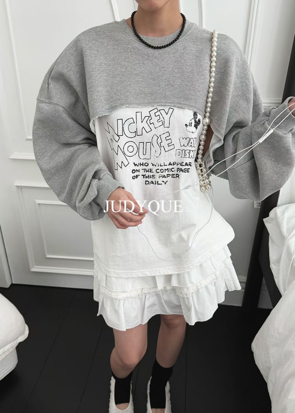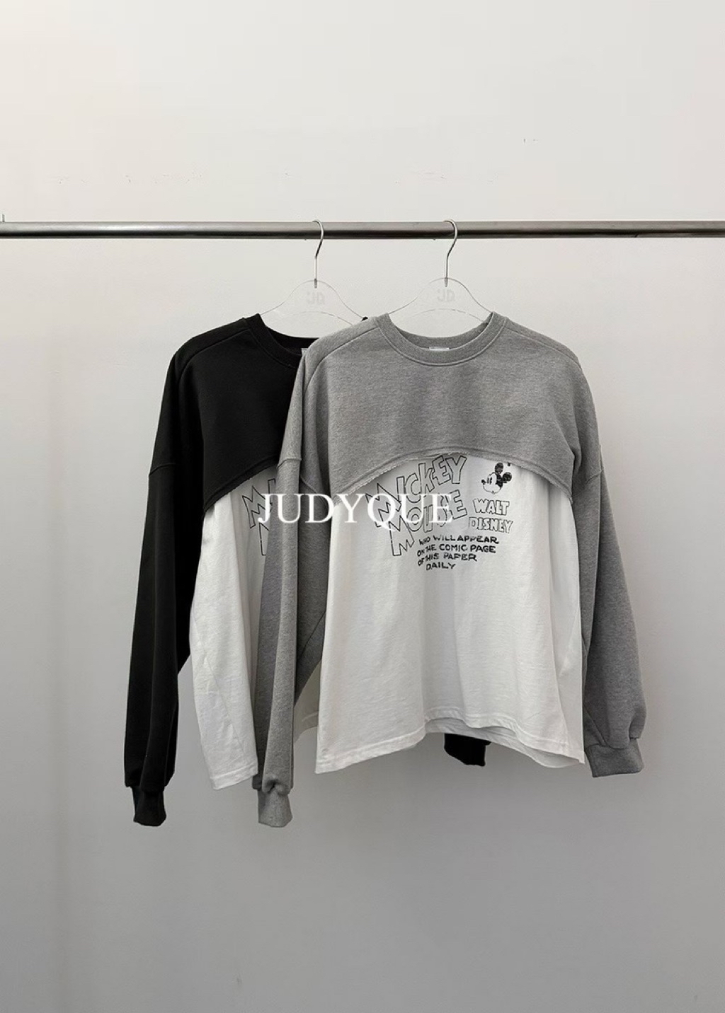 [ 7loong ] 正韓預購 Judyque 26SS春夏 迪士尼聯名假兩件上下拼接大學T(共2色)