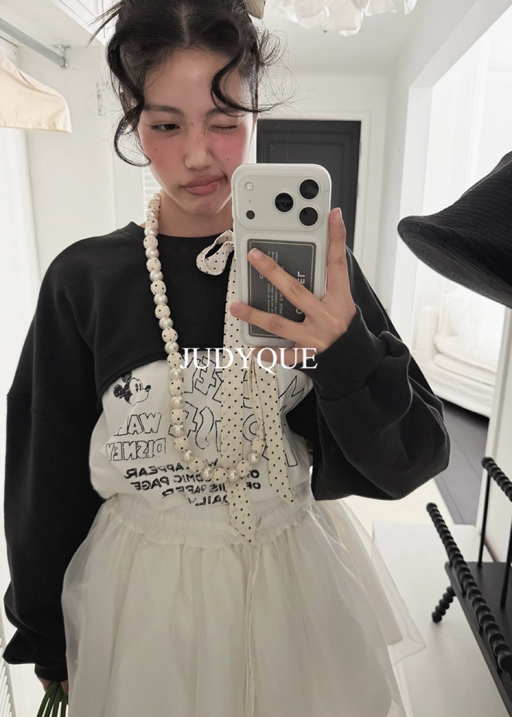 [ 7loong ] 正韓預購 Judyque 26SS春夏 迪士尼聯名假兩件上下拼接大學T(共2色) 總分: 0 - 0 評價