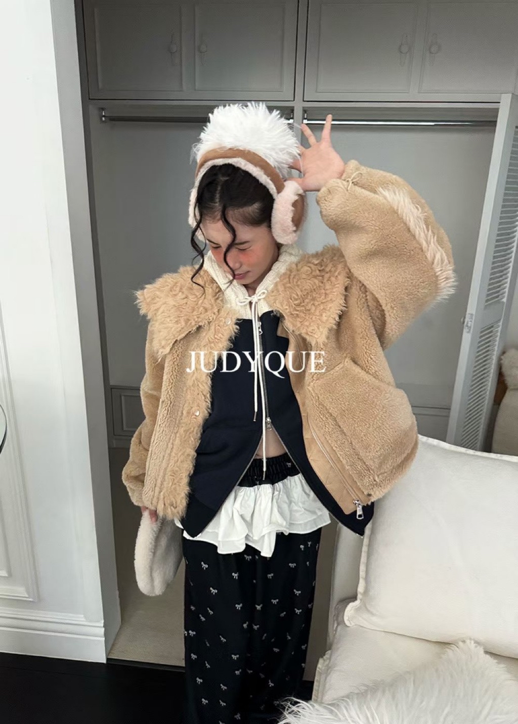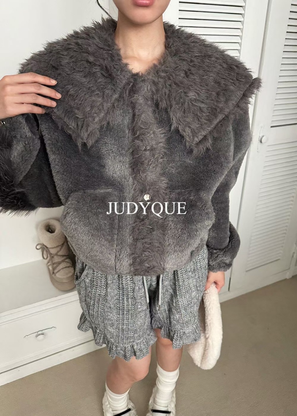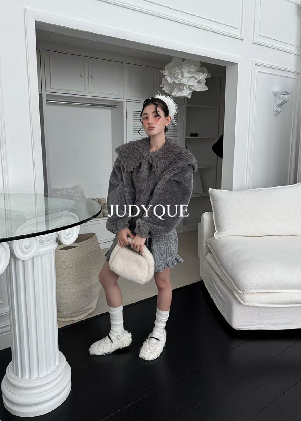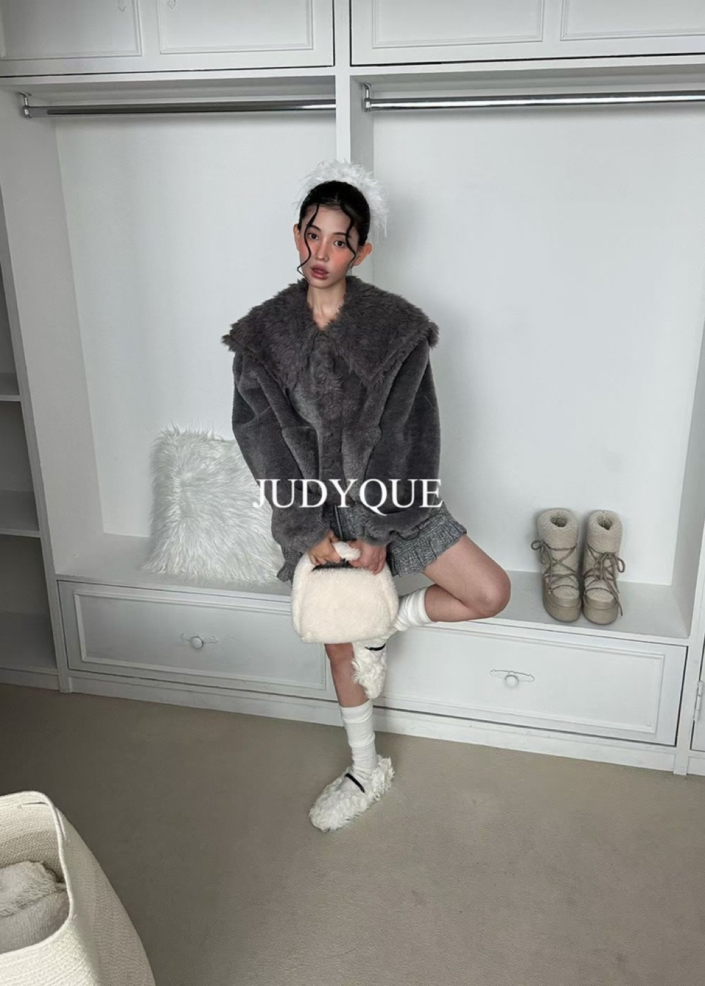 [ 7loong ] 正韓預購 Judyque 25FW秋冬 質感毛毛大翻領造型外套(共2色)
