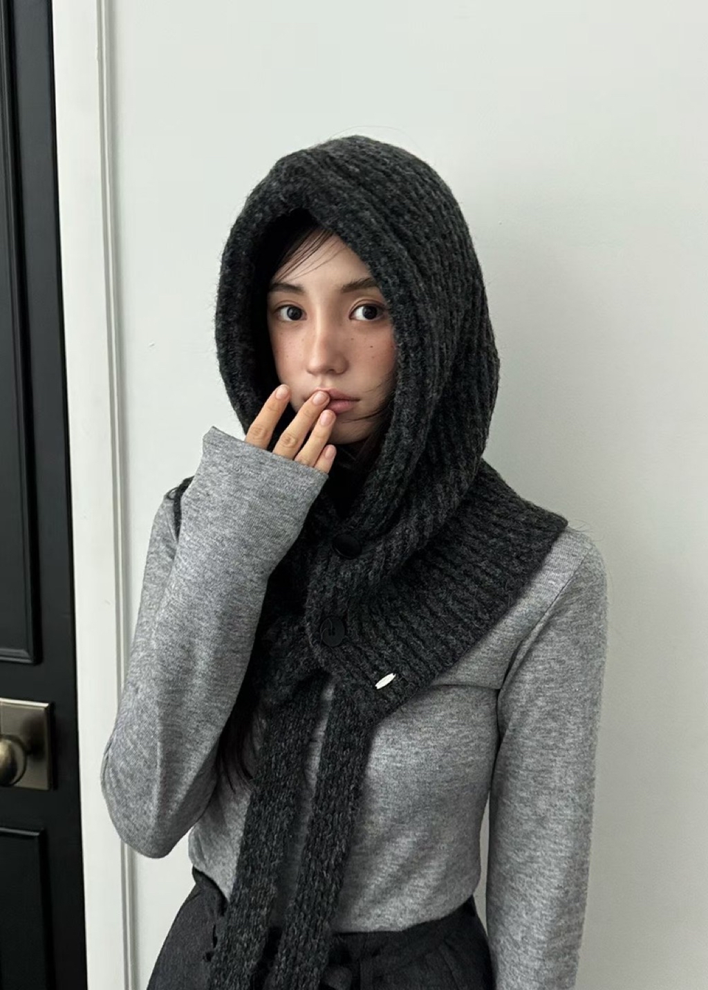 [ 7loong ] 正韓預購 Yunbal 25FW秋冬 3合1毛線針織保暖脖圍連帽披肩(共2色)