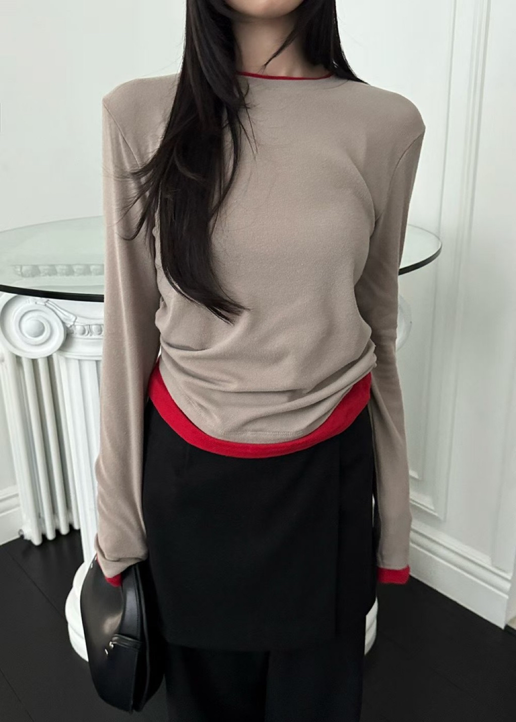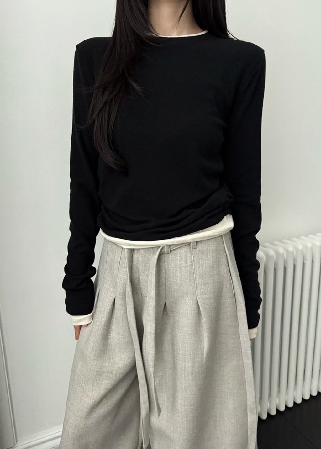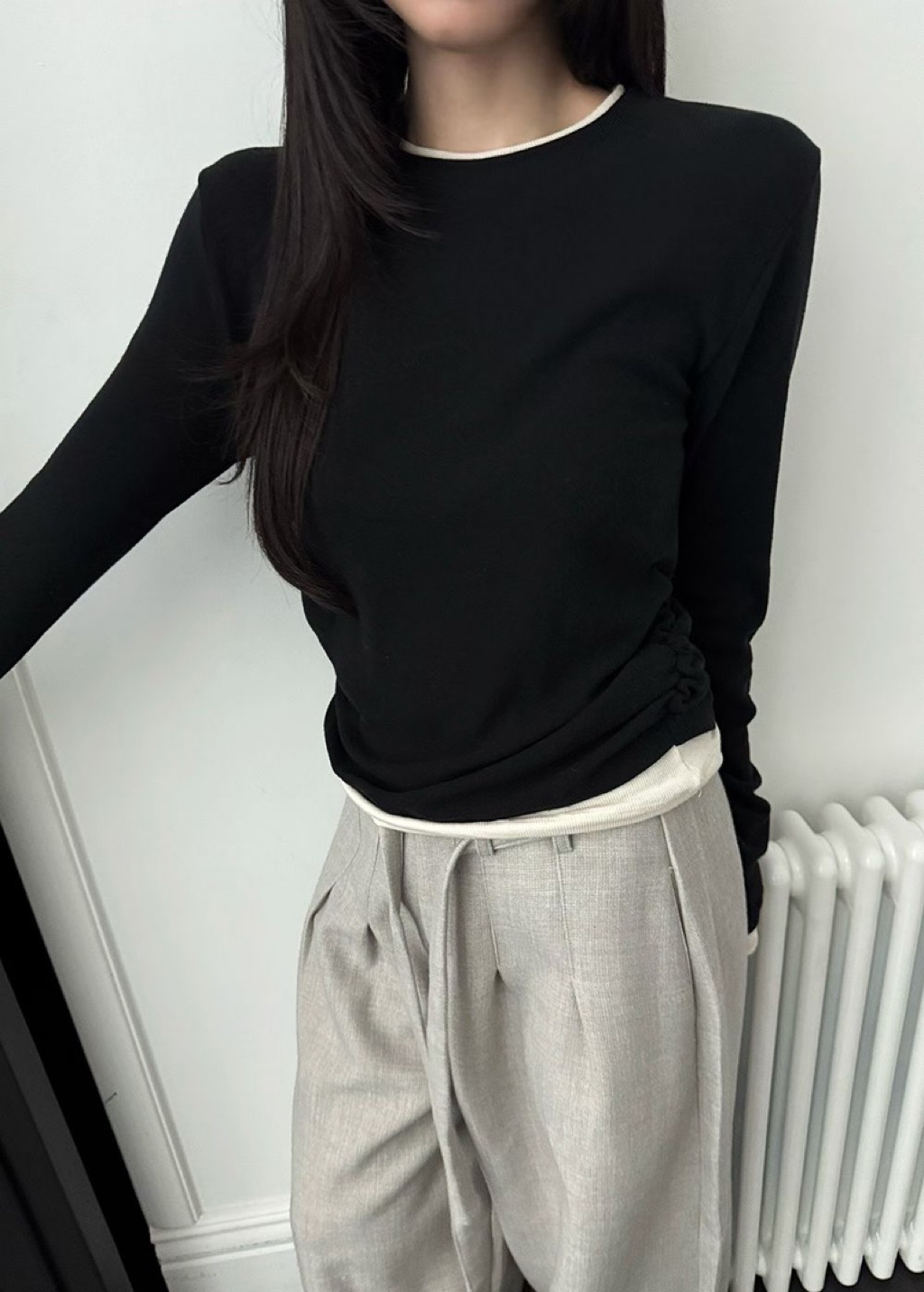 [ 7loong ] 正韓預購 Yunbal 25FW秋冬 假兩件層次撞色側抓褶百搭上衣(共4色)