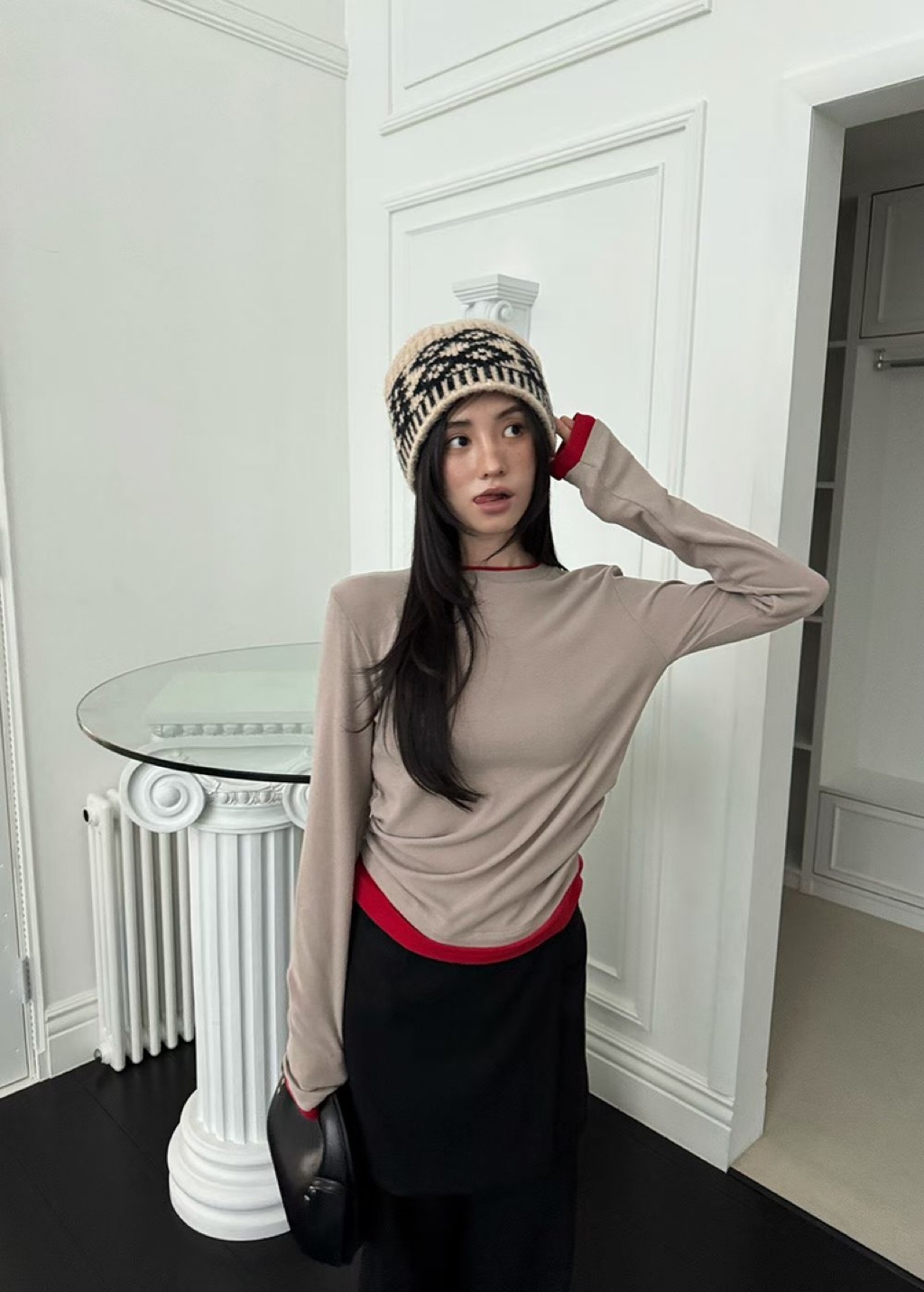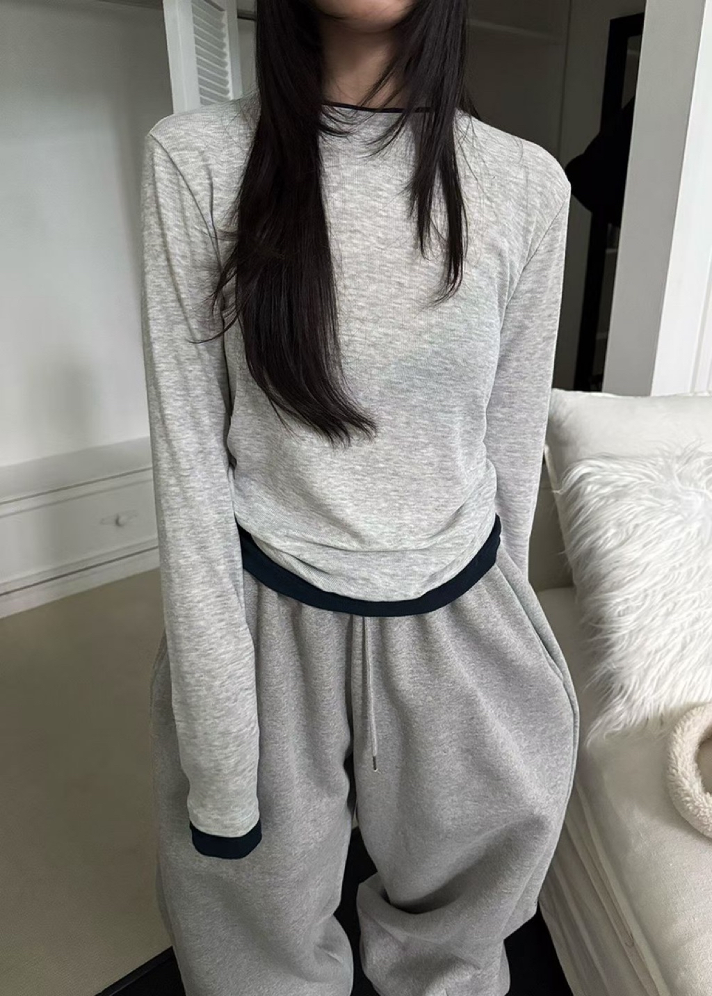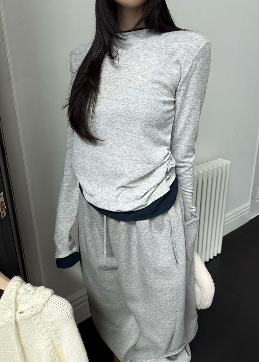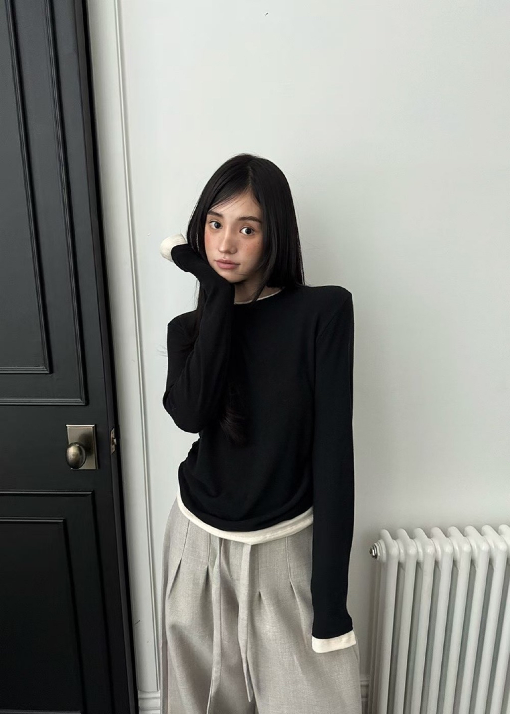 [ 7loong ] 正韓預購 Yunbal 25FW秋冬 假兩件層次撞色側抓褶百搭上衣(共4色)