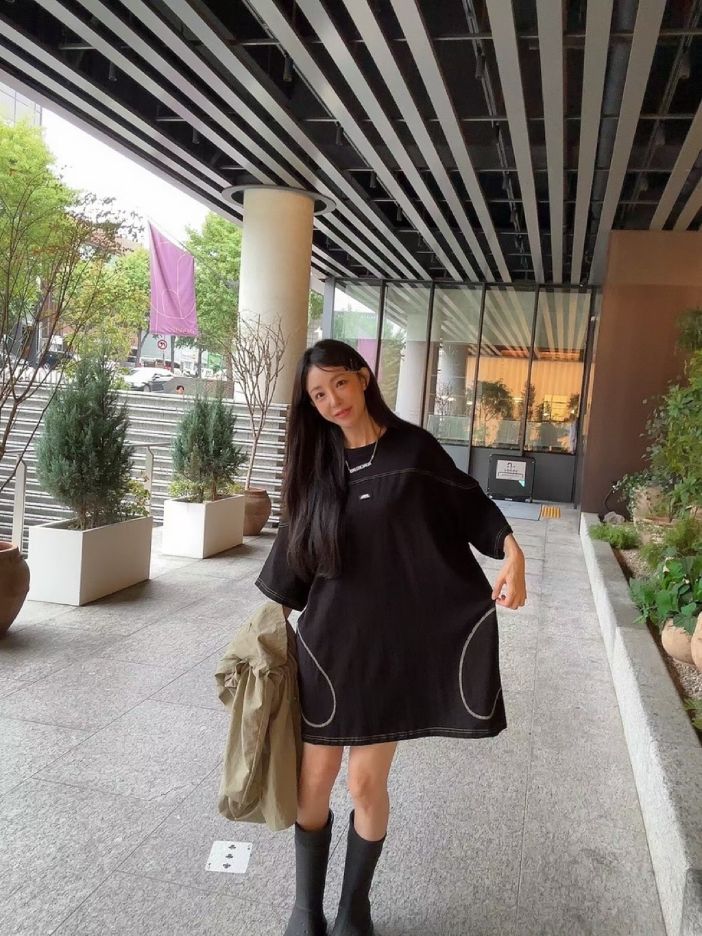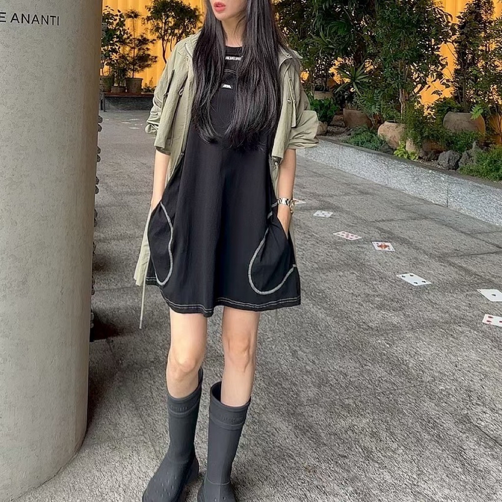 [ 7loong ] 正韓預購 太妍家 25FW秋冬 顛倒愛心車縫口袋連身長版上衣(共2色)