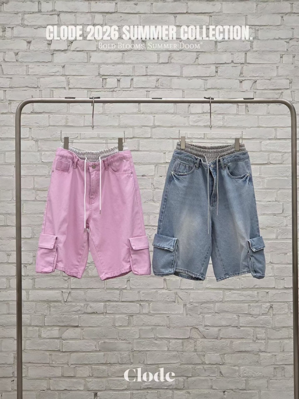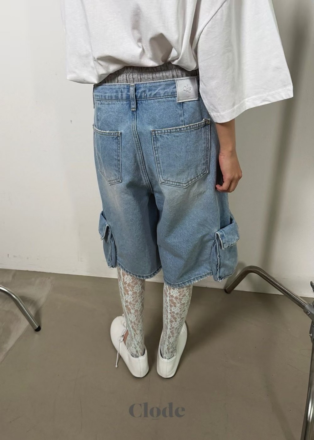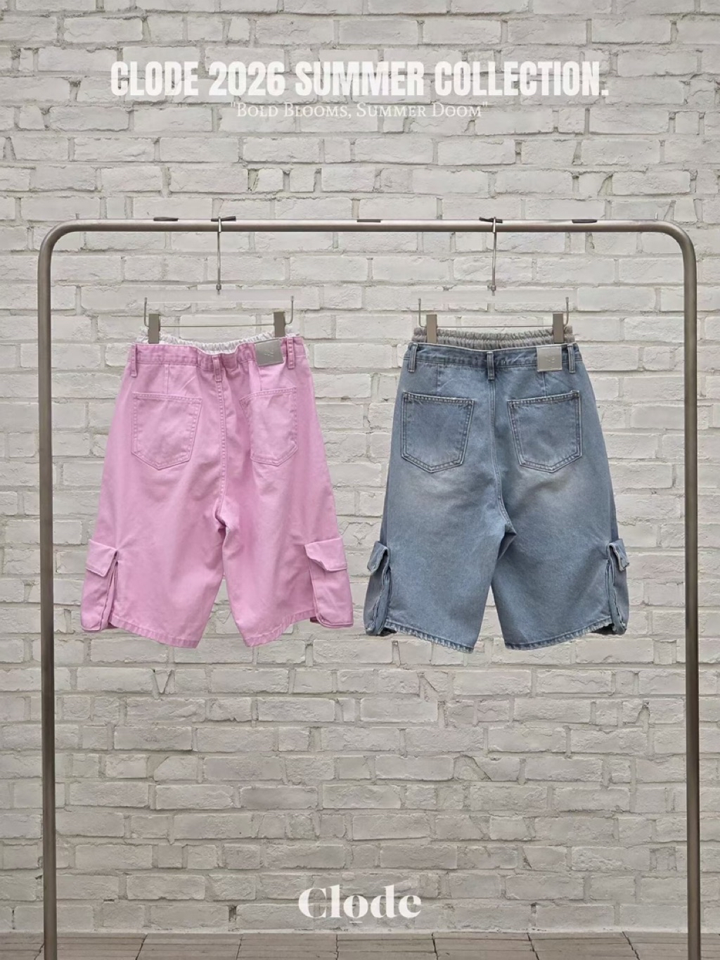 [ 7loong ] 正韓預購 Clode 26SS春夏 腰布拼接側大口袋牛仔及膝短褲(共2色/SM)