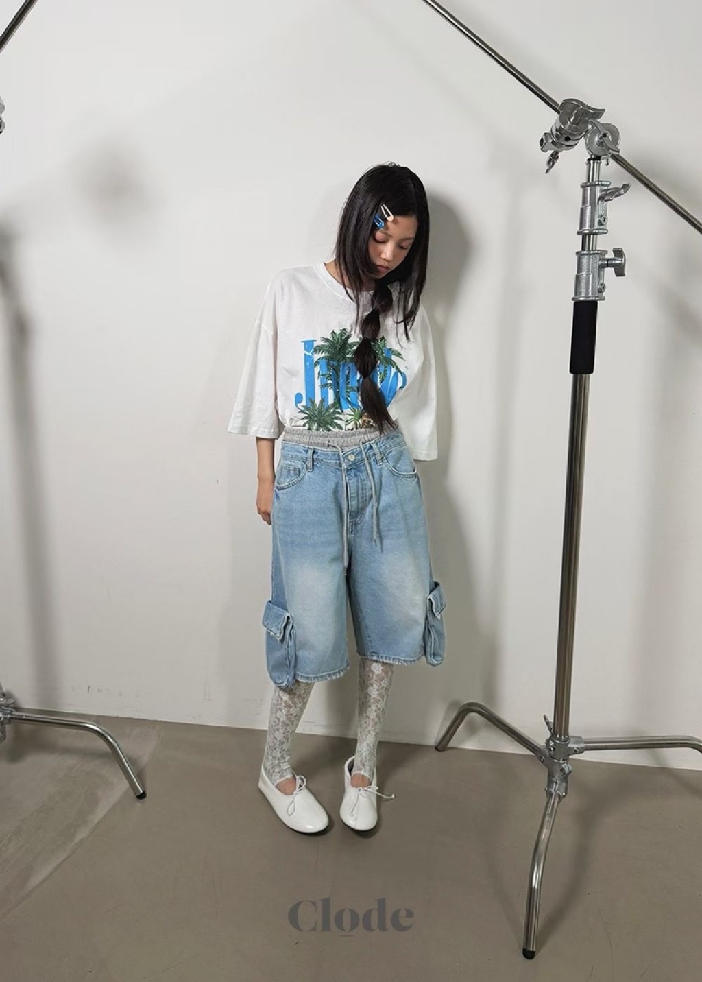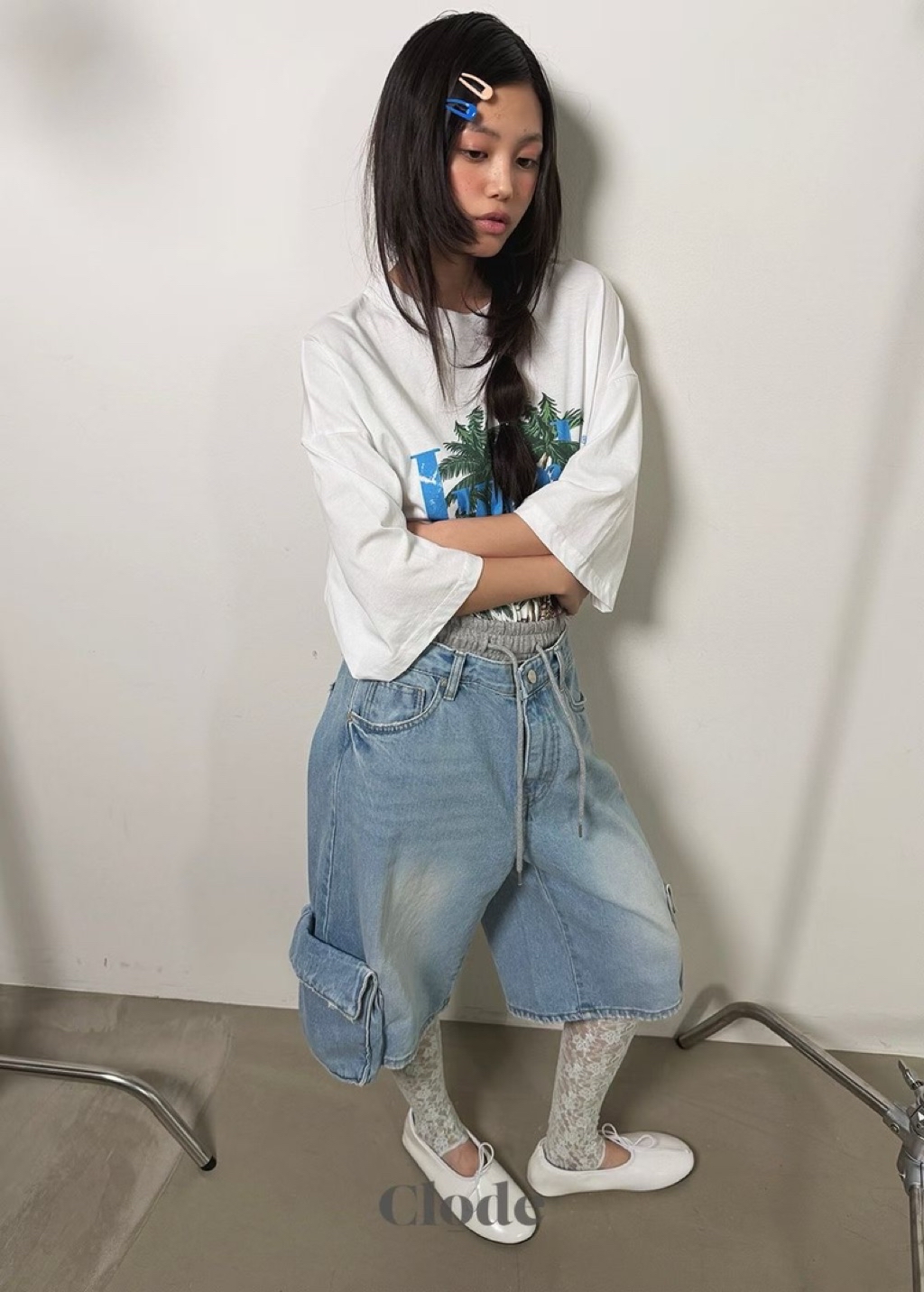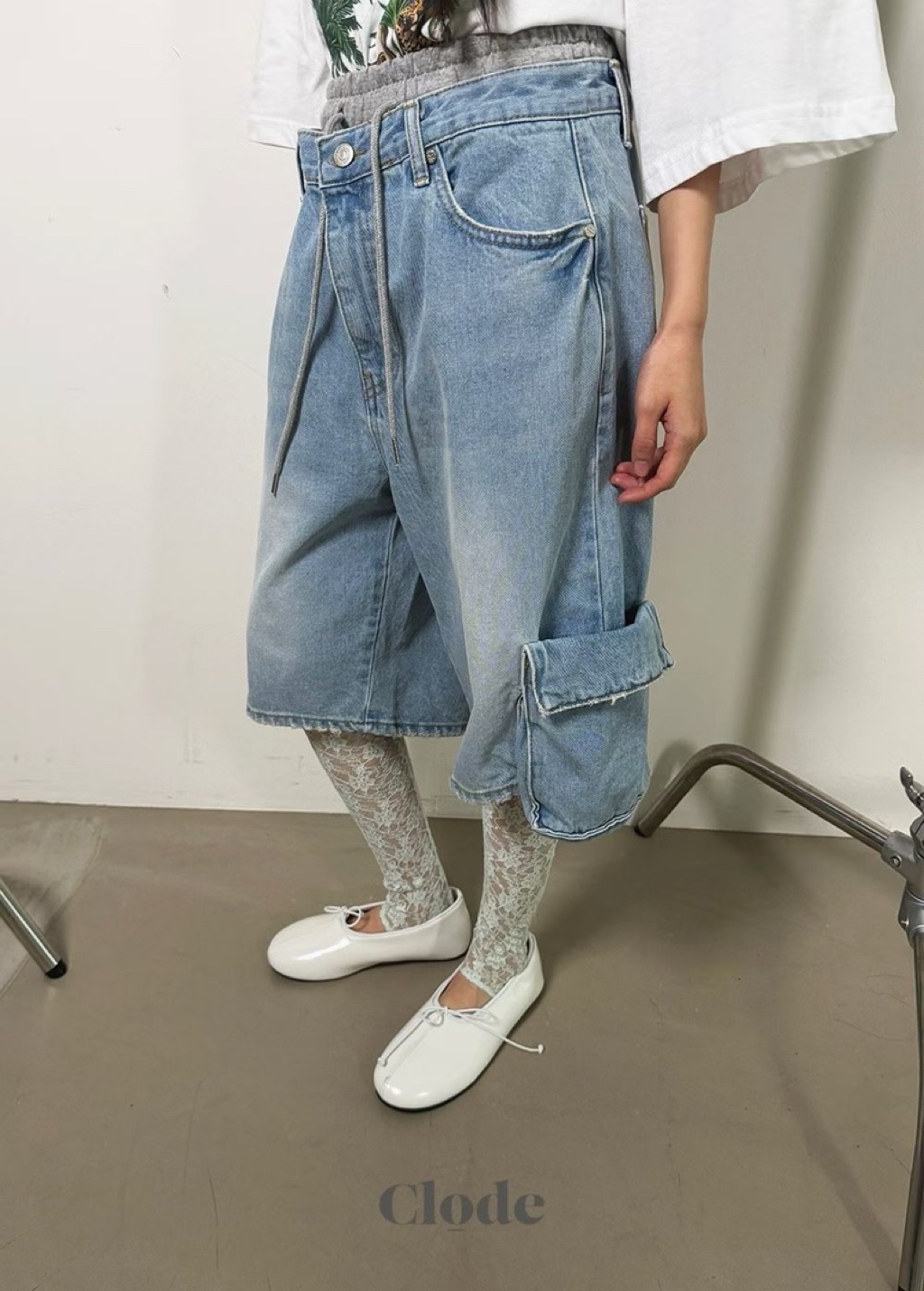 [ 7loong ] 正韓預購 Clode 26SS春夏 腰布拼接側大口袋牛仔及膝短褲(共2色/SM)