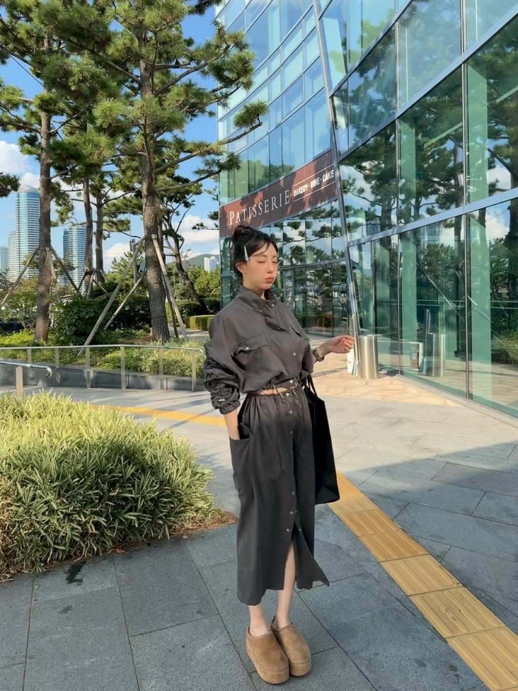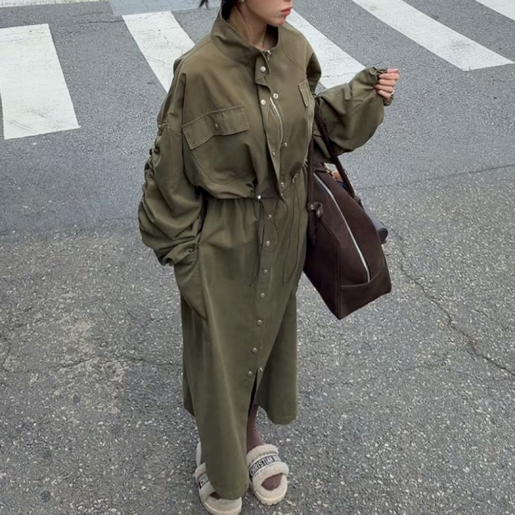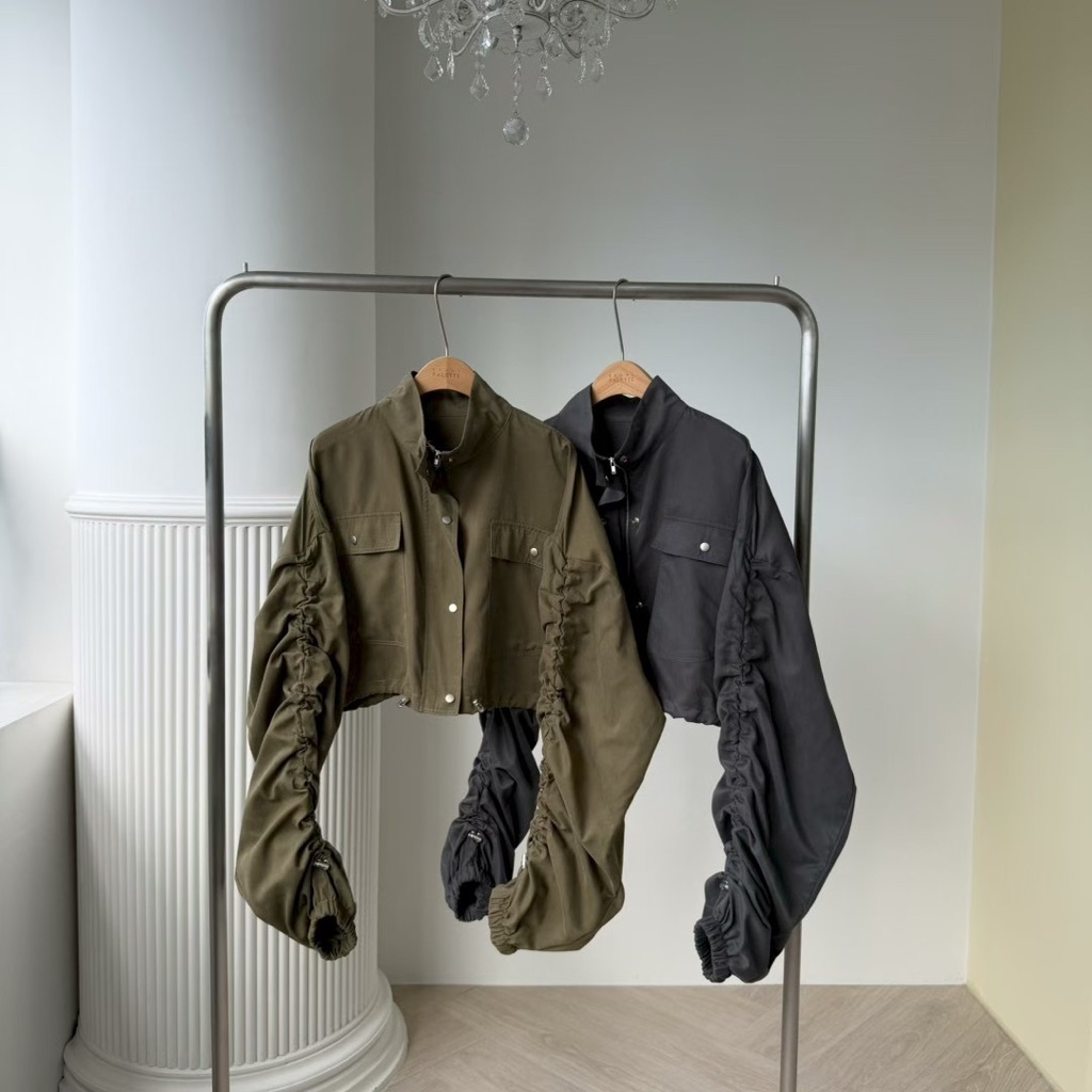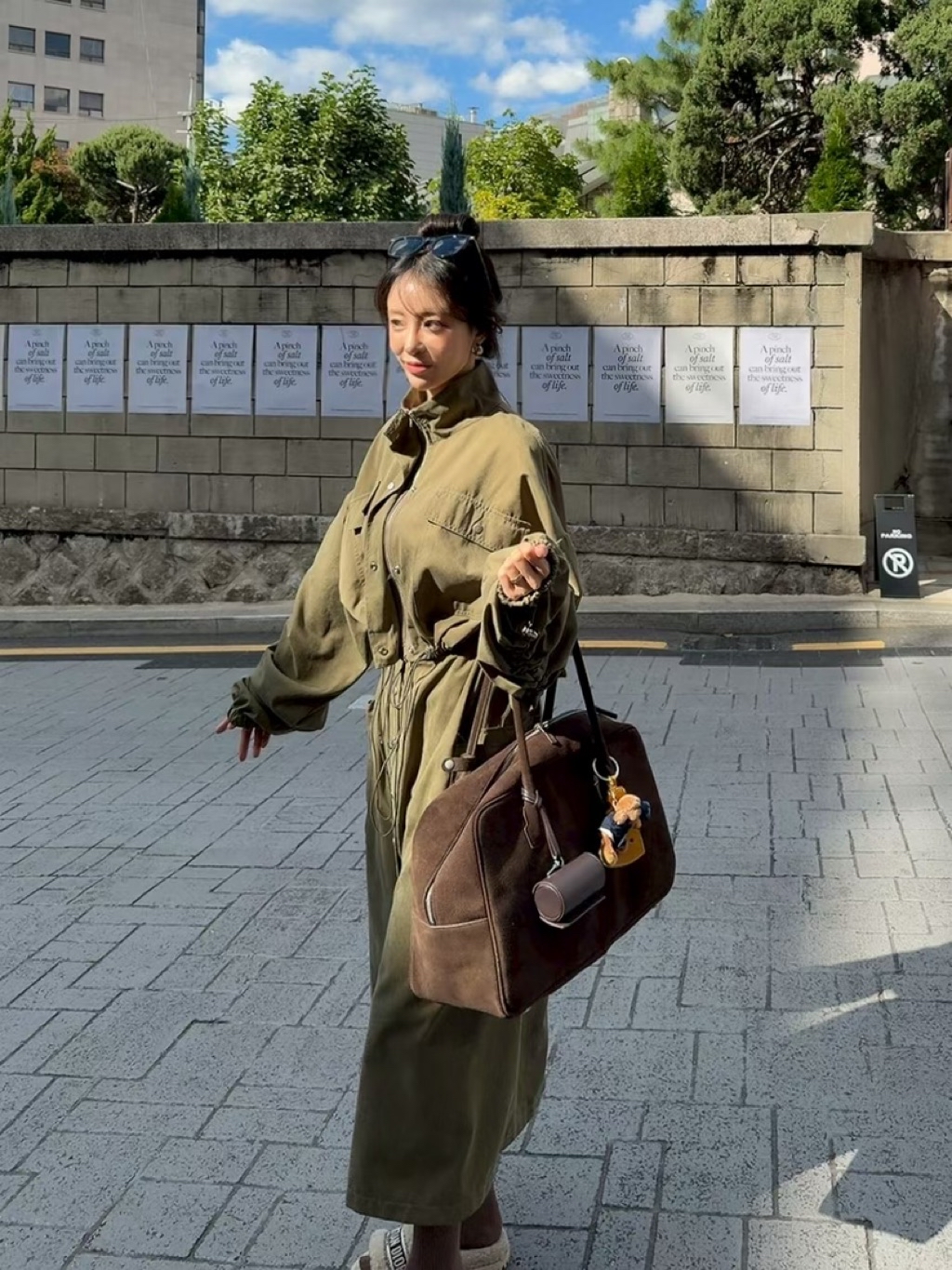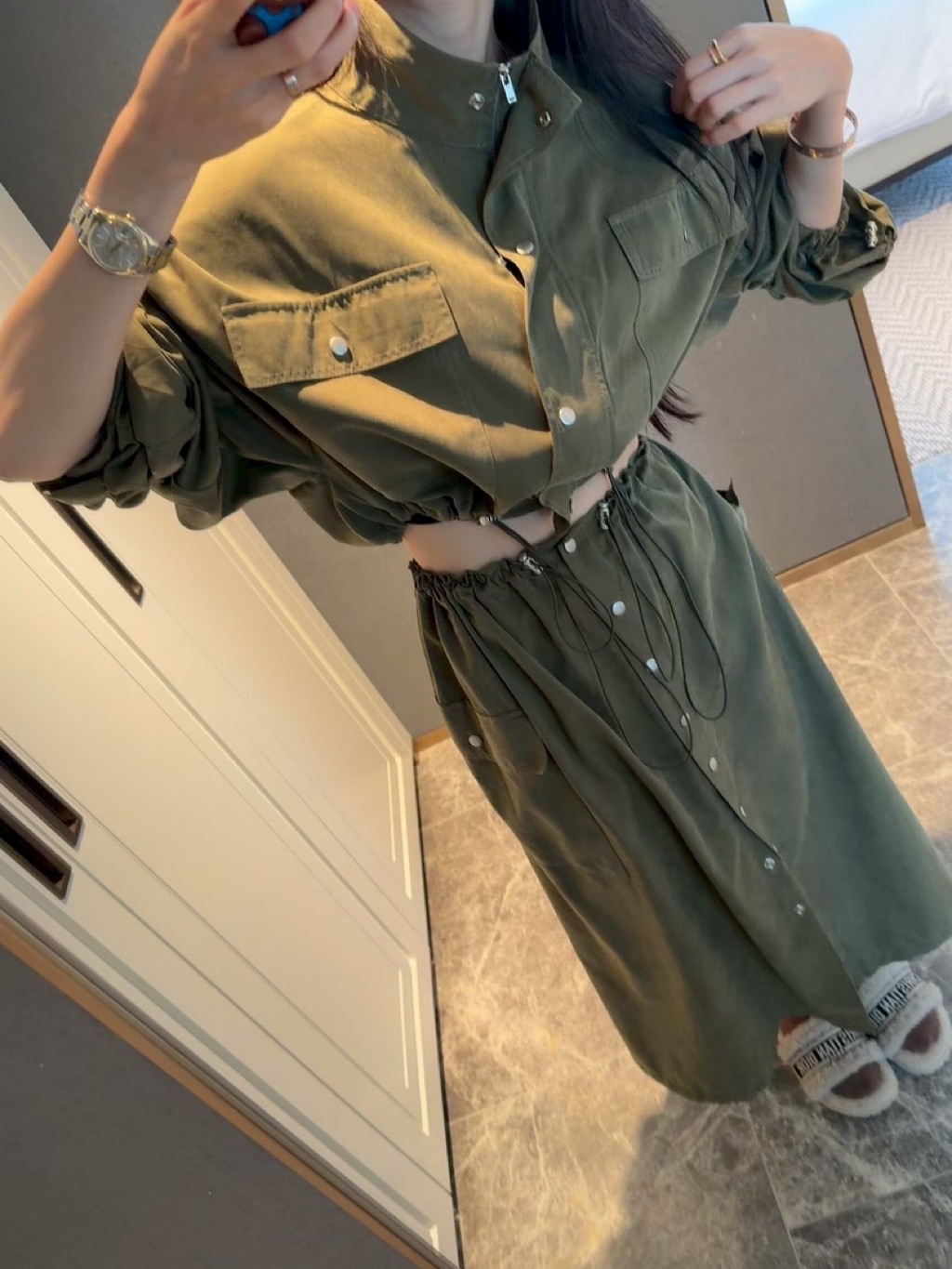 [ 7loong ] 正韓預購 太妍家 25FW秋冬 抓摺手袖短版軍裝風外套+腰束繩側大口袋前開釦長裙(共2色) 總分: 0 - 0 評價