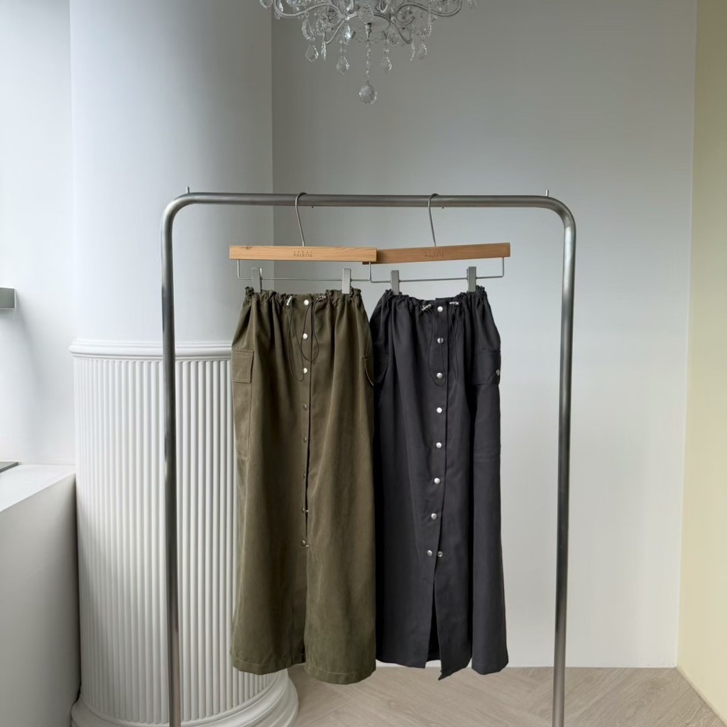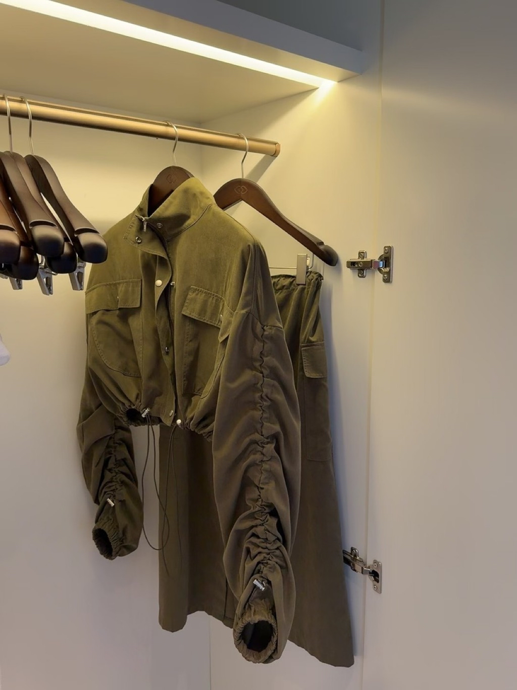 [ 7loong ] 正韓預購 太妍家 25FW秋冬 抓摺手袖短版軍裝風外套+腰束繩側大口袋前開釦長裙(共2色)