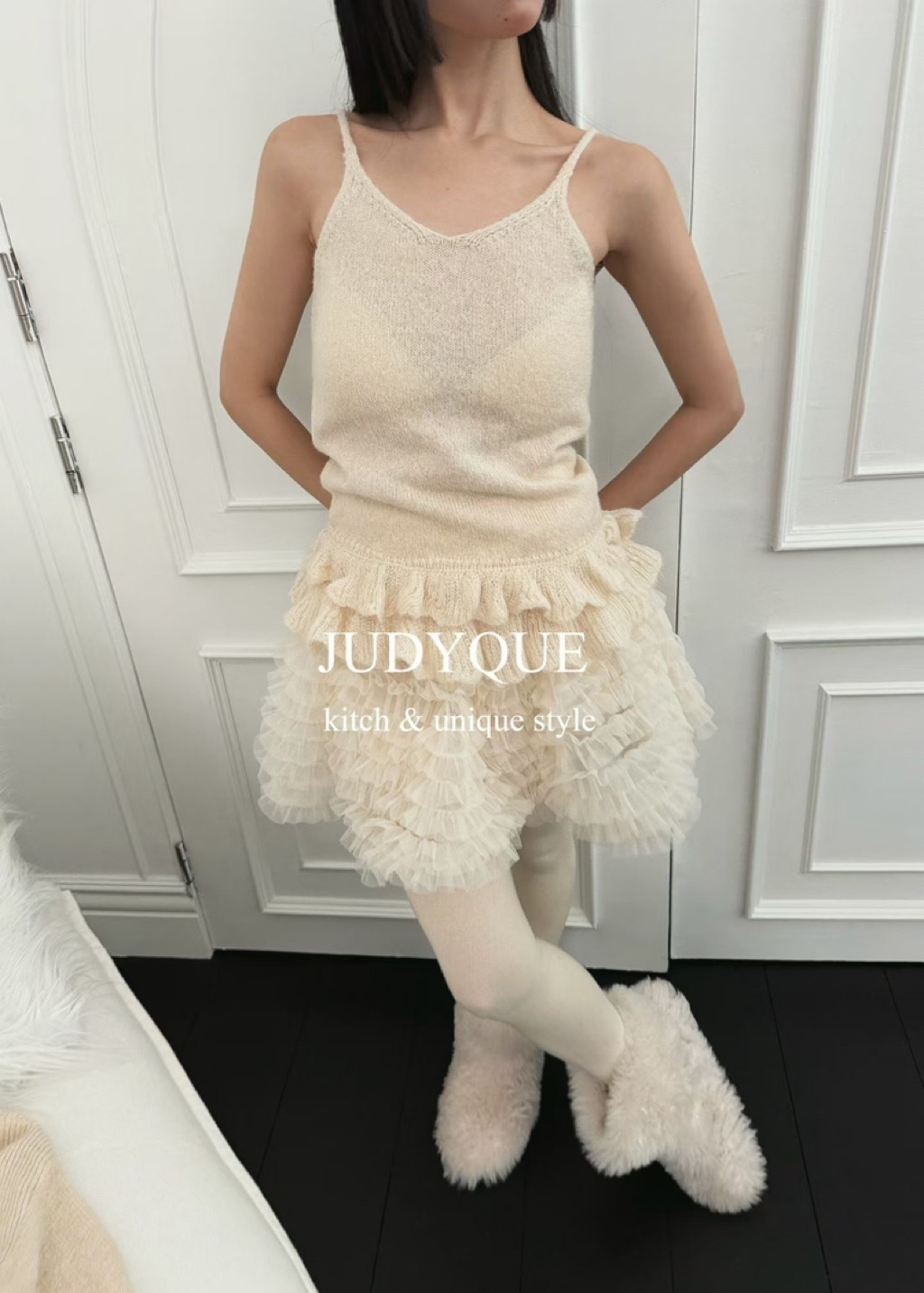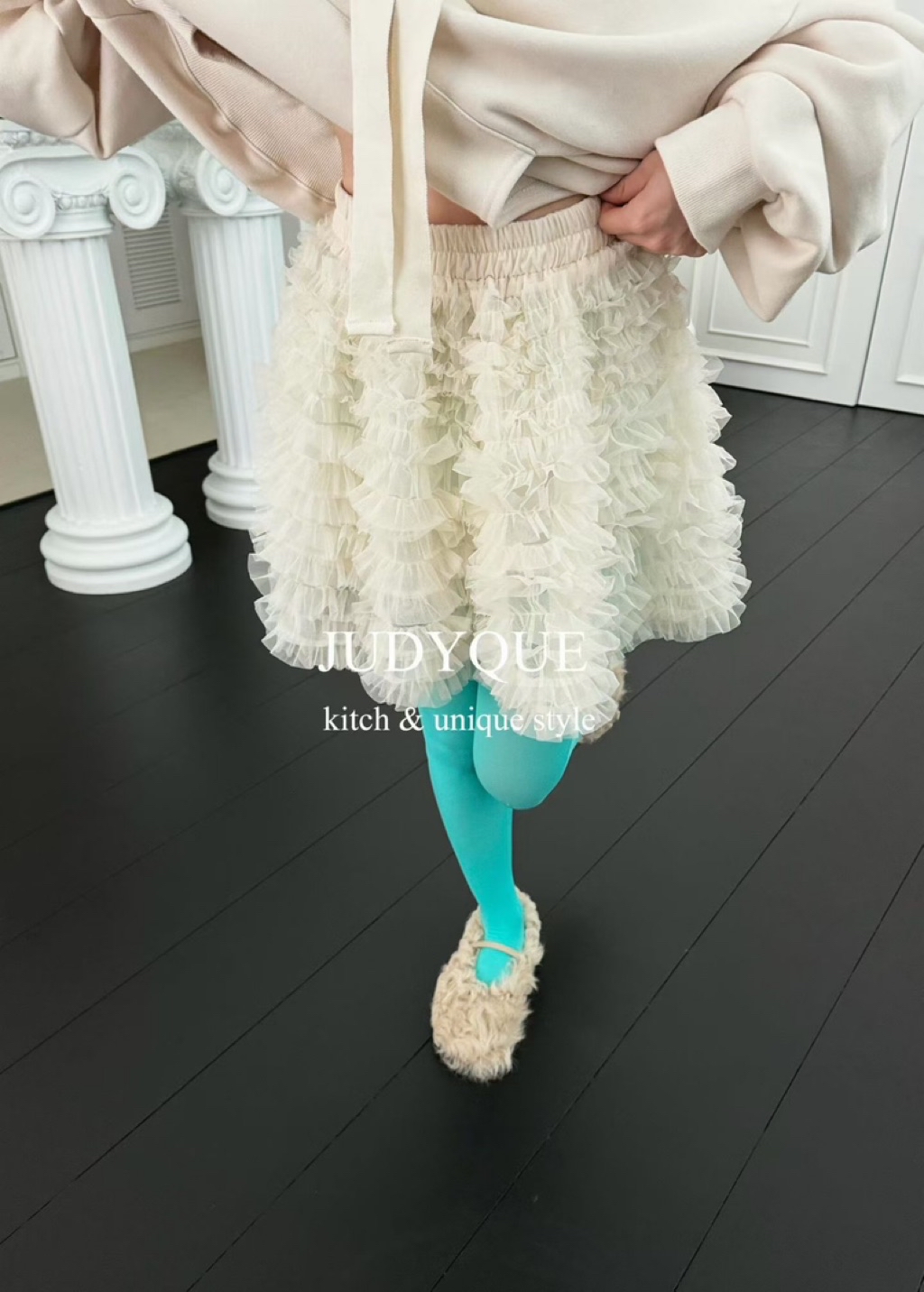 [ 7loong ] 正韓預購 Judyque 26SS早春 澎澎荷葉蛋糕紗褲裙(共2色)