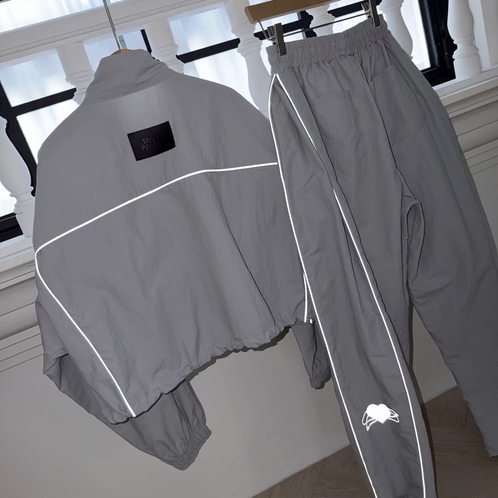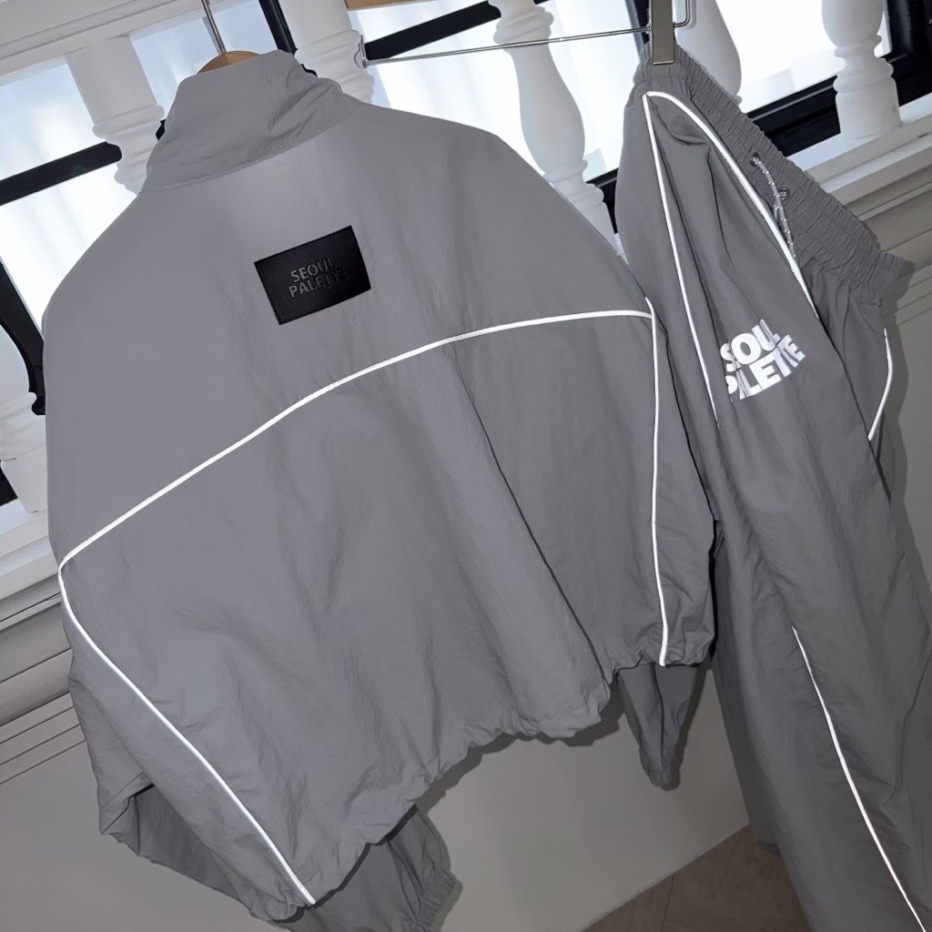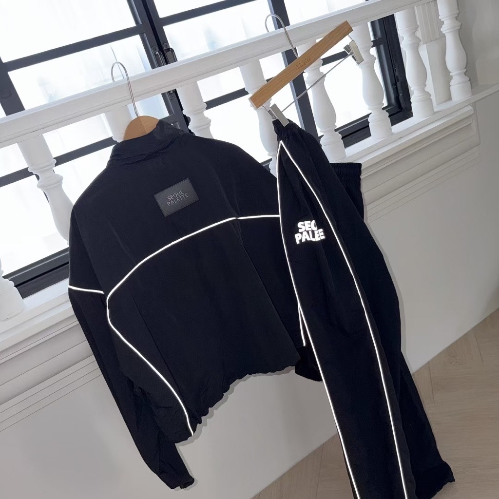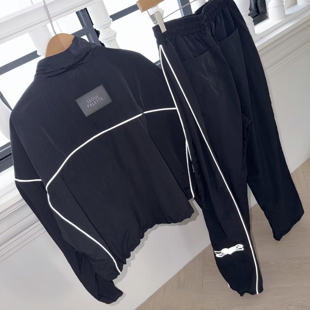 [ 7loong ] 正韓預購 太妍家 25FW秋冬 滾反光條短版風衣外套+反光品牌英文字愛心長褲(共2色)