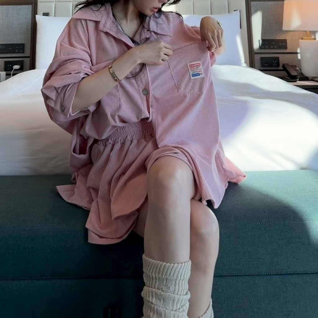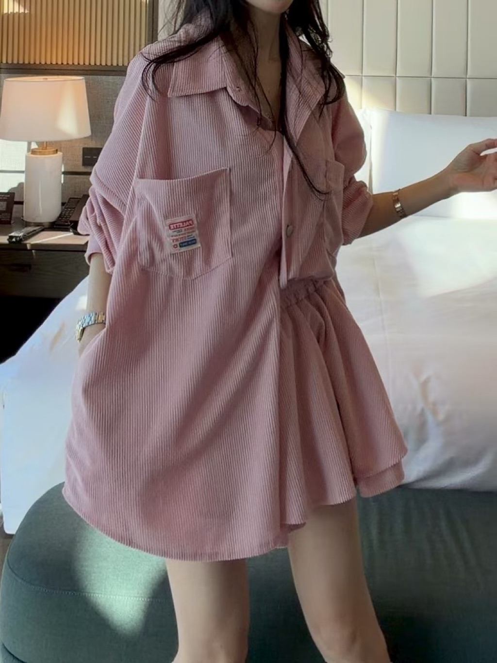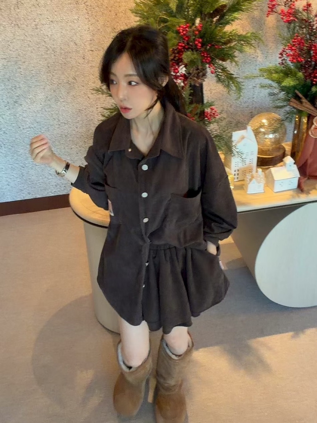 [ 7loong ] 正韓預購 太妍家 25FW秋冬 燈芯絨布標襯衫+短褲裙(共2色)