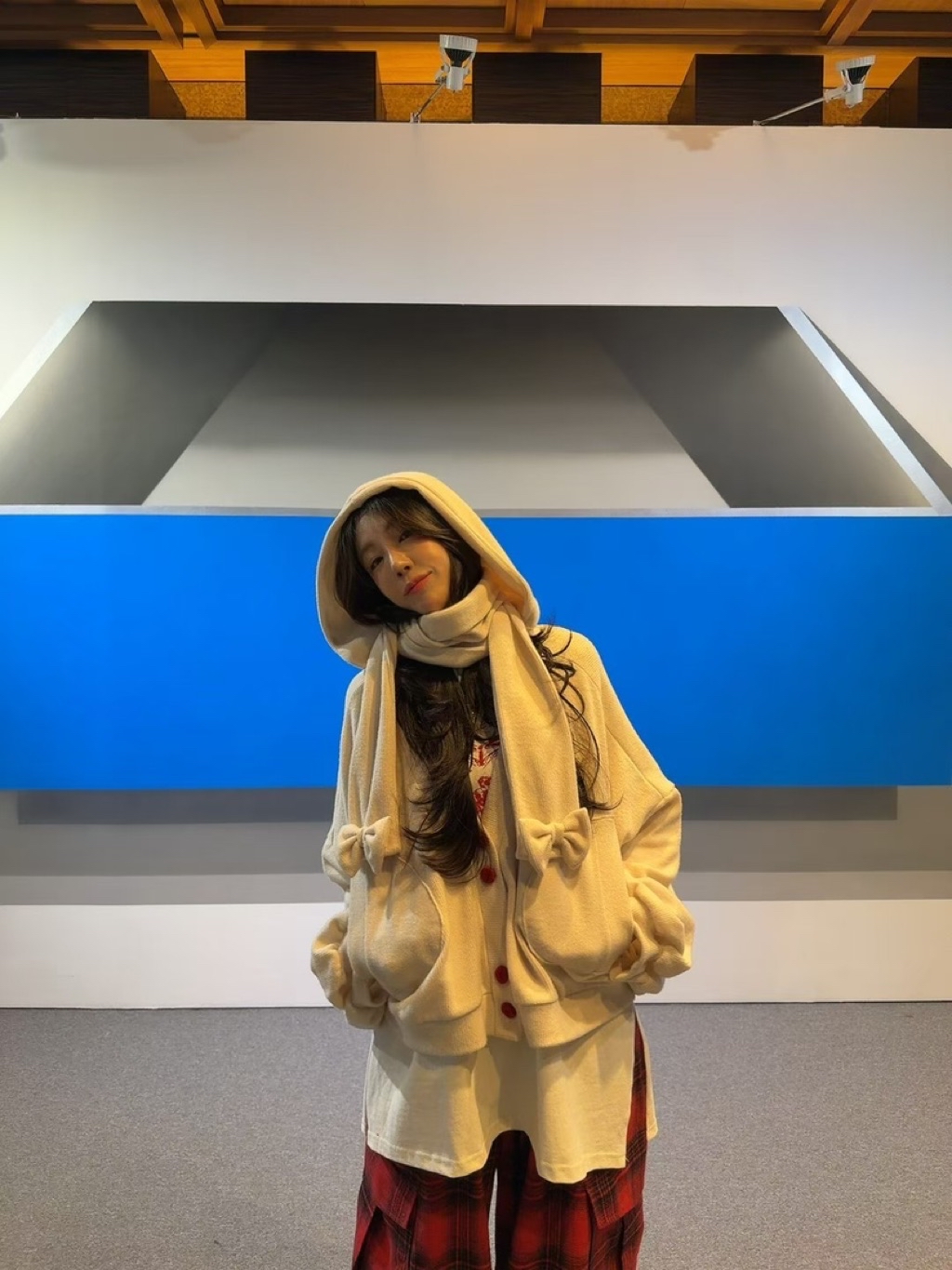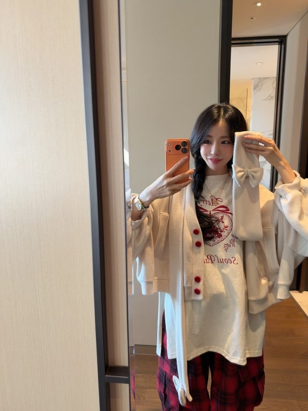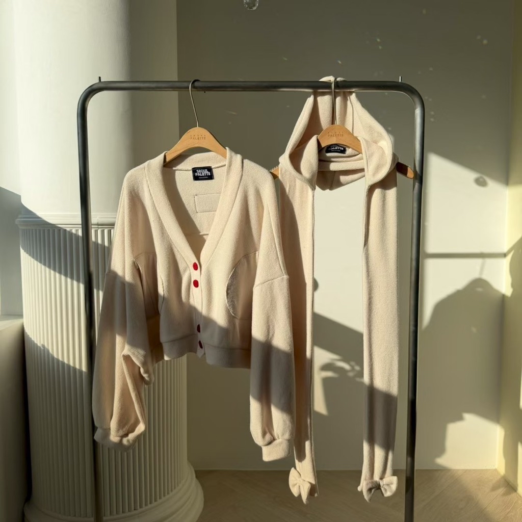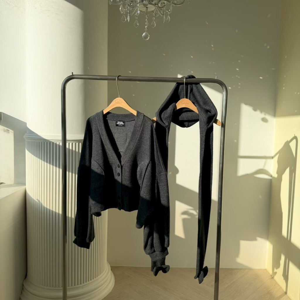 [ 7loong ] 正韓預購 太妍家 25FW秋冬 連帽蝴蝶結圍巾脖圍+寬鬆開釦外套(共2色)