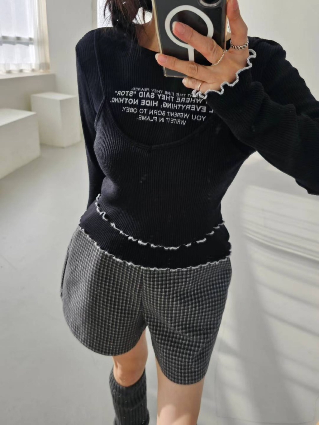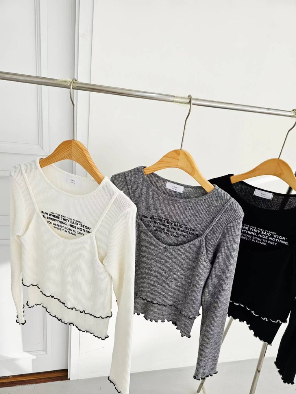 [ 7loong ] 正韓預購 時尚歐膩 25FW秋冬 木耳邊假兩件上衣(共3色)