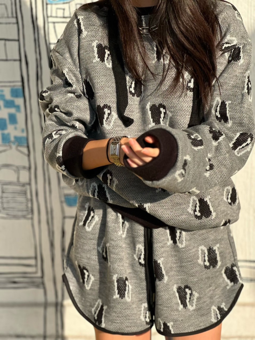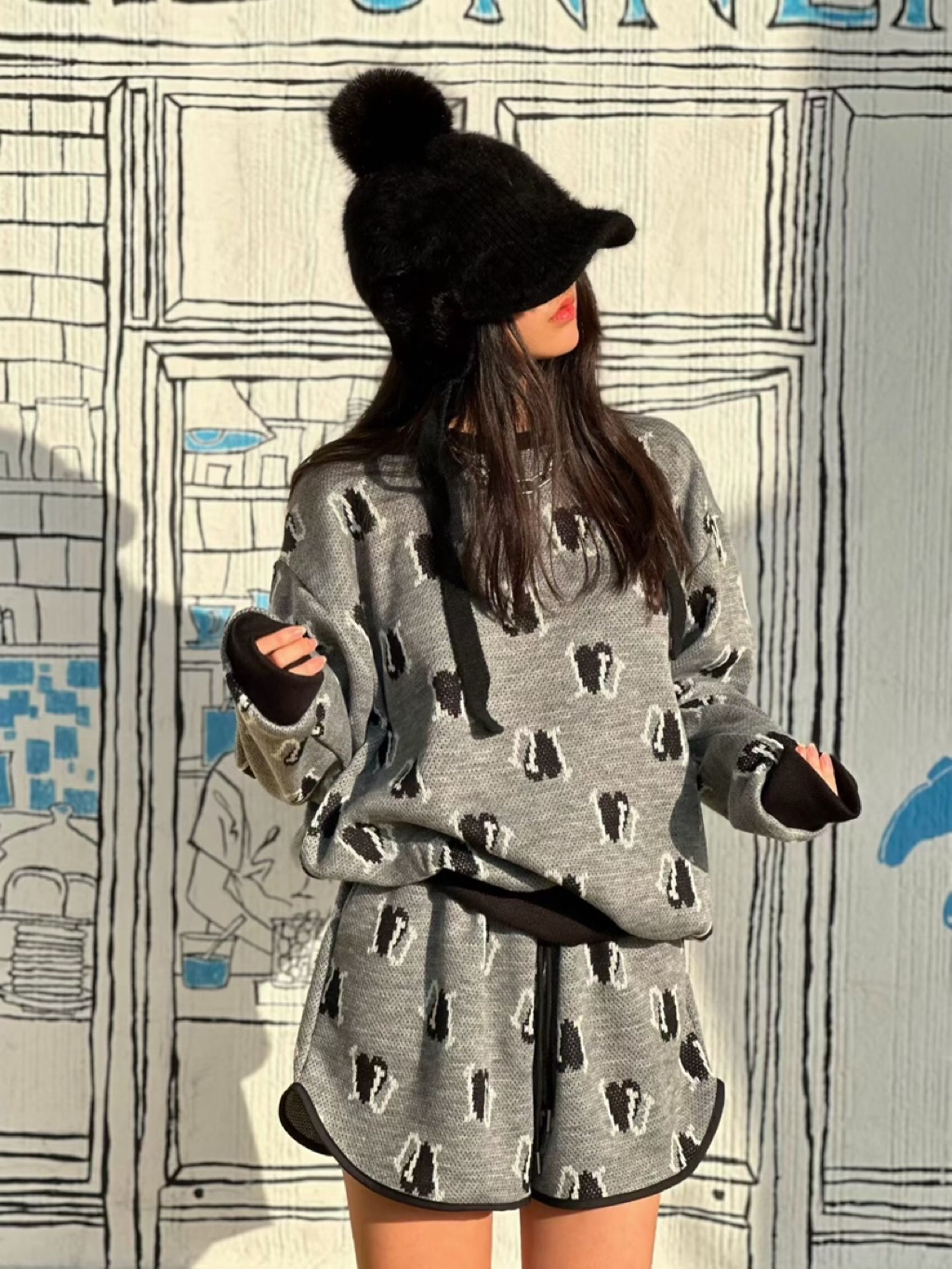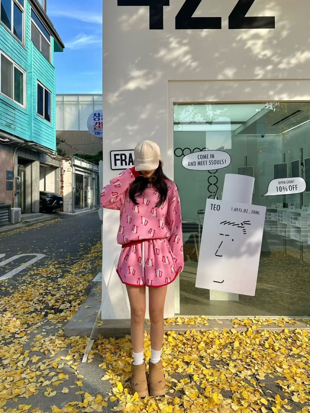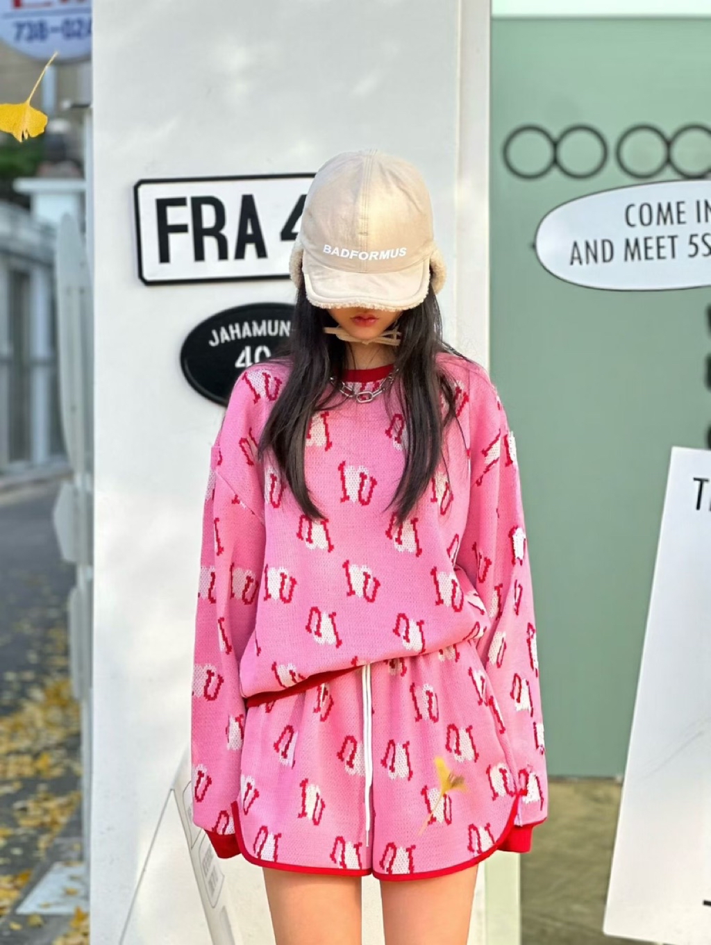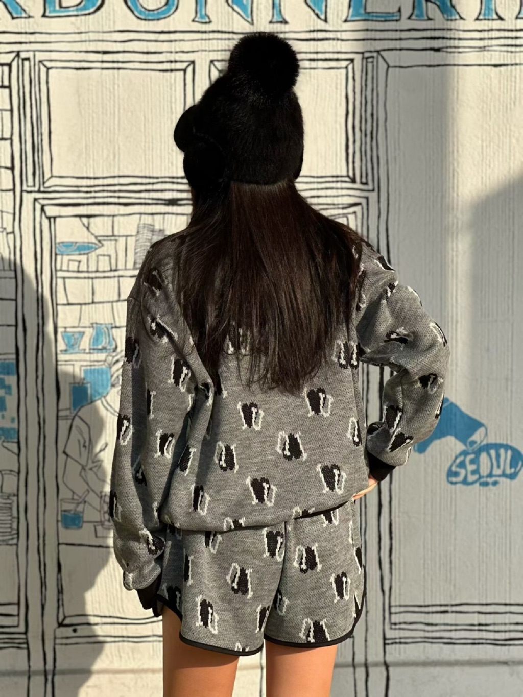 [ 7loong ] 正韓預購 東大門選品 25FW秋冬 I 愛心u圖騰上衣+圖騰短褲(共2色)