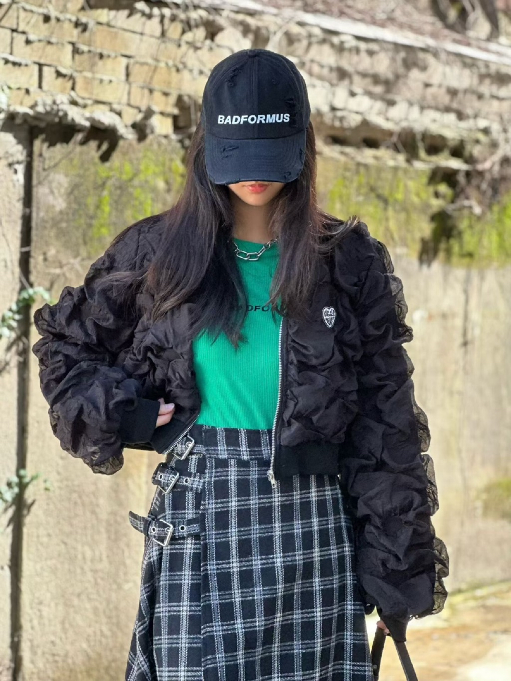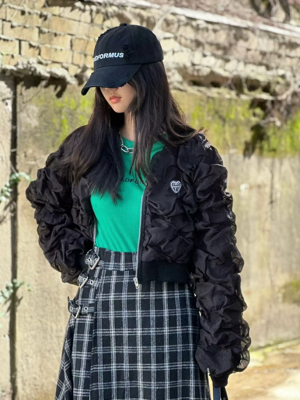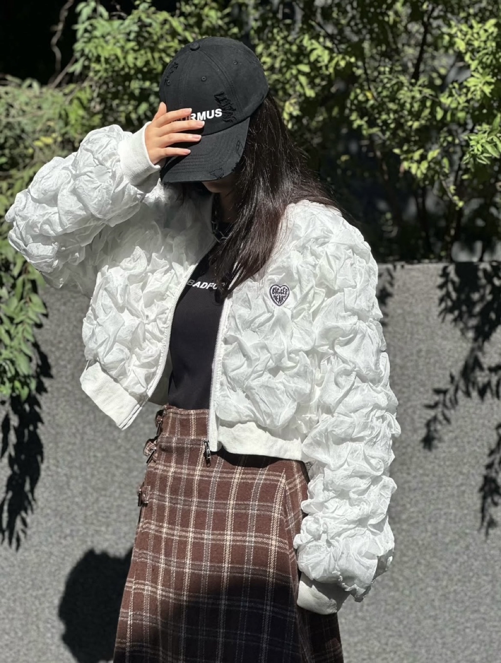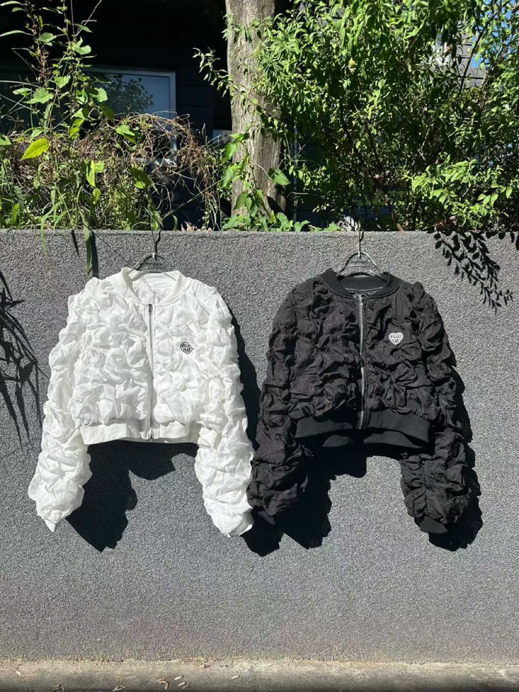 [ 7loong ] 正韓預購 東大門選品 25FW秋冬 泡泡抓皺愛心刺繡標誌外套(共2色)