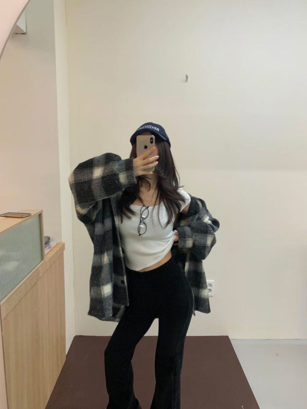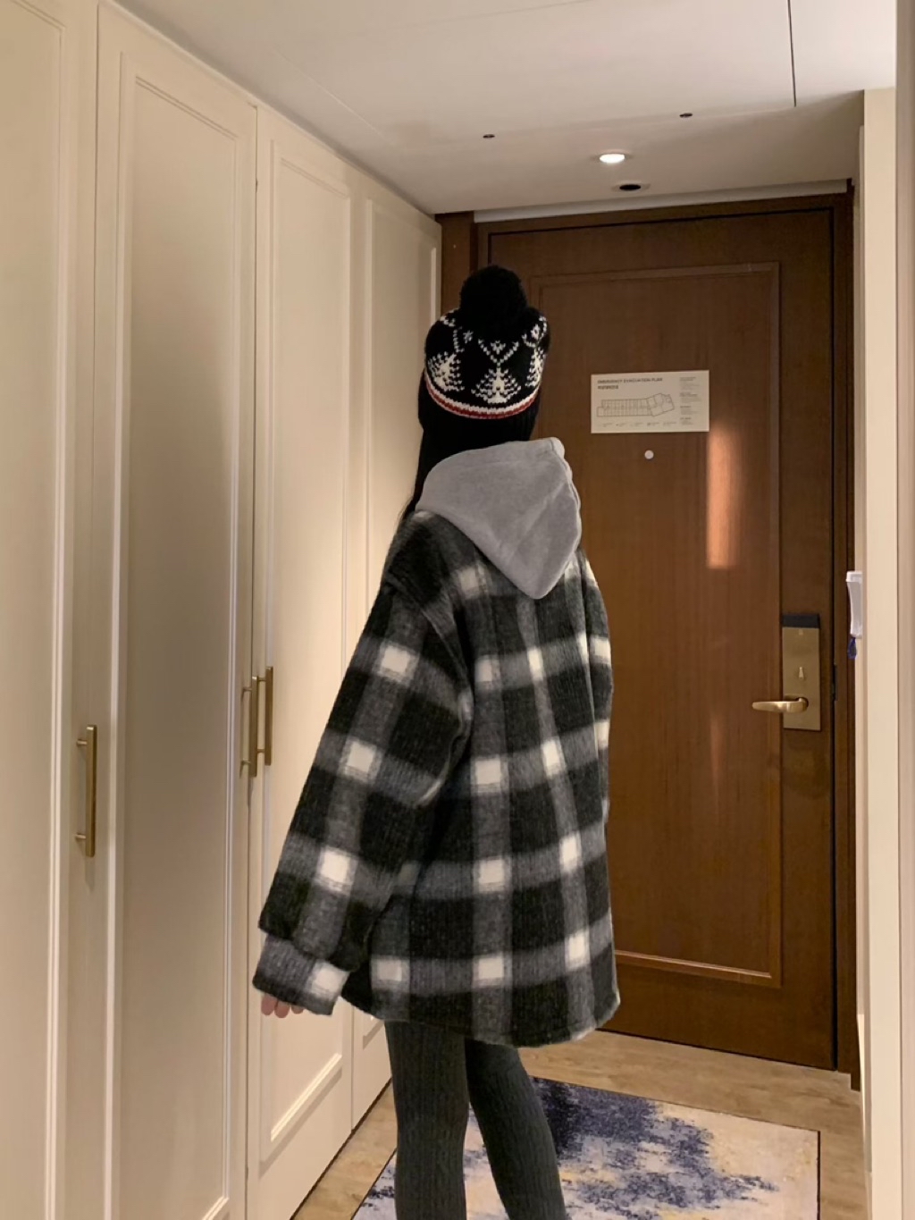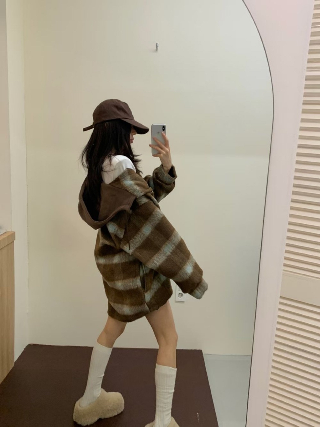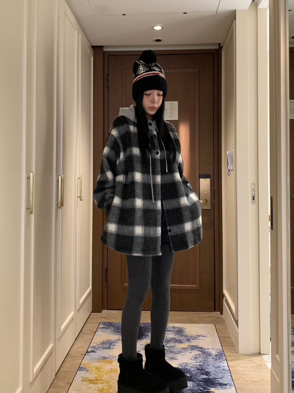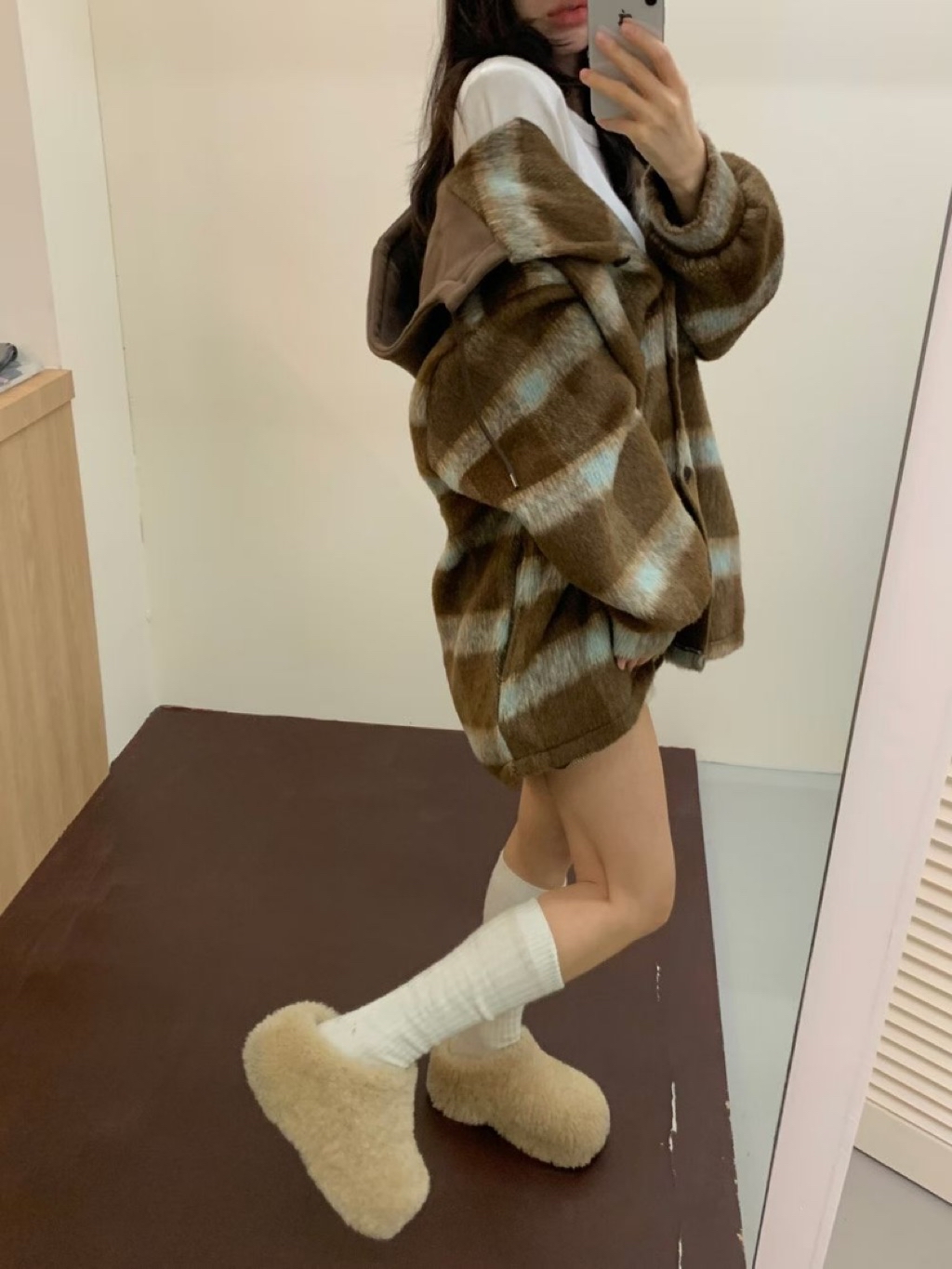 [ 7loong ] 正韓預購 東大門選品 25FW秋冬 混羊毛格紋寬鬆開釦連帽襯衫外套(共2色)