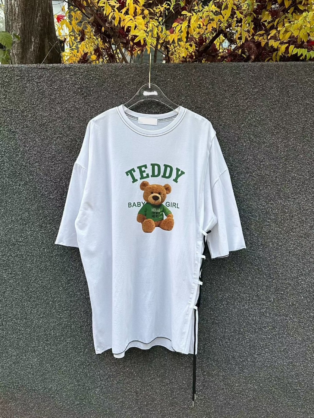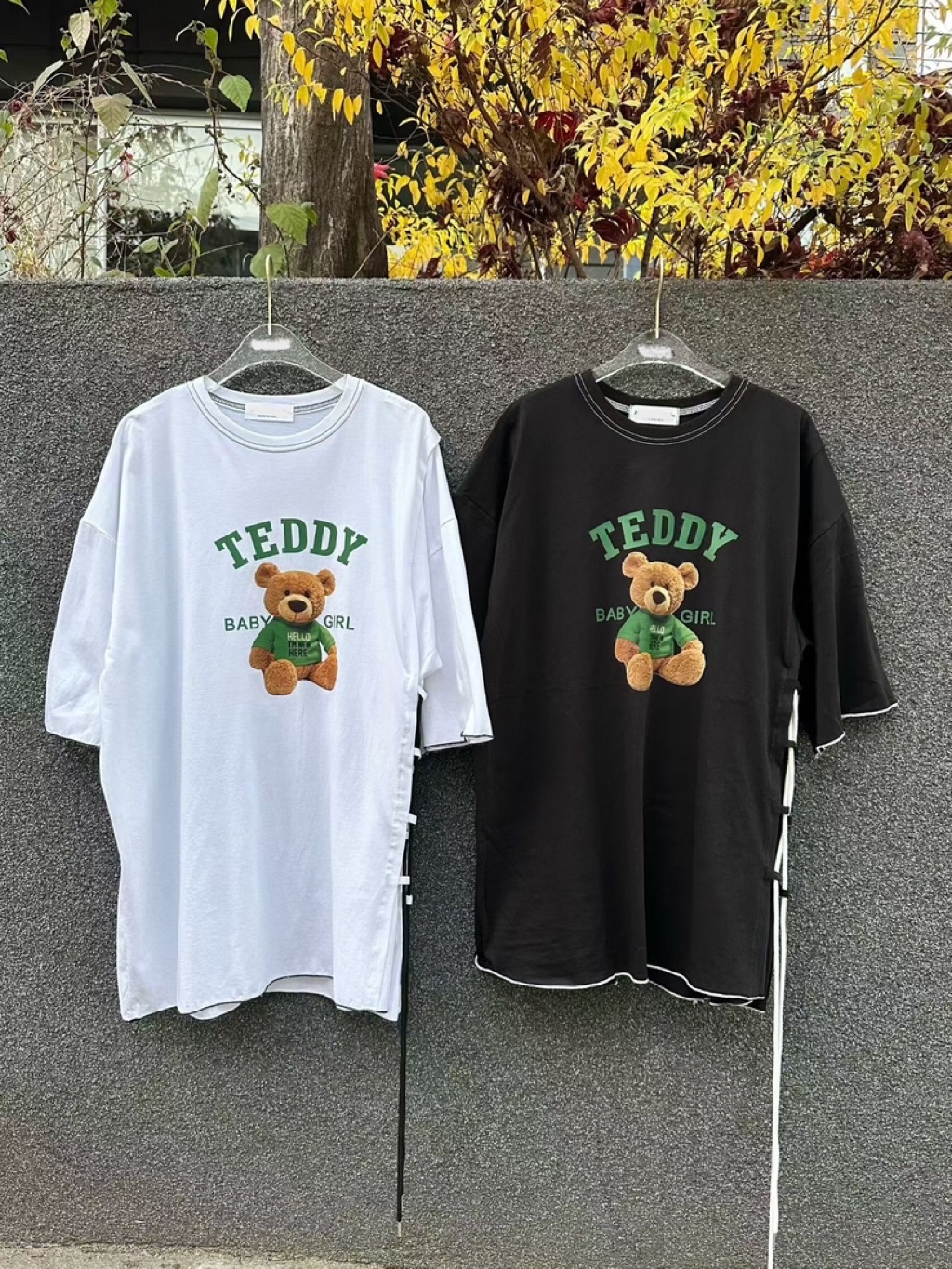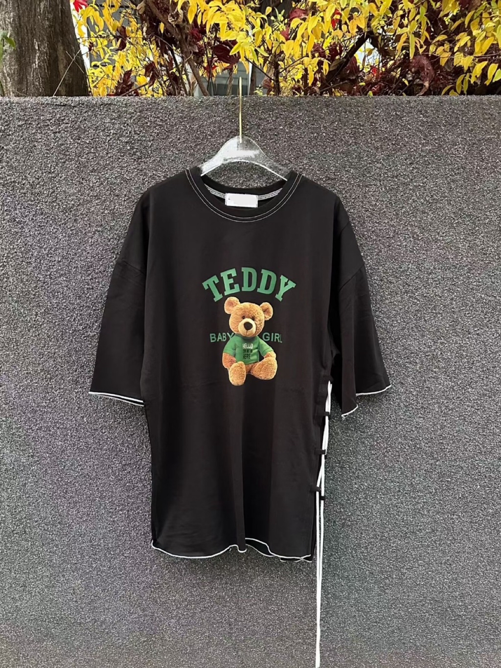 [ 7loong ] 正韓預購 東大門選品 25FW秋冬 熊熊單側綁繩短袖T恤(共2色)