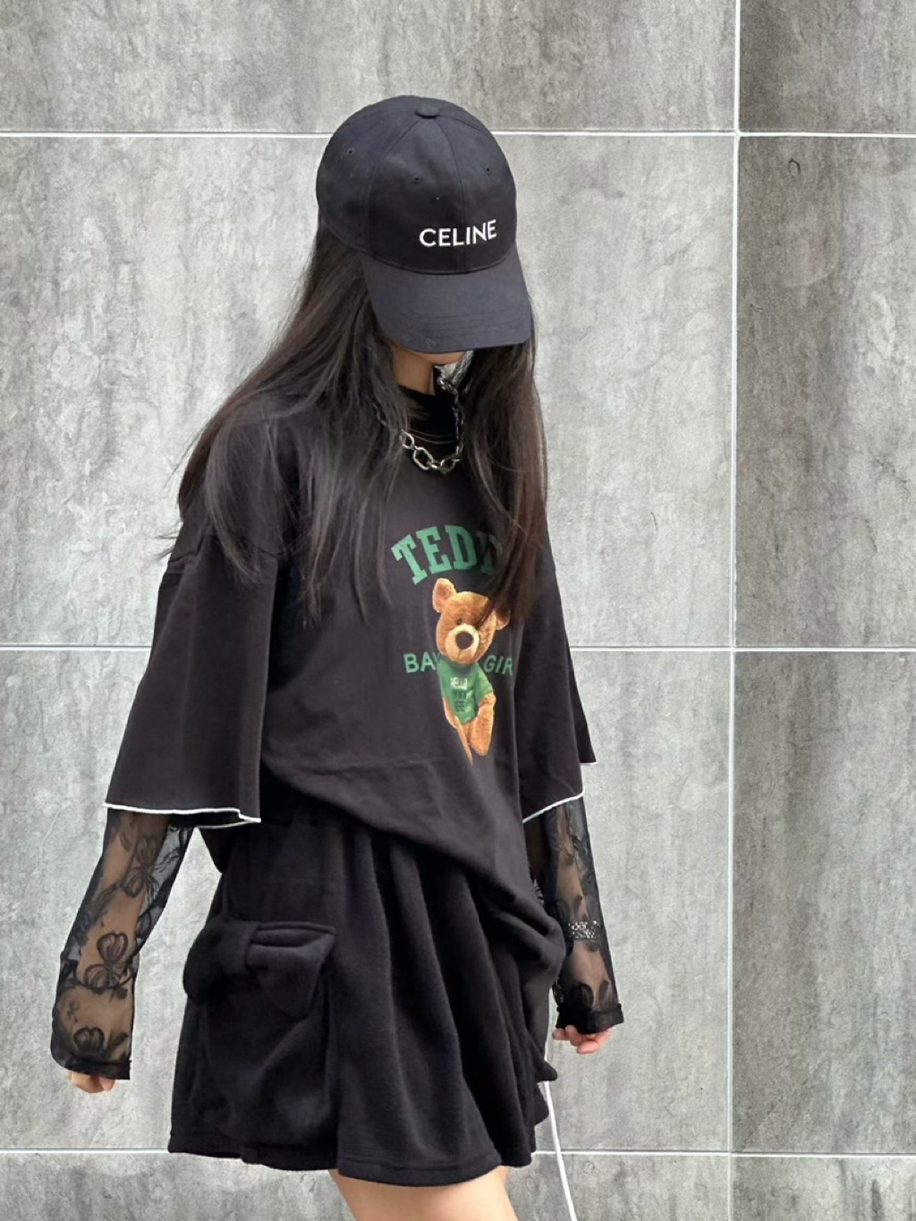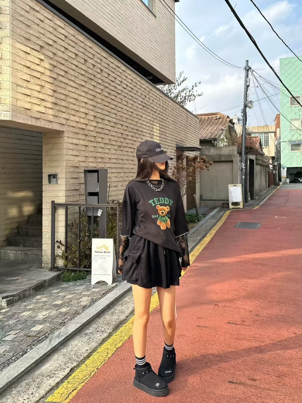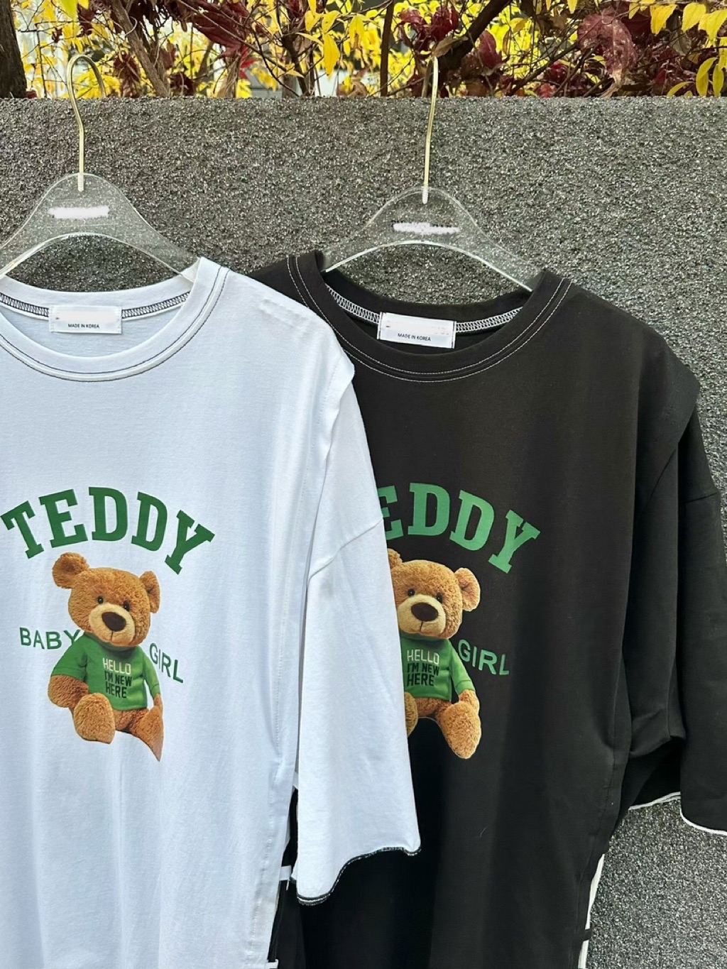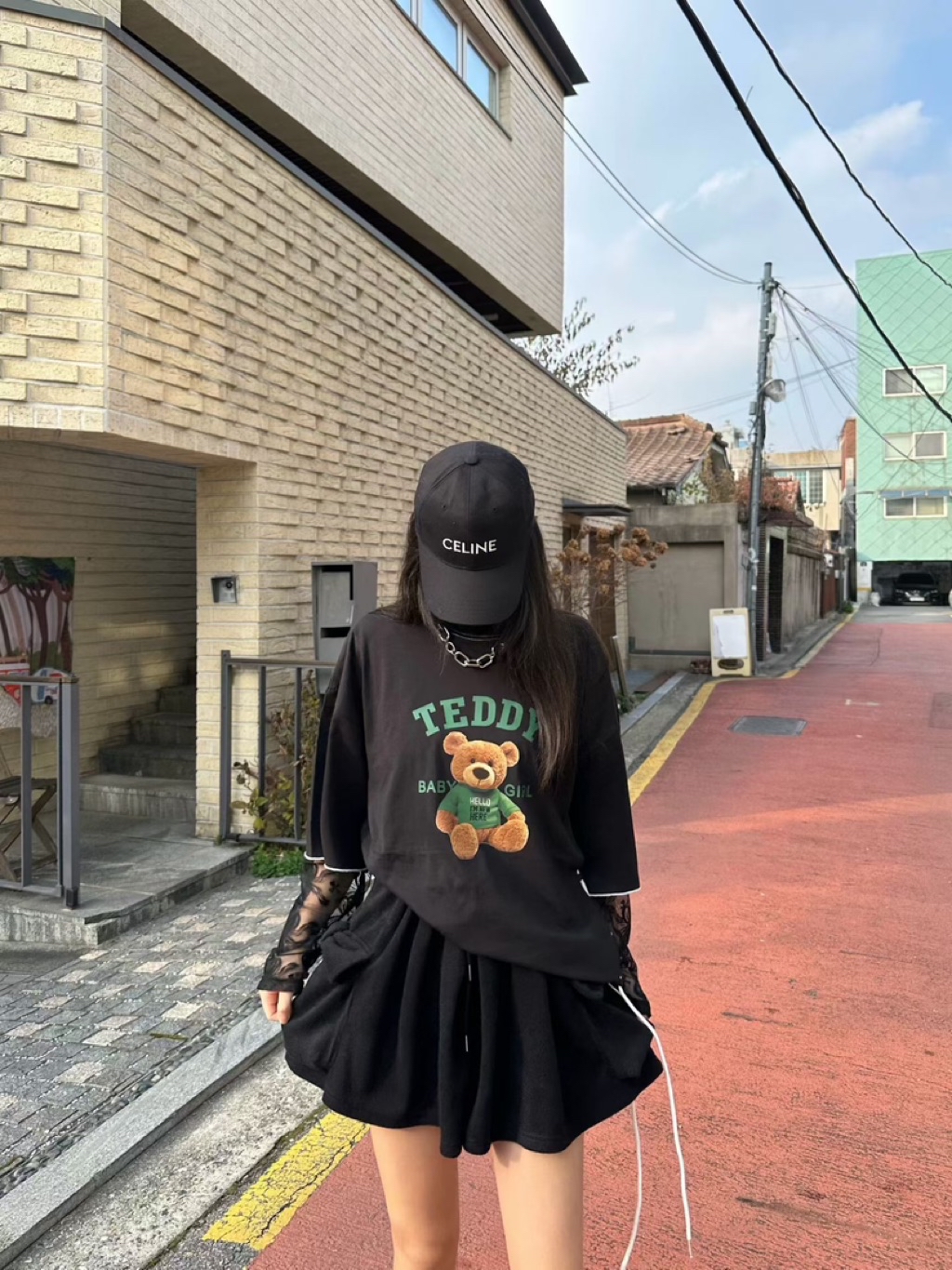 [ 7loong ] 正韓預購 東大門選品 25FW秋冬 熊熊單側綁繩短袖T恤(共2色)